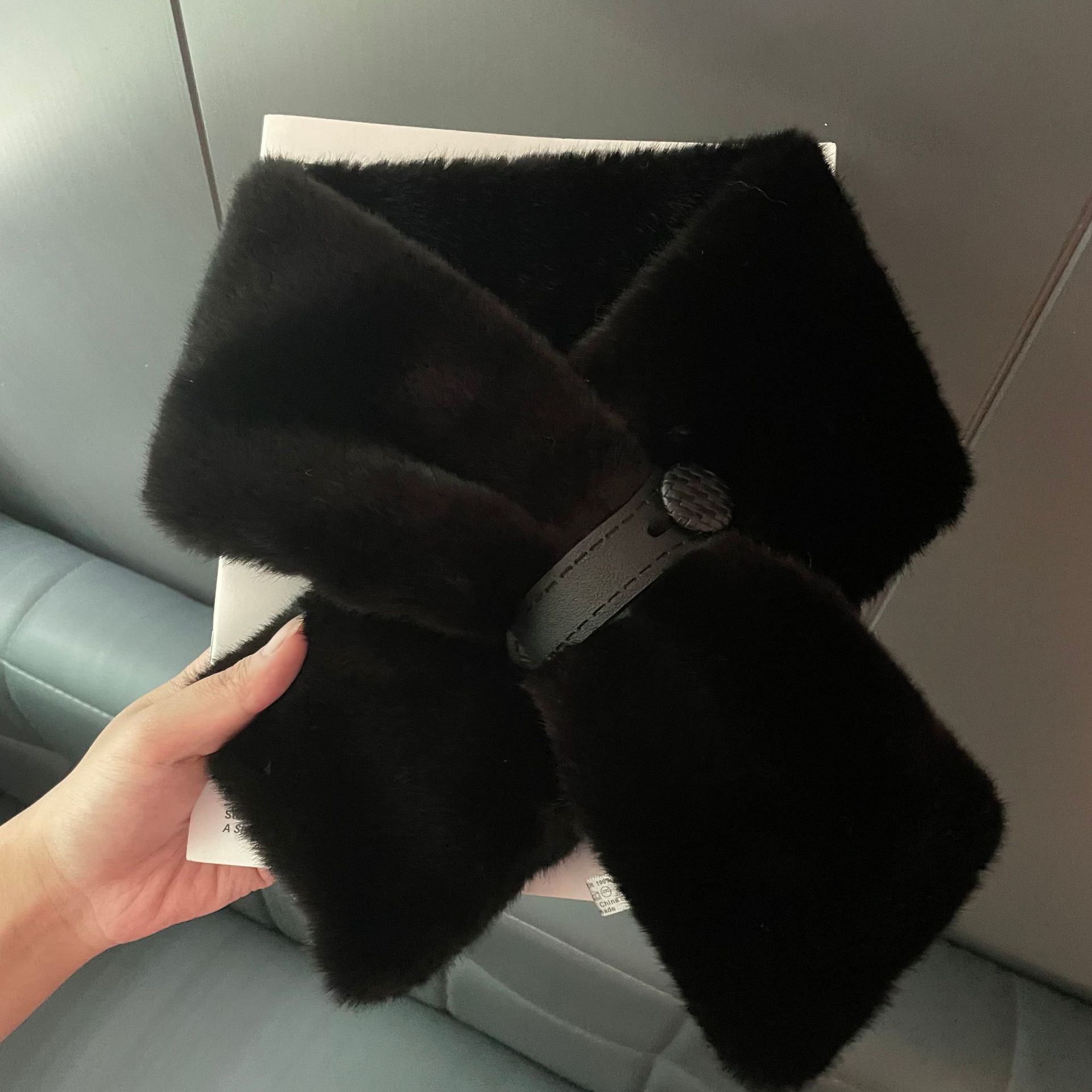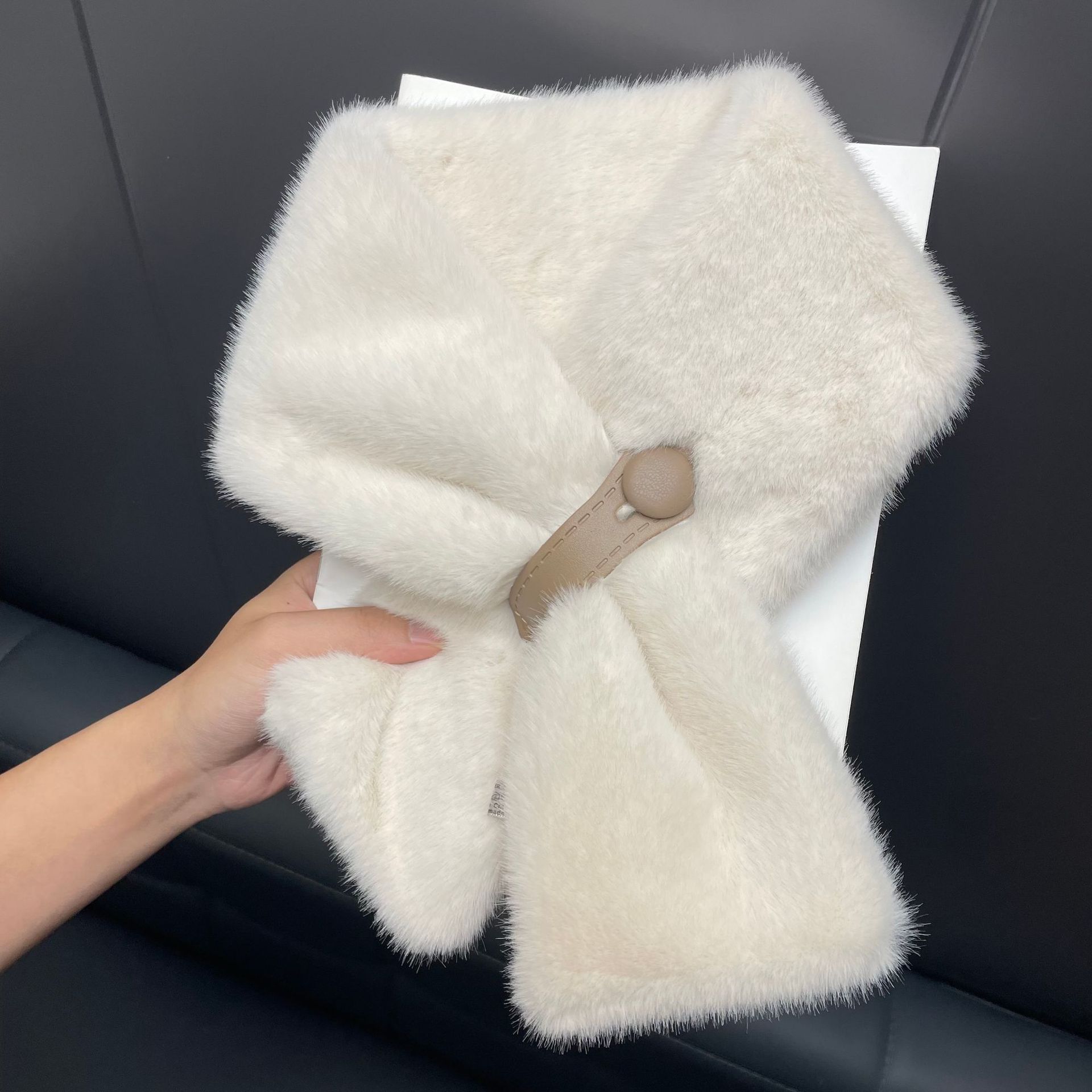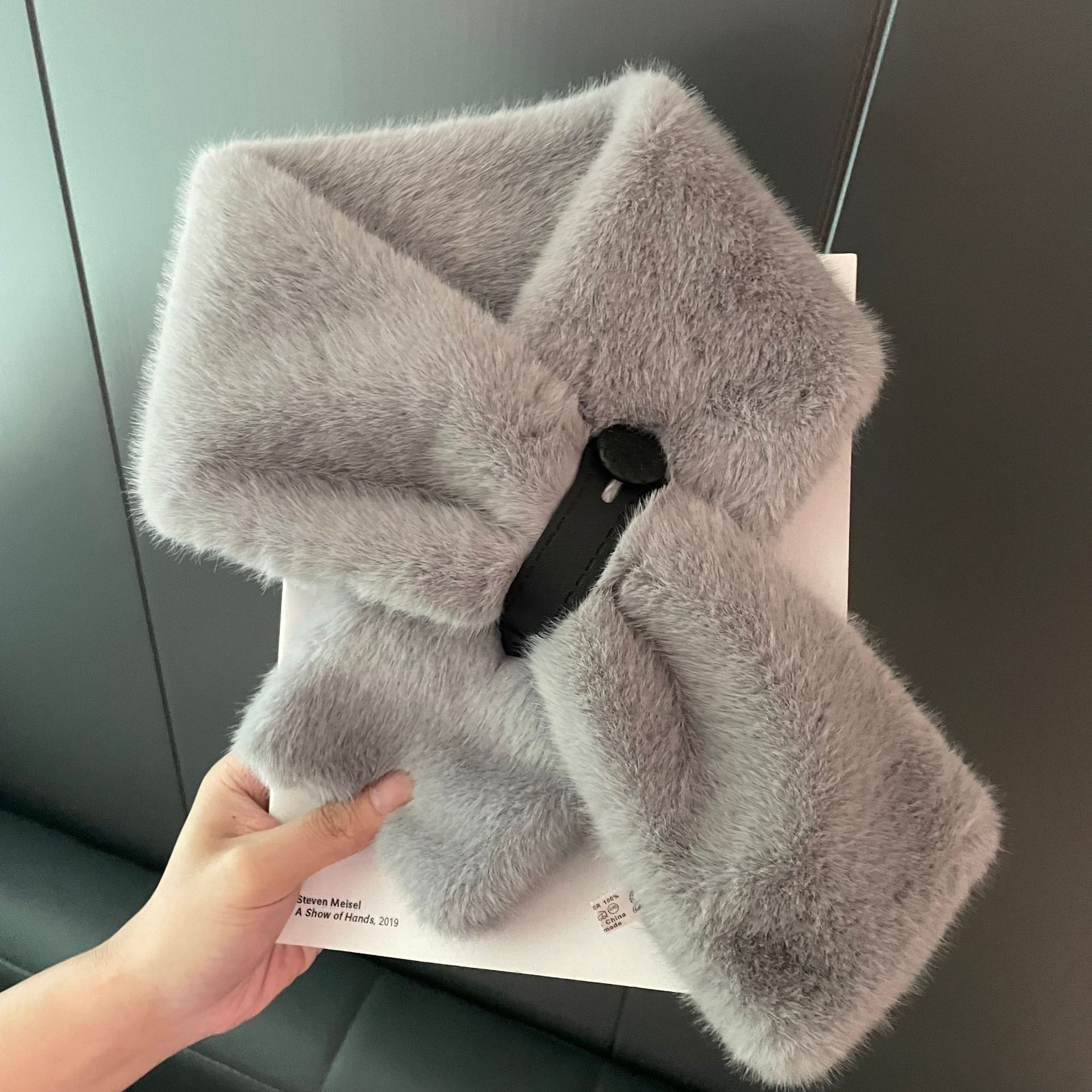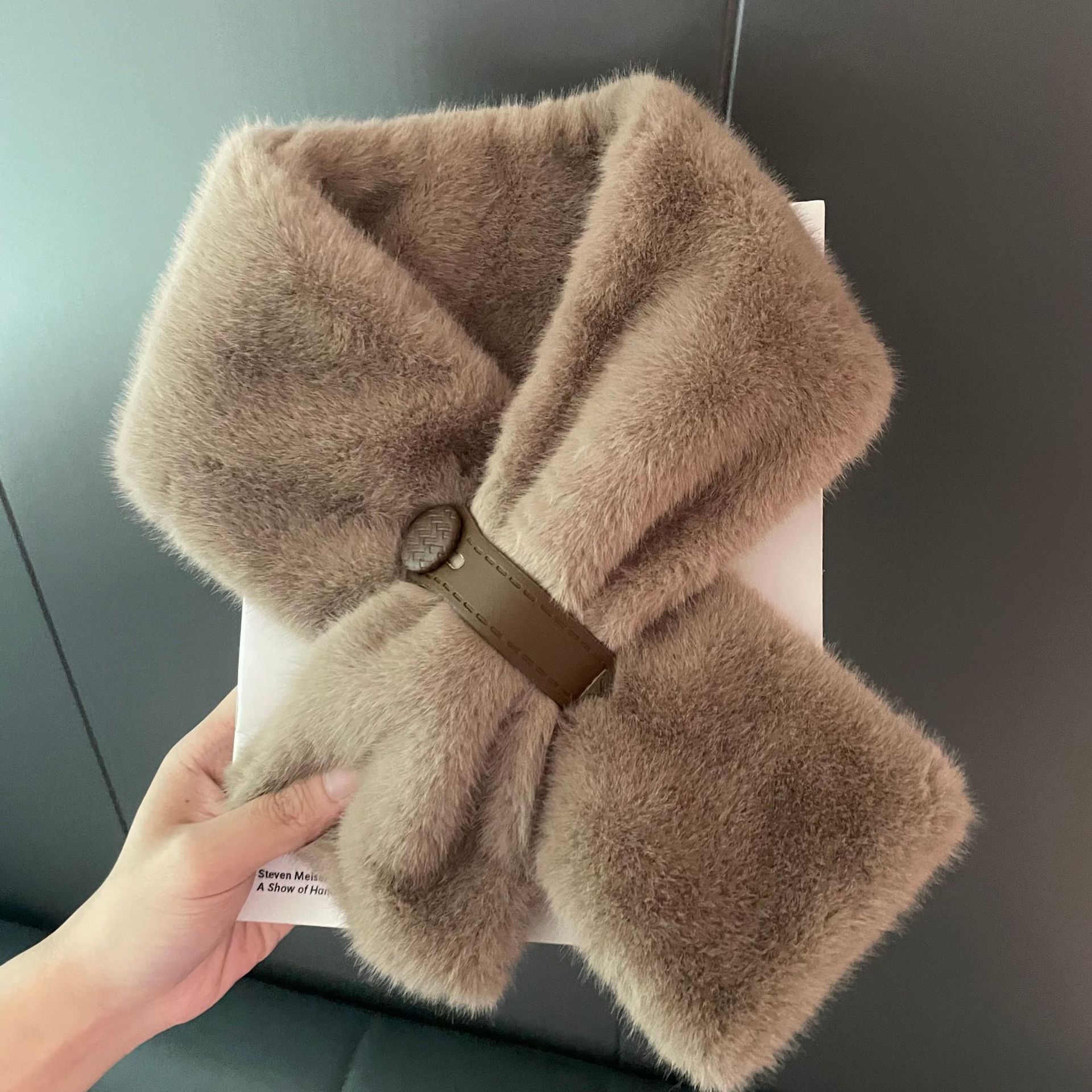 한국 스타일 새 가죽 버클 모피 봉제 칼라 스카프 여성 가을 겨울 따뜻한 패션 가짜 렉스 토끼 모피 올 매치 크로스 스카프스토어 가기