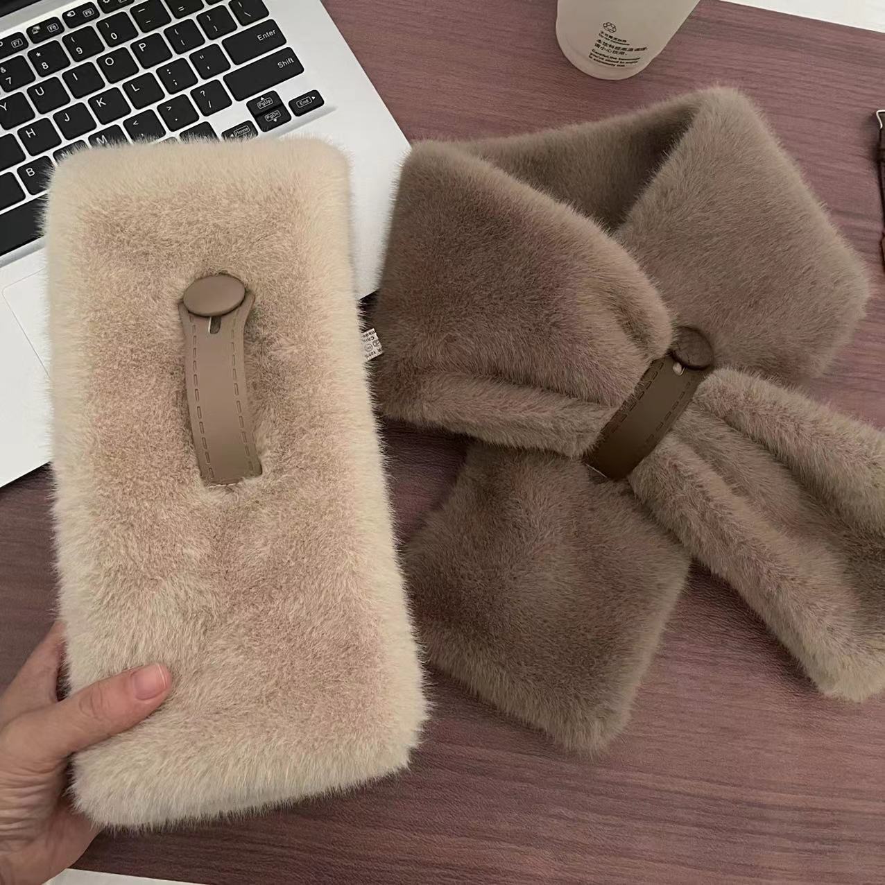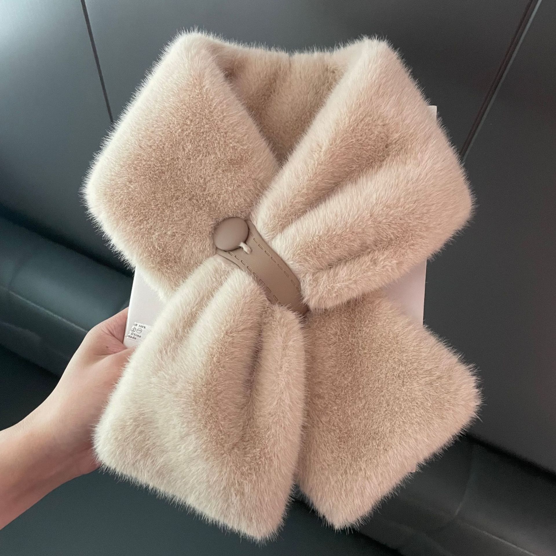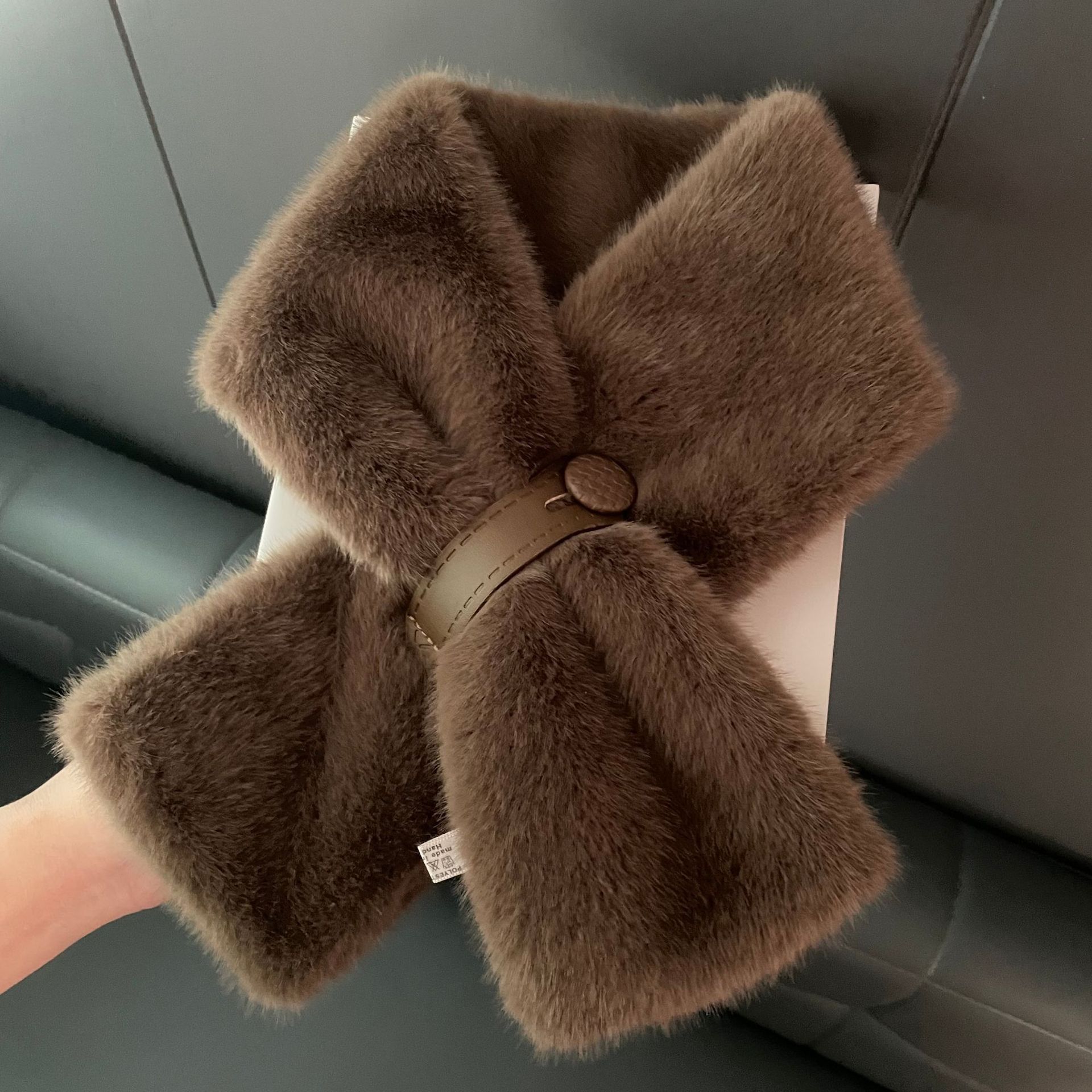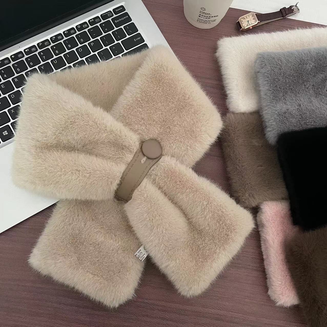 한국 스타일 새 가죽 버클 모피 봉제 칼라 스카프 여성 가을 겨울 따뜻한 패션 가짜 렉스 토끼 모피 올 매치 크로스 스카프스토어 가기