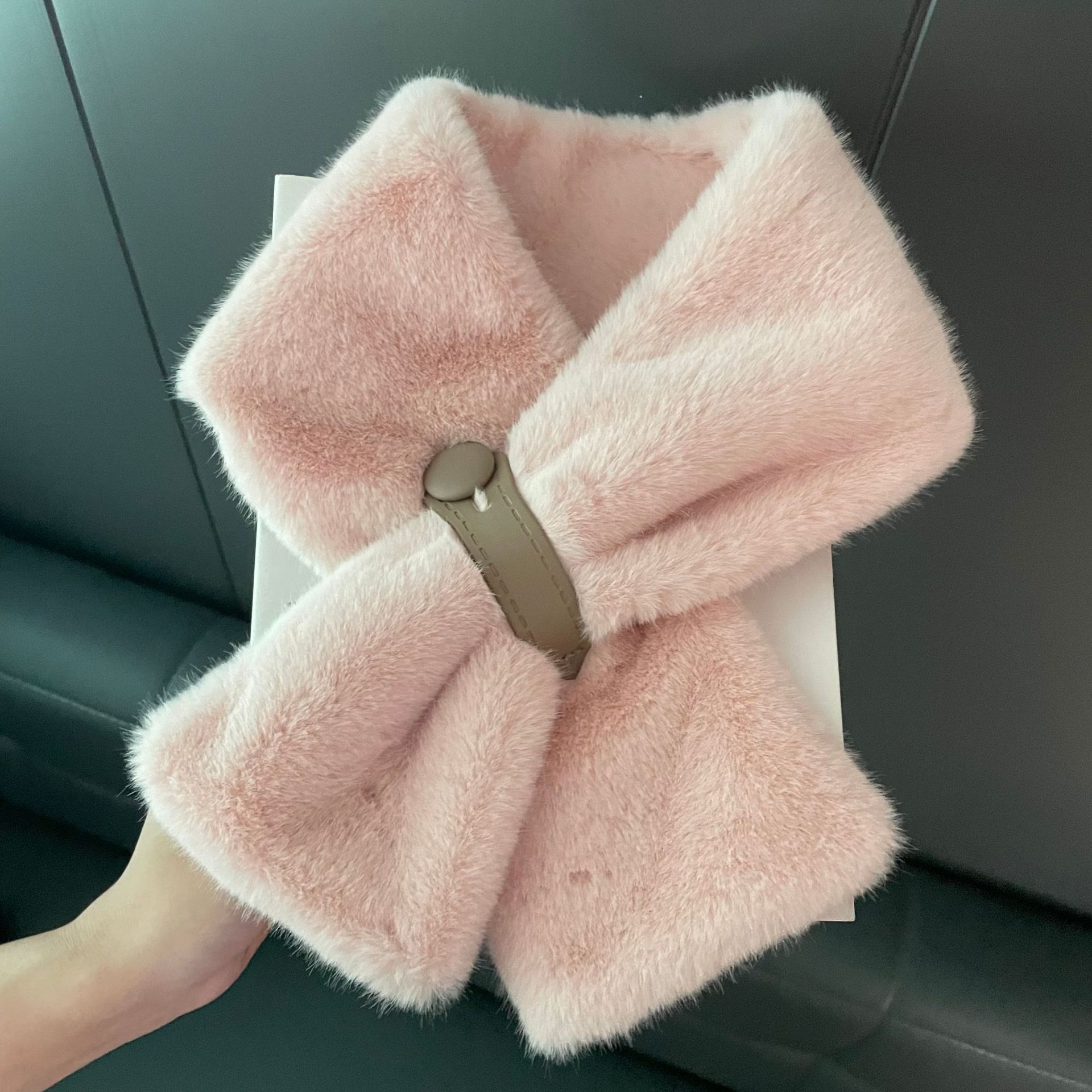 한국 스타일 새 가죽 버클 모피 봉제 칼라 스카프 여성 가을 겨울 따뜻한 패션 가짜 렉스 토끼 모피 올 매치 크로스 스카프