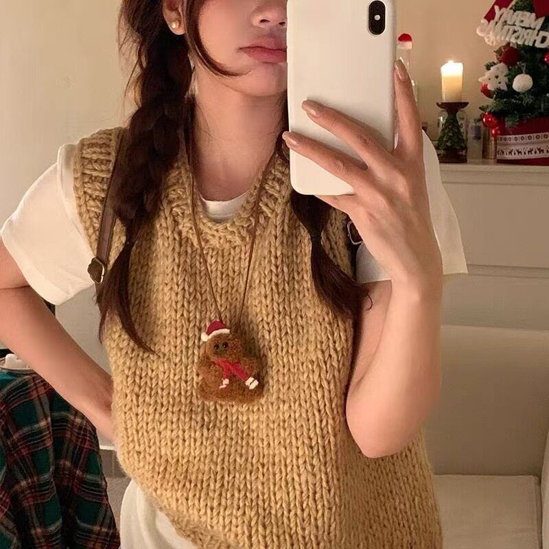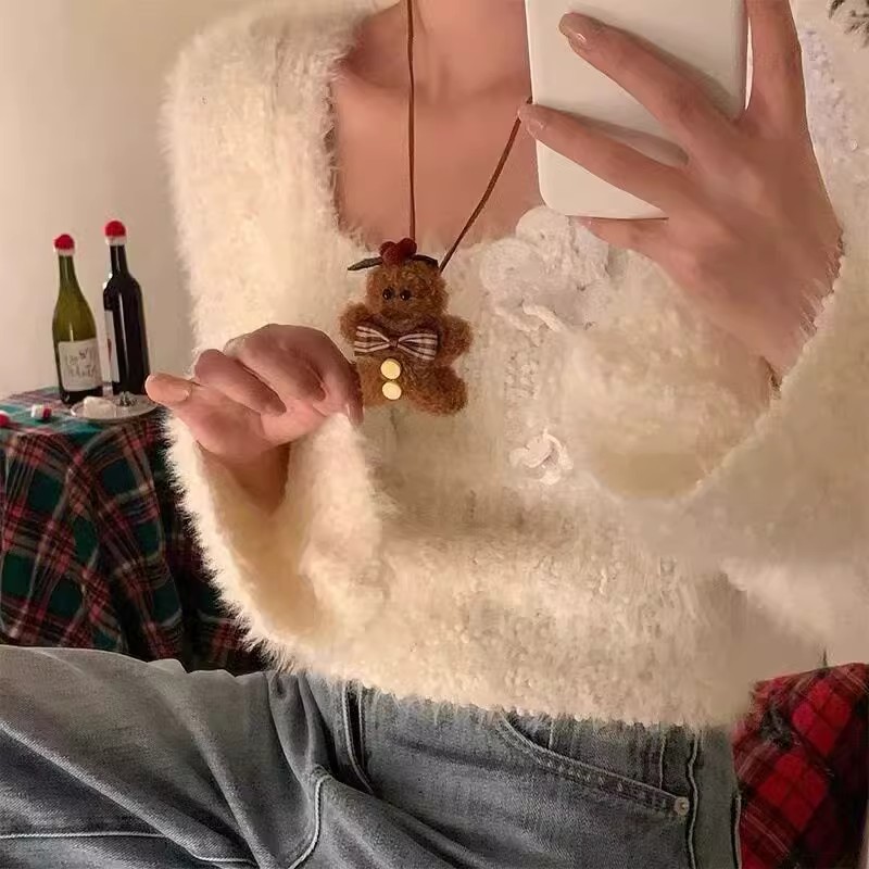 2024 새로운 크리스마스 빨간 모자 귀여운 곰 목걸이 긴 액세서리 휴일 원피스 스웨터 분위기스토어 가기