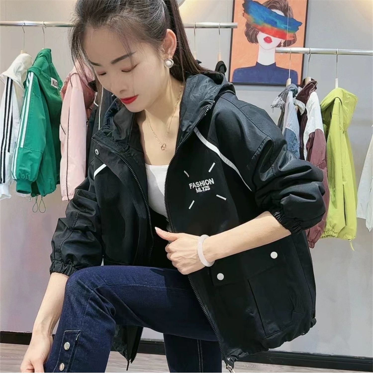 후드 스톰 트루퍼 여성 2025 봄과 가을 새로운 폭발 재킷 탑 서양식 작은 여성 짧은 재킷스토어 가기