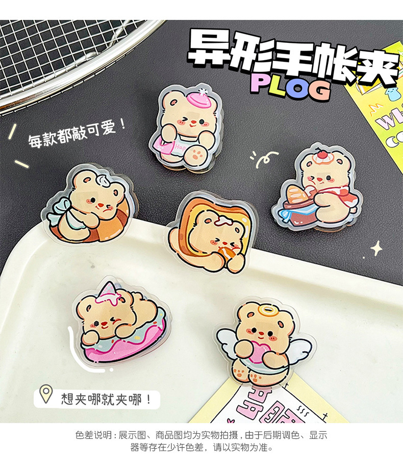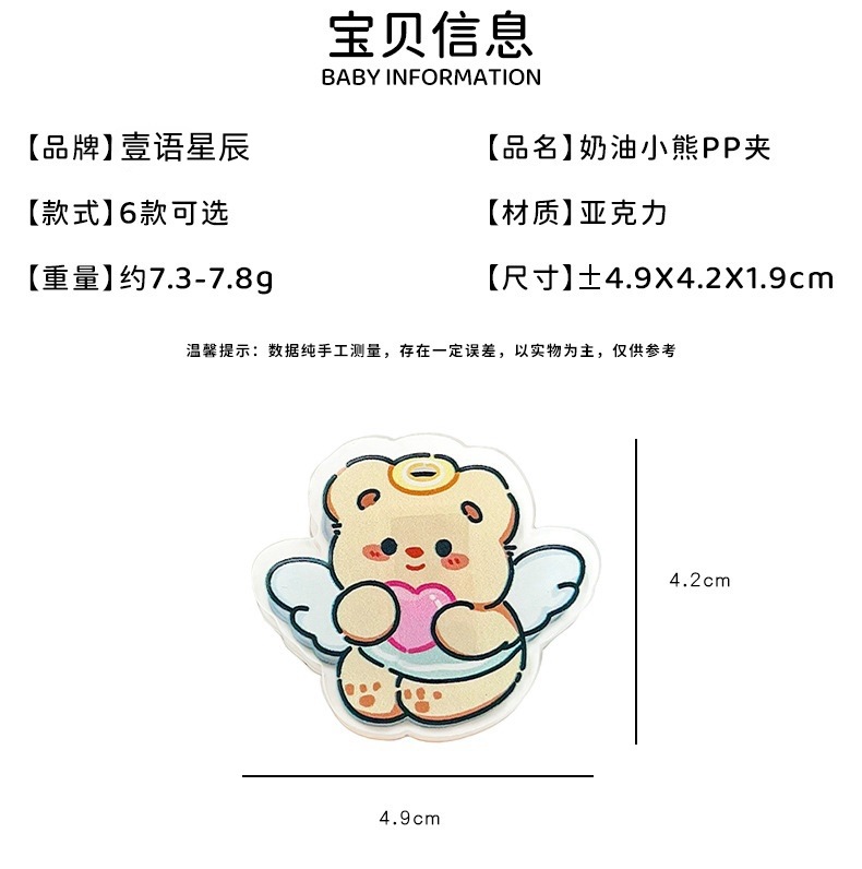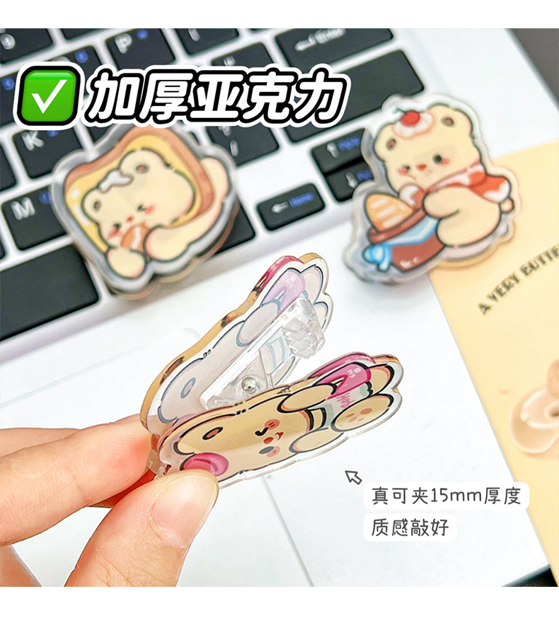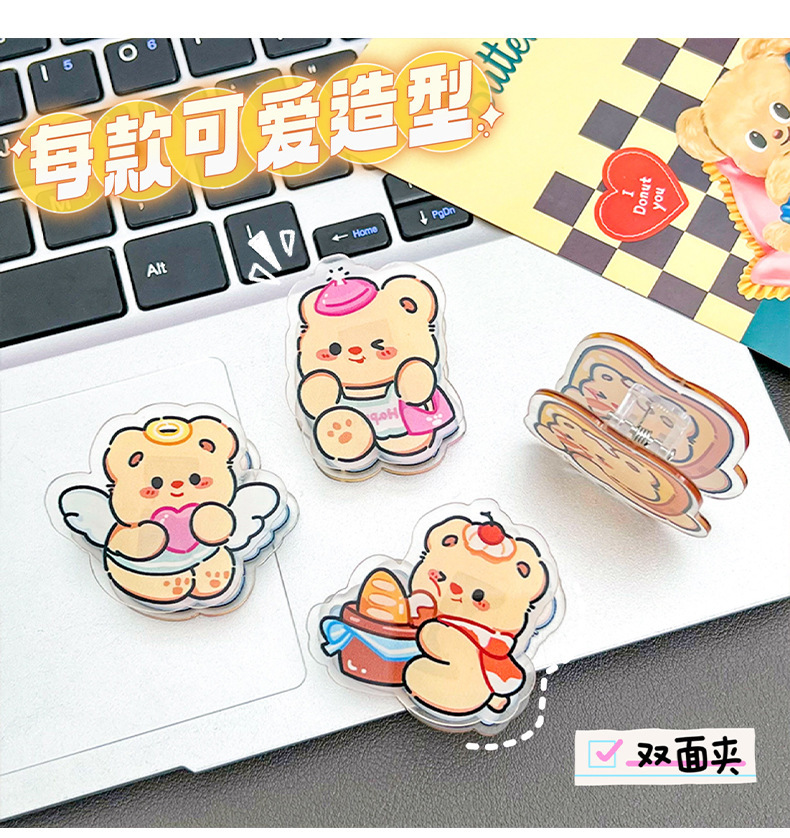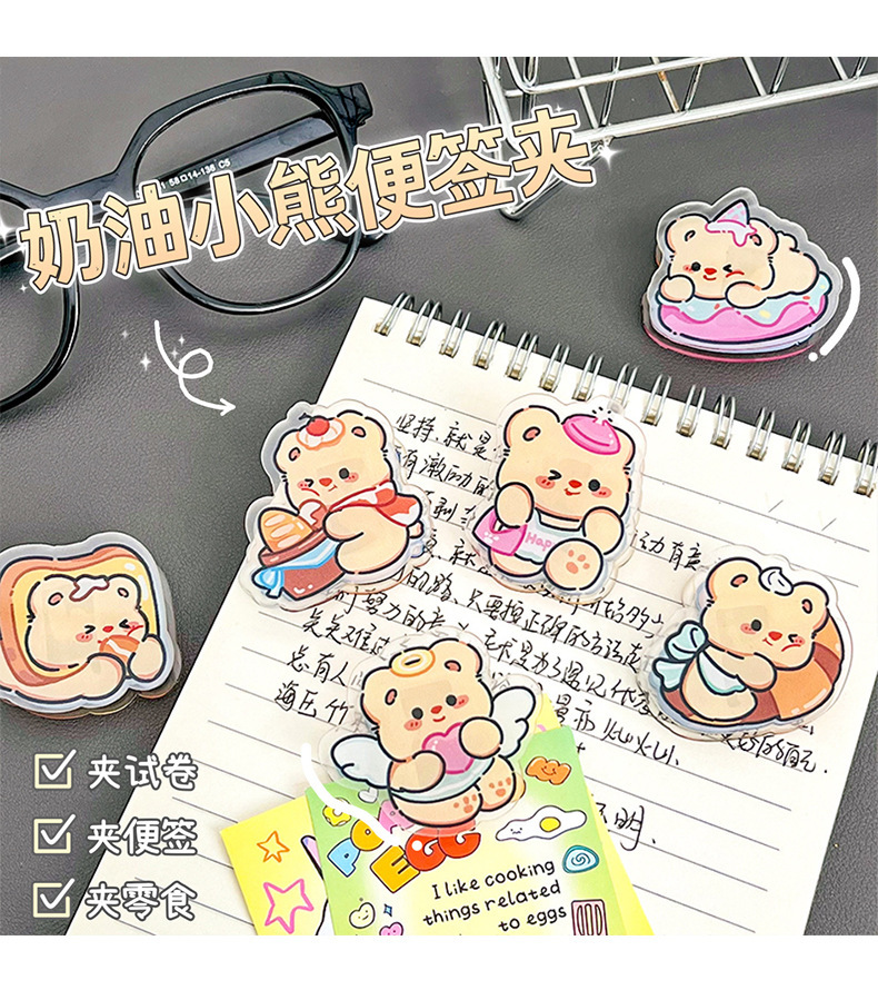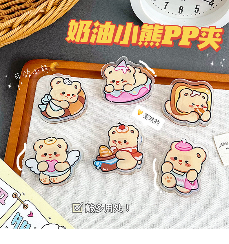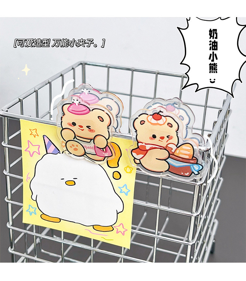 밀크 버터 베어 노트 클립 높은 색상 값 Ins 스타일 양면 클립 아크릴 PP 클립 소녀 테스트 종이 클립 보관 클립스토어 가기