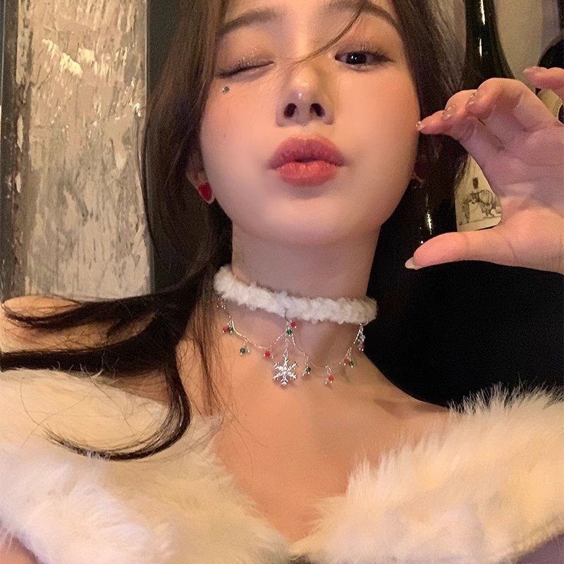 가을, 겨울 더블 레이어 눈송이 목걸이 여성 플러시 초커 목걸이 2024 새로운 핫 스타일 쇄골 체인 가을, 겨울 액세서리