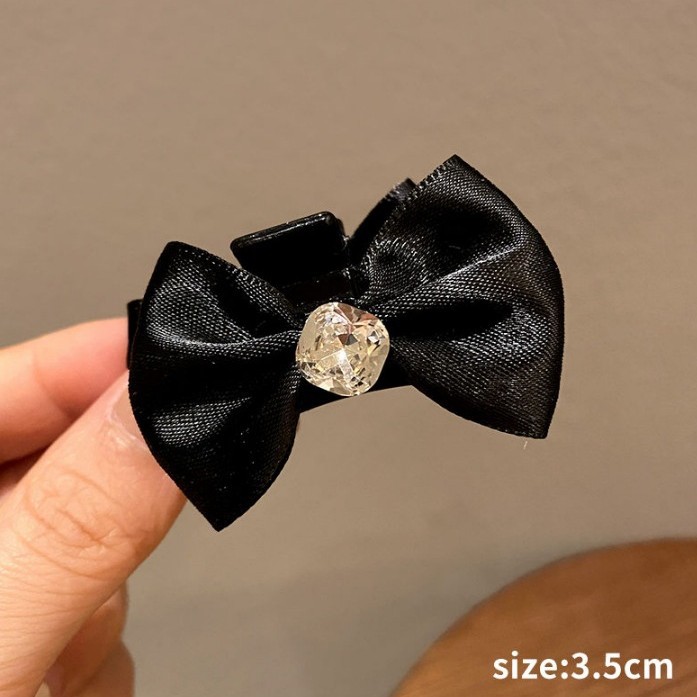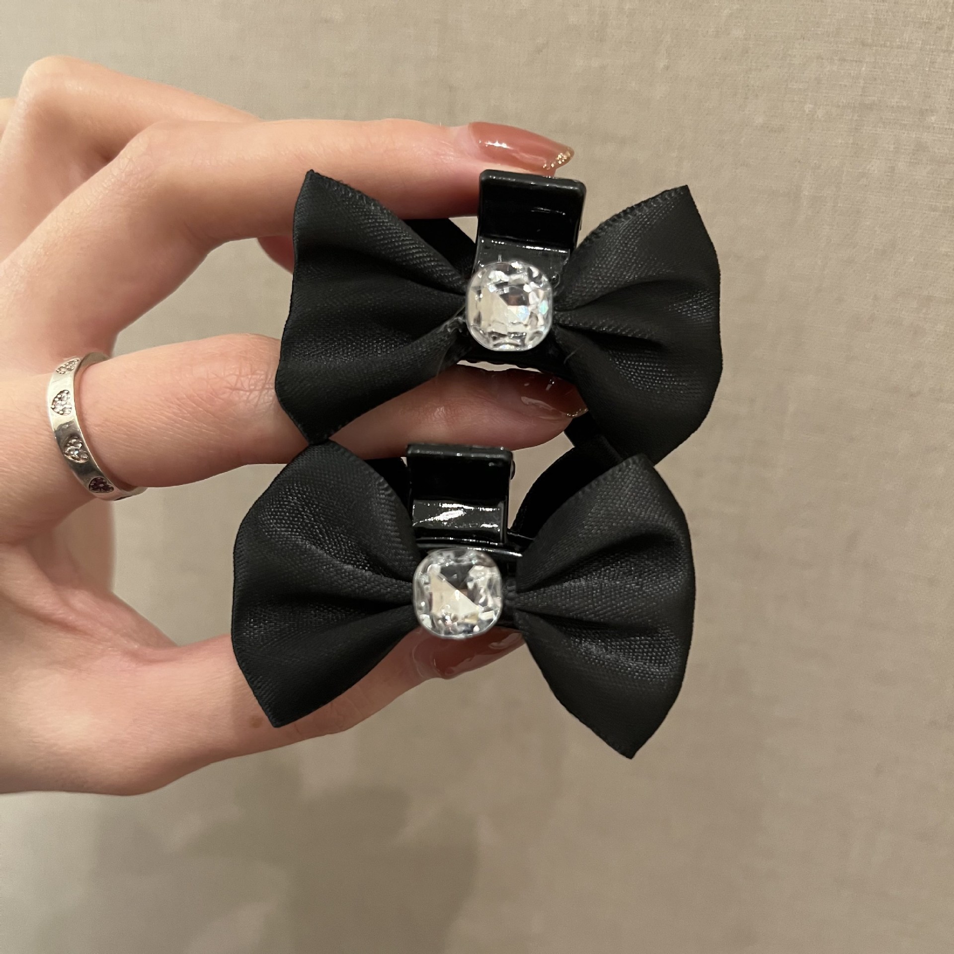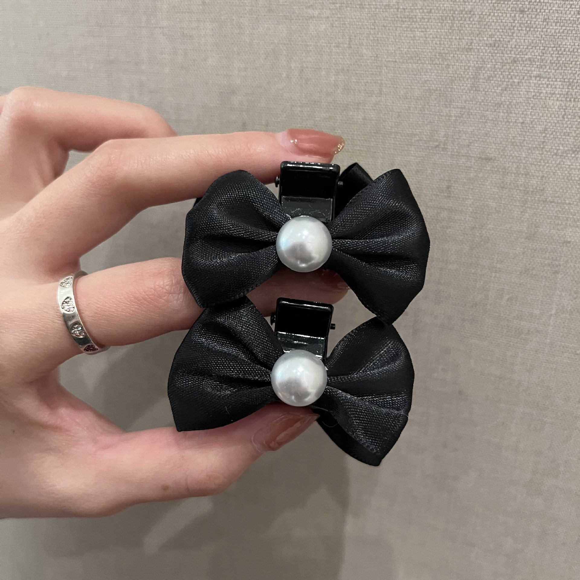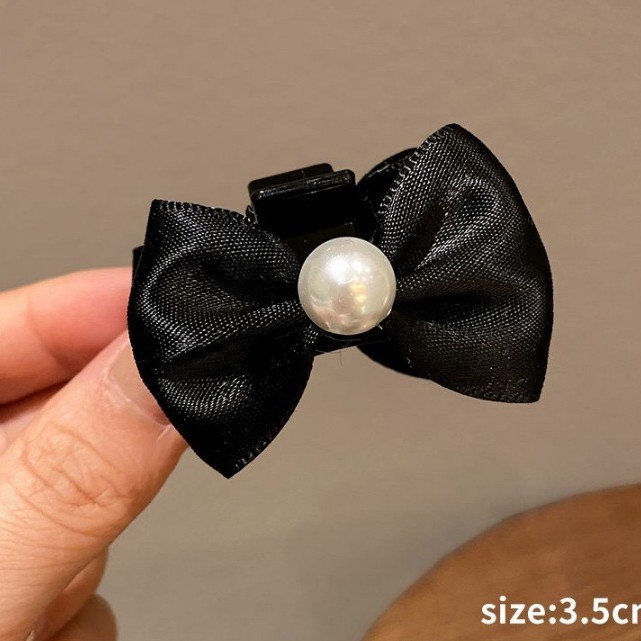 검은색 양면 리본 작은 머리핀 공주 머리핀 새틴 모조 비즈 작은 앞머리 클립 머리핀 머리핀 머리 장식