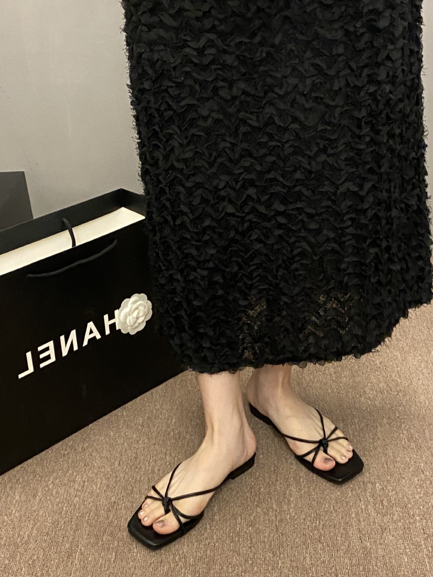 여성 여름 겉옷을위한 복고풍 다목적 얇은 스트랩 슬리퍼 2024 여성을위한 새로운 플랫 바닥 플립 플롭 한국 스타일 플립 플롭