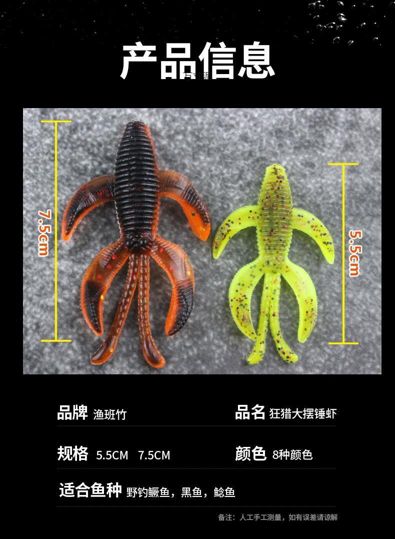 Luya 가짜 미끼 큰 진자 새우 리드 후크 4 륜 구동 새우 퍼치 부드러운 미끼 검은 구덩이 검은 물고기 만다린 물고기 메기 특별한 입스토어 가기