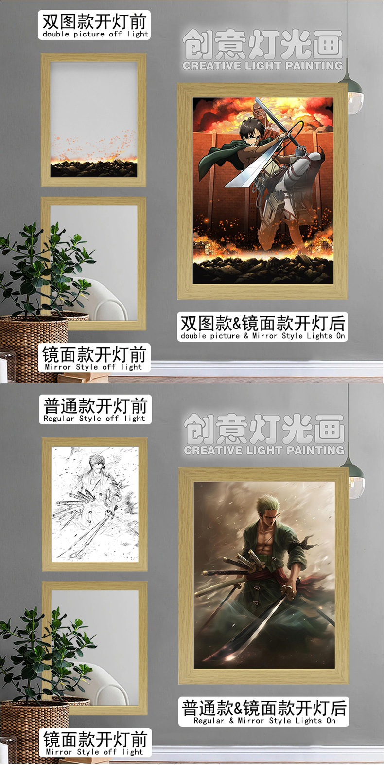 The light painting with double picture effect has one effect before turning on the light, and another picture will be superimposed after turning on the light. The painting cores of mirror painting and double picture painting can be purchased separately, which is convenient for you to change