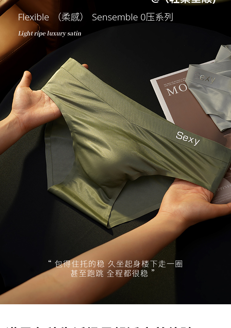 2025 광택 새틴 라이트 럭셔리 남성 아이스 스타일 브리프 남성 싱글 레이어 크로트 10A 박테리아 패브릭 아이스 실크