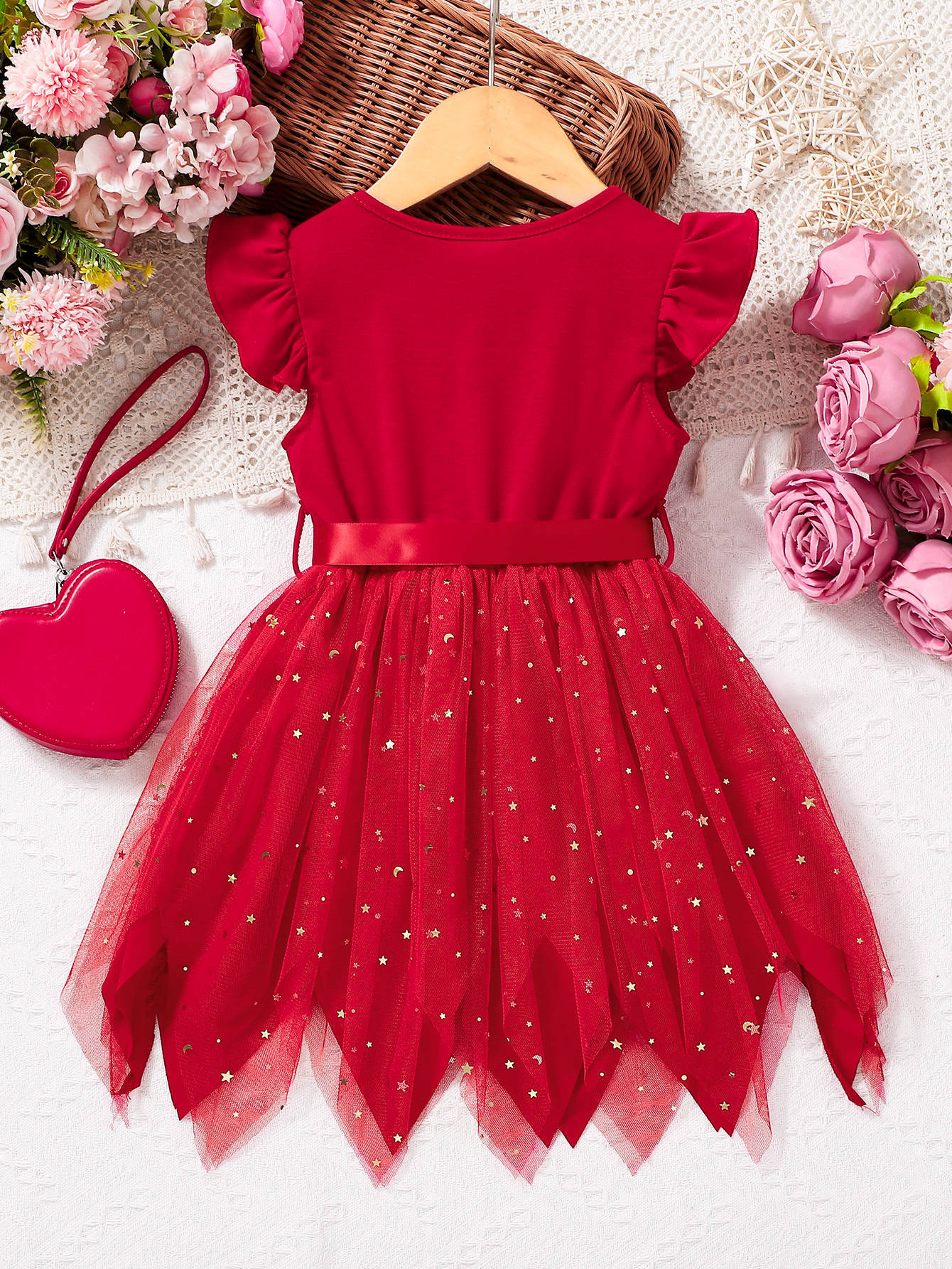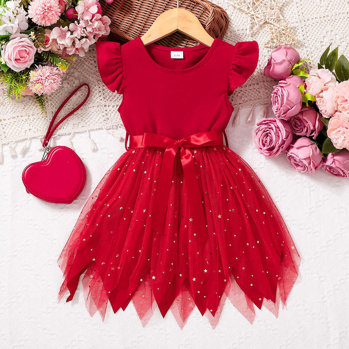 여자 여름 새 스타일 서양식 반팔 원피스 공주 원피스 판초 베일 원피스 어린이 원피스 레이스