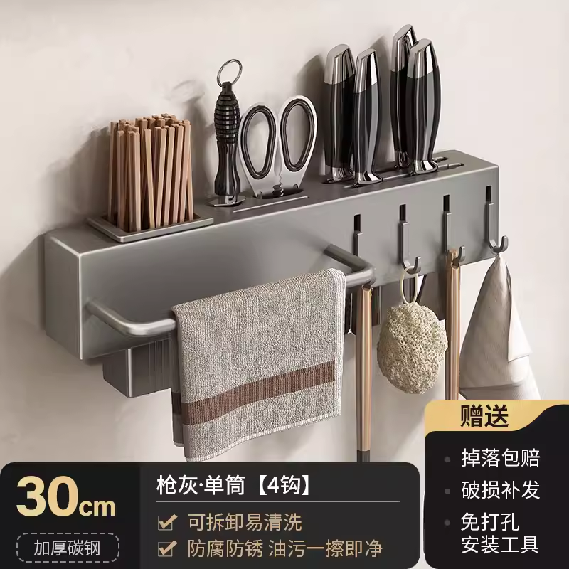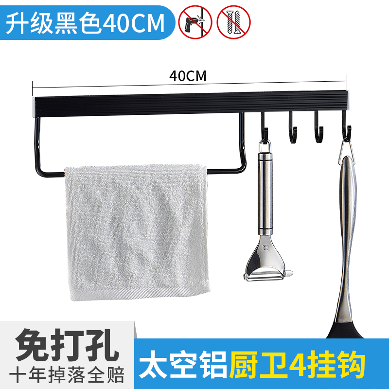 • 주방 및 욕실 업그레이드 검정색 40cm-4 후크(막대 포함)(구멍을 뚫을 필요 없음)