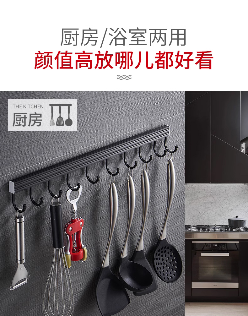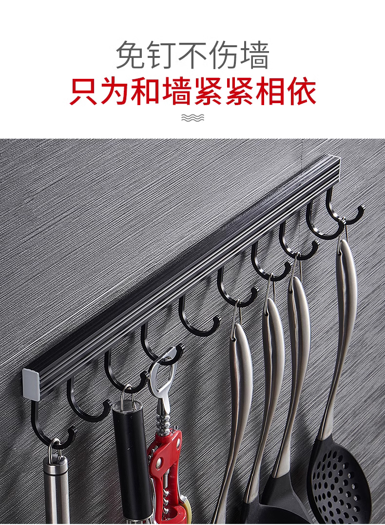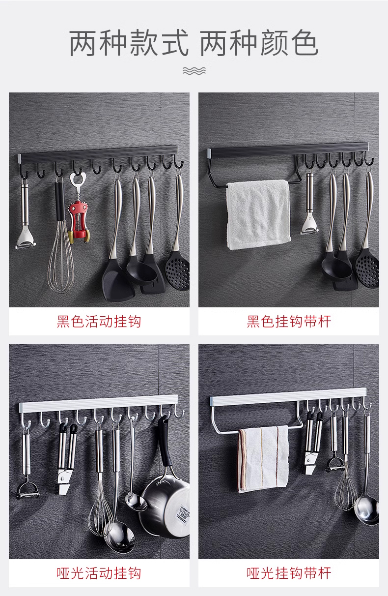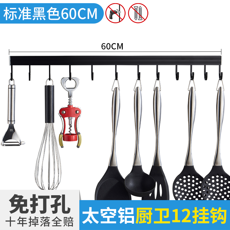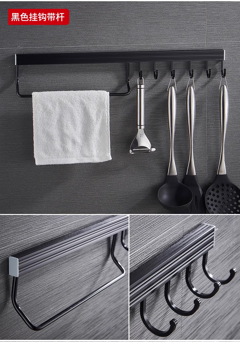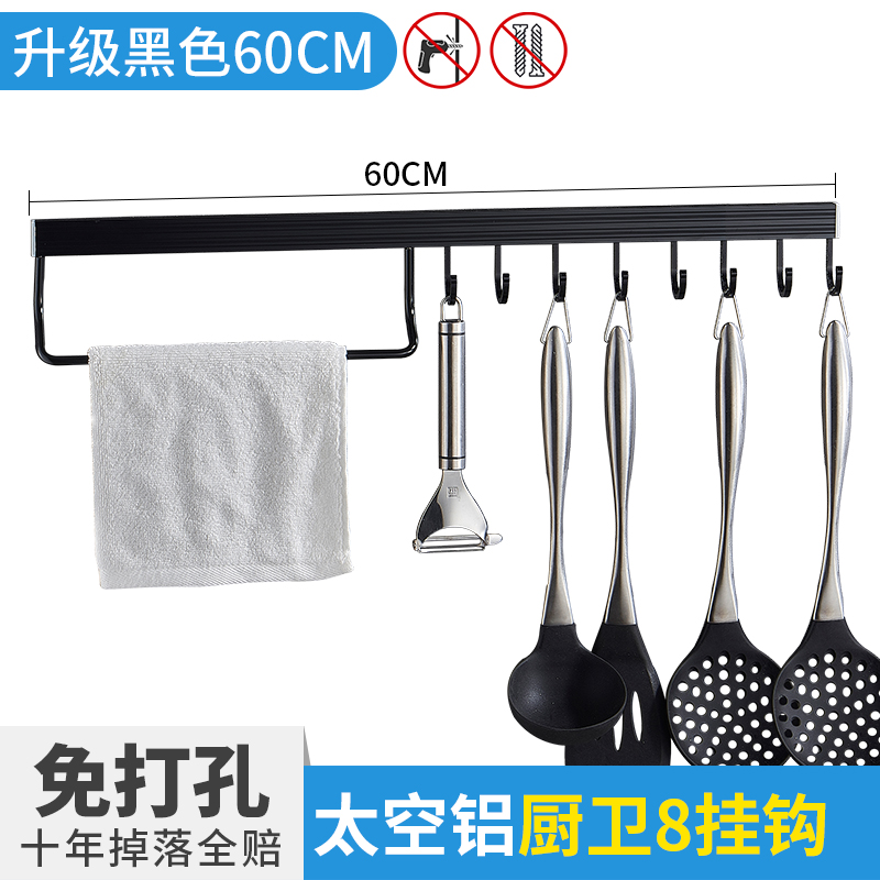 • 주방 및 욕실 업그레이드 검정색 60cm-8 후크(막대 포함)(구멍을 뚫을 필요 없음)