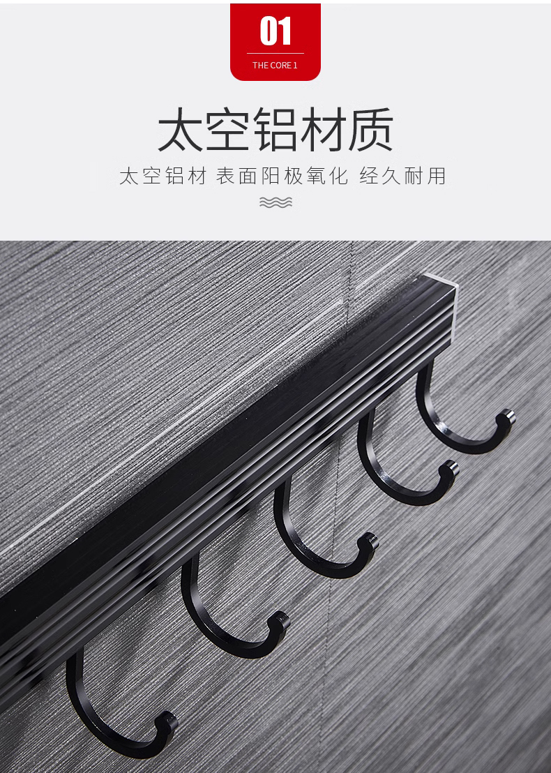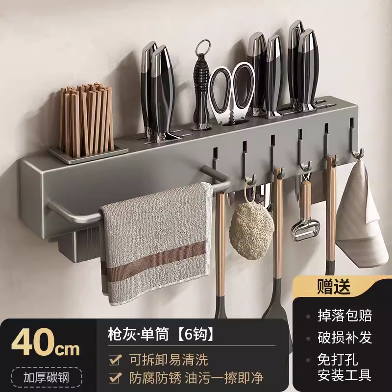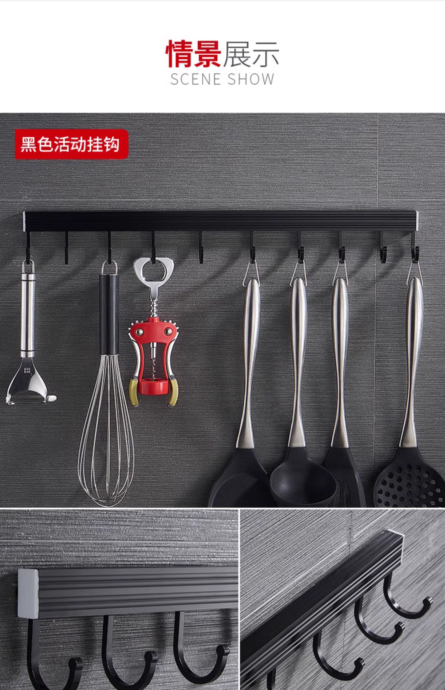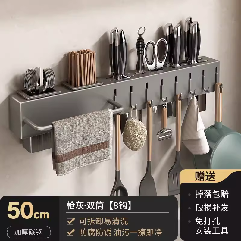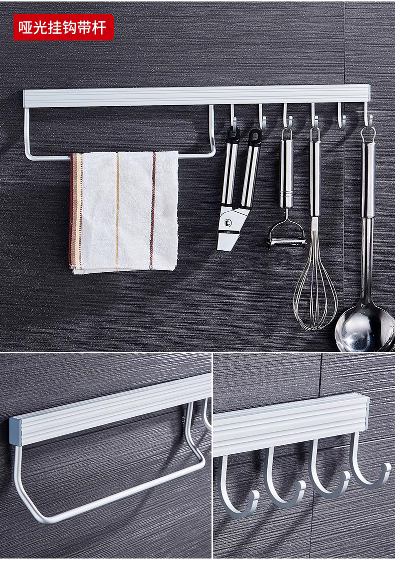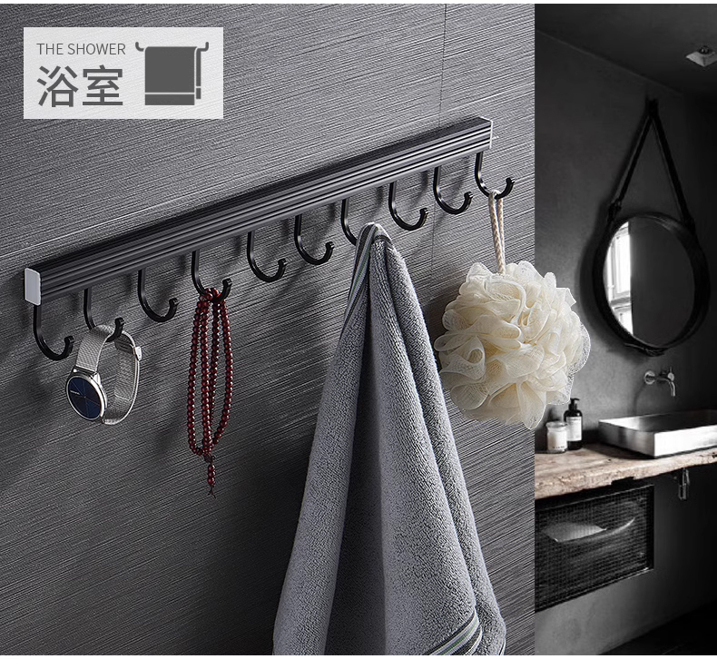 • 주방 및 욕실 업그레이드 검정색 60cm-8 후크(막대 포함)(구멍을 뚫을 필요 없음)