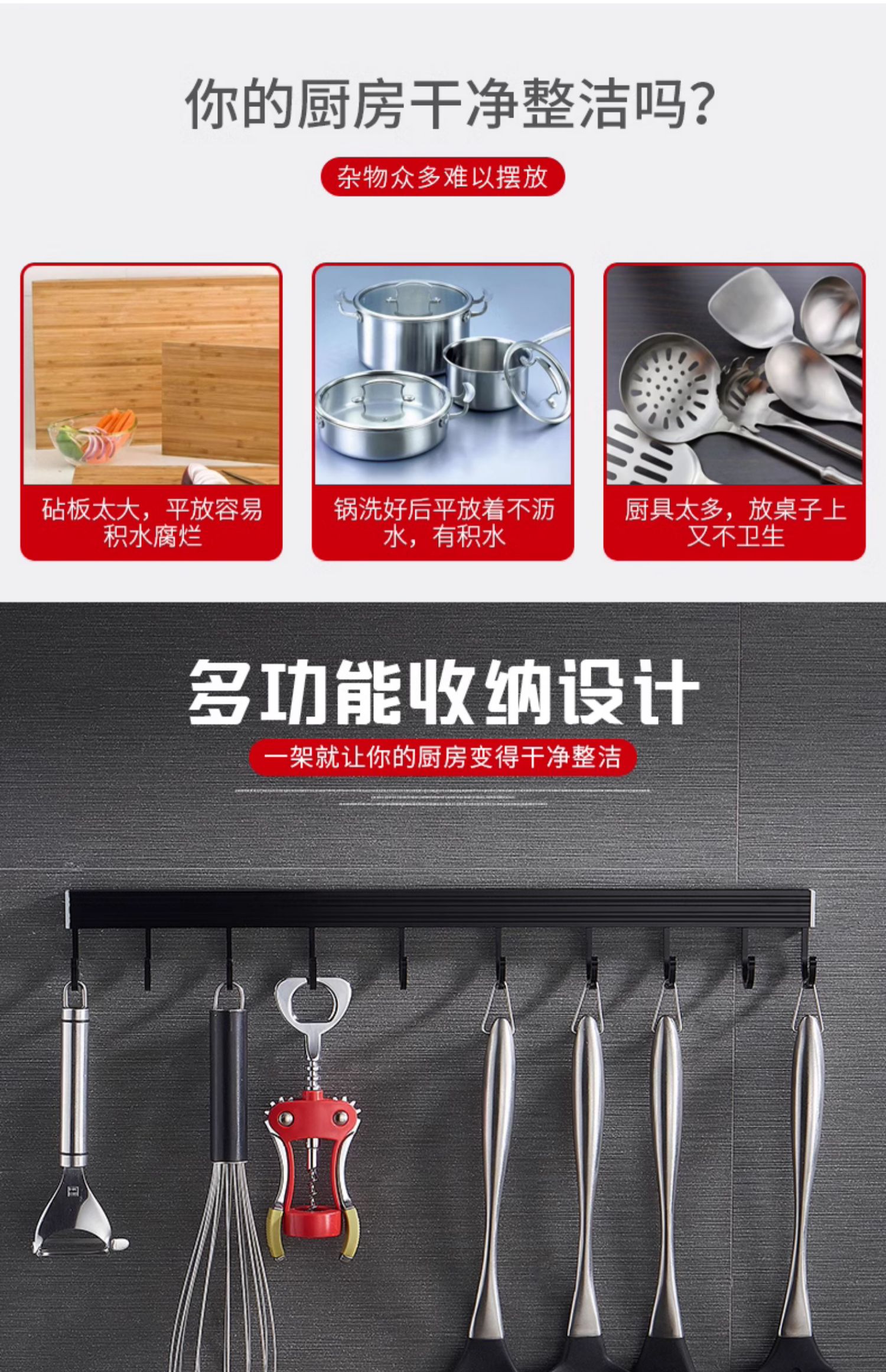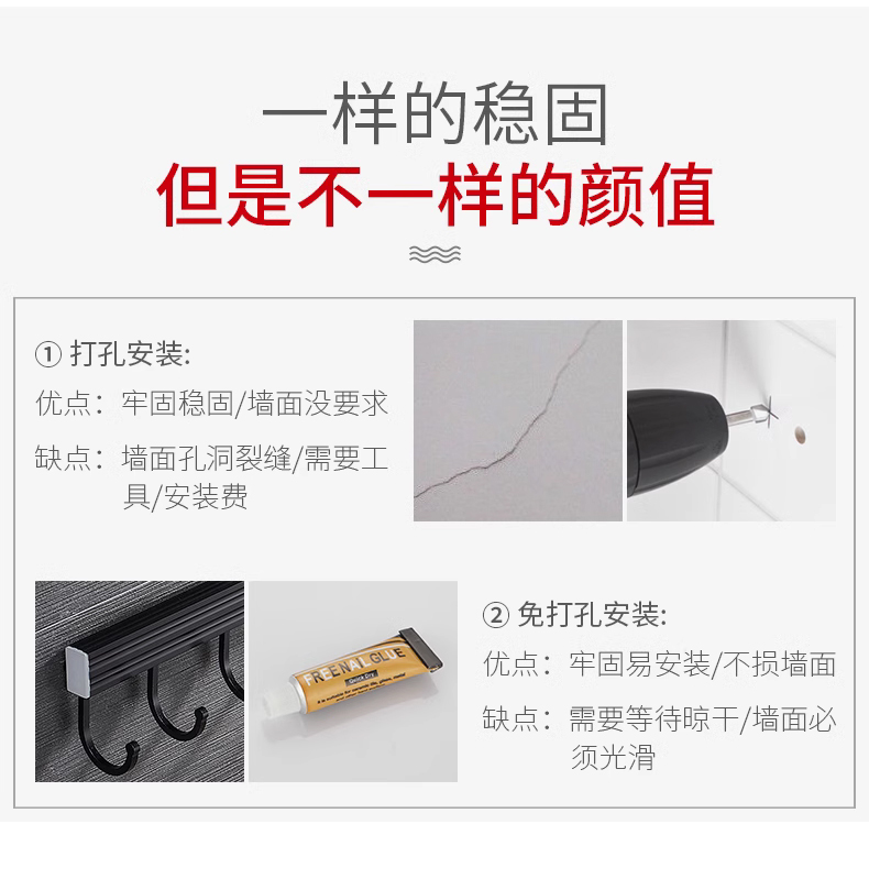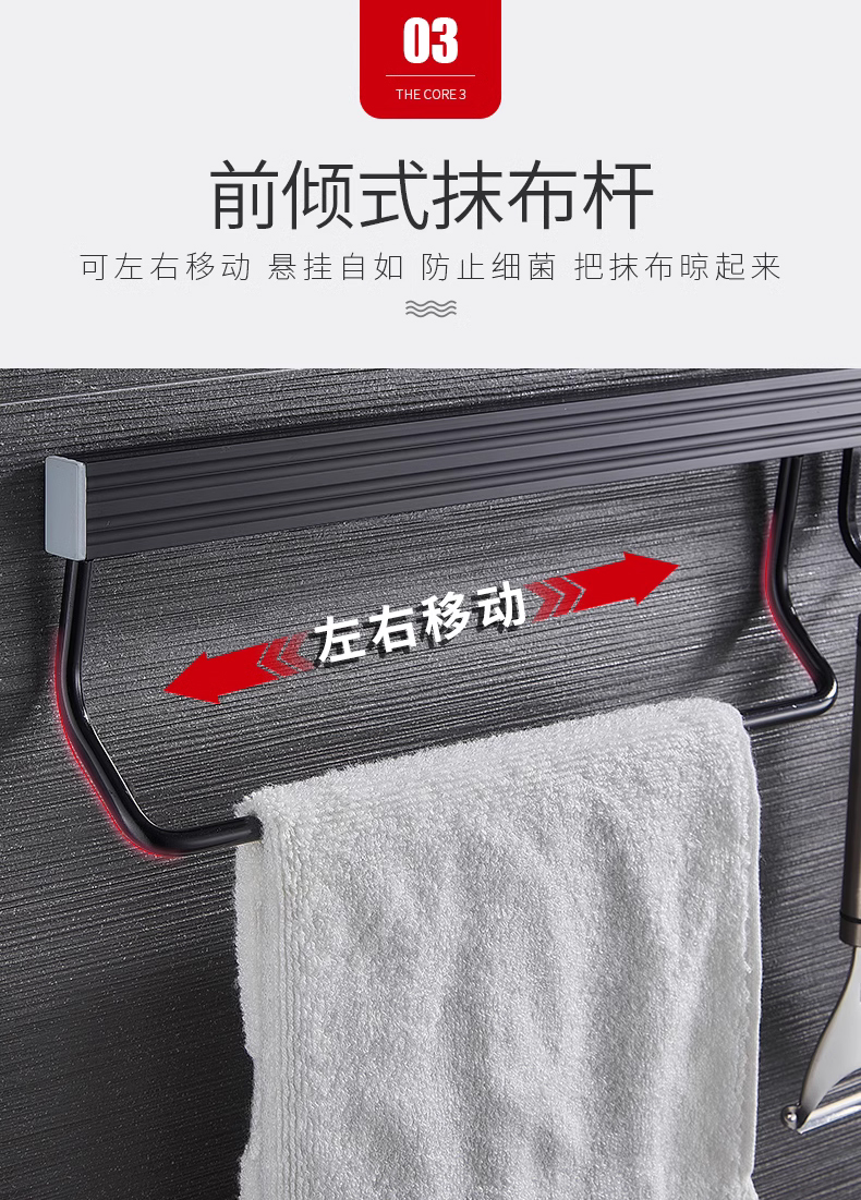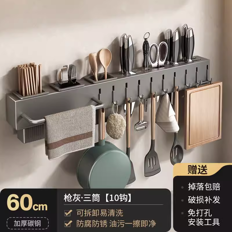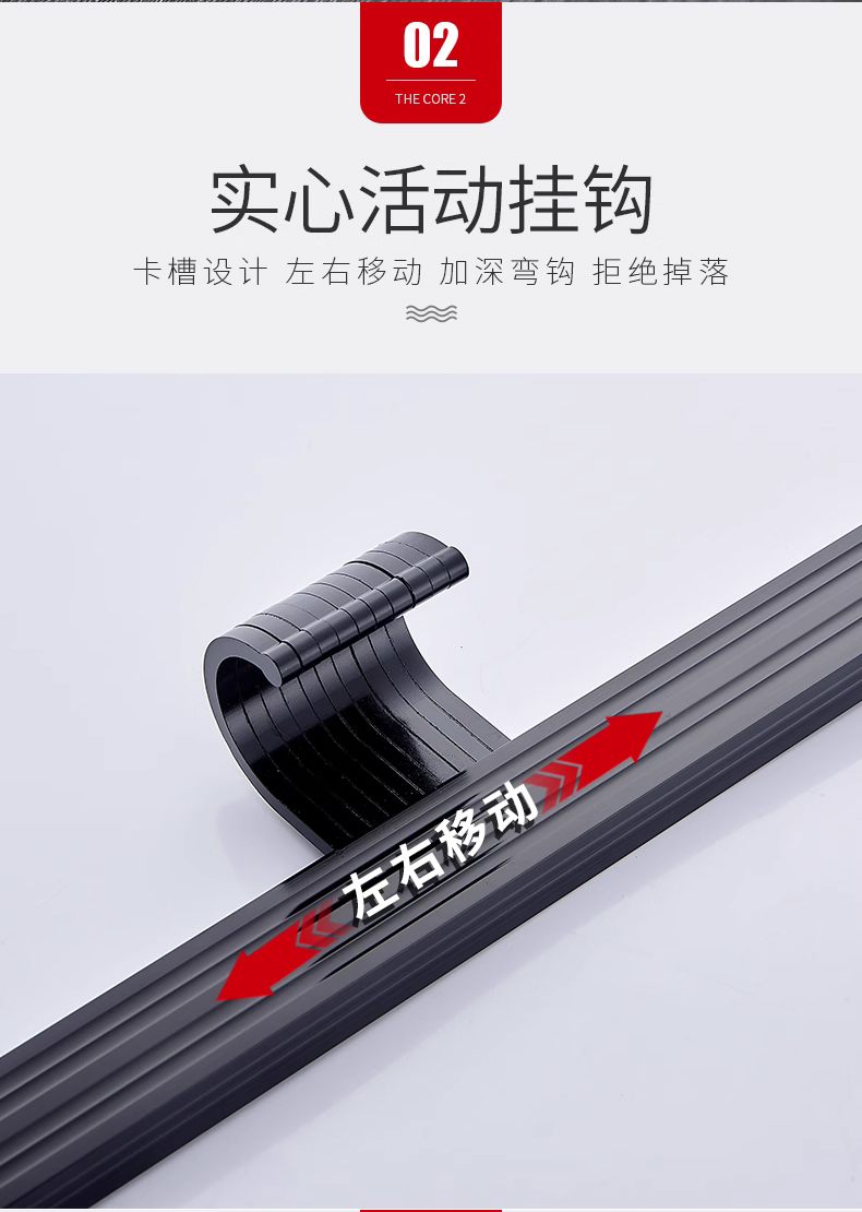 • 주방 및 욕실 업그레이드 검정색 60cm-8 후크(막대 포함)(구멍을 뚫을 필요 없음)
