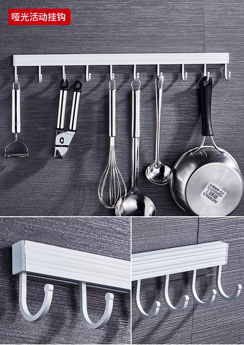 펀치없는 주방 후크 벽걸이 형 스토리지 랙 스푼 로우 후크 주방 및 욕실 옷걸이 냄비 삽 후크 공간 알루미늄
