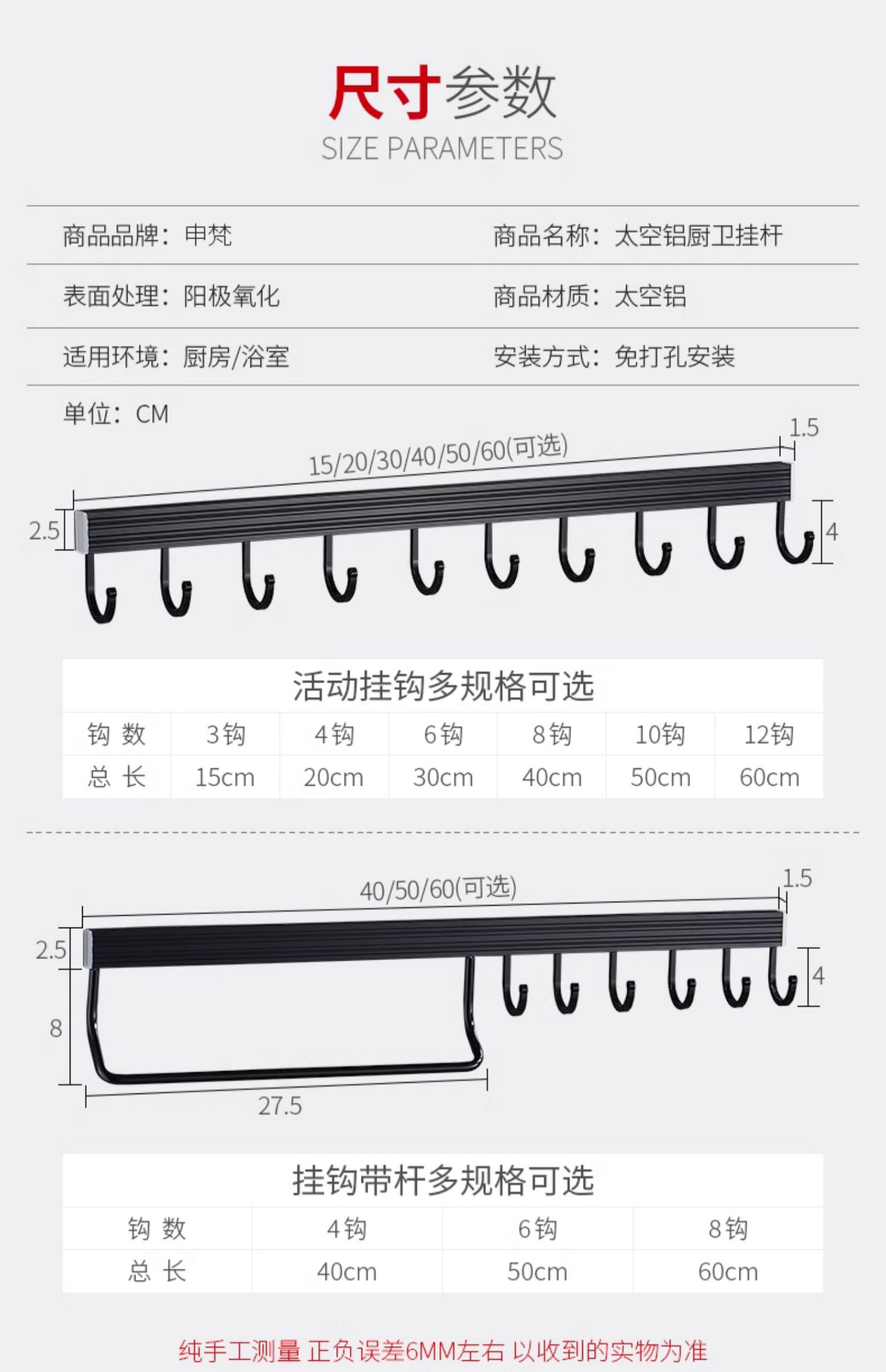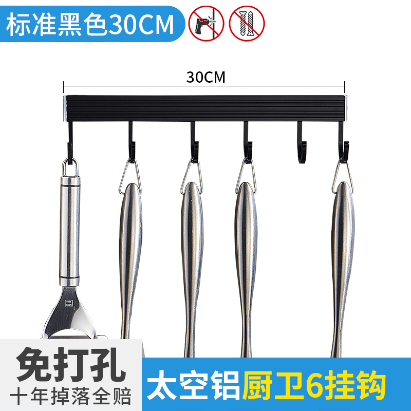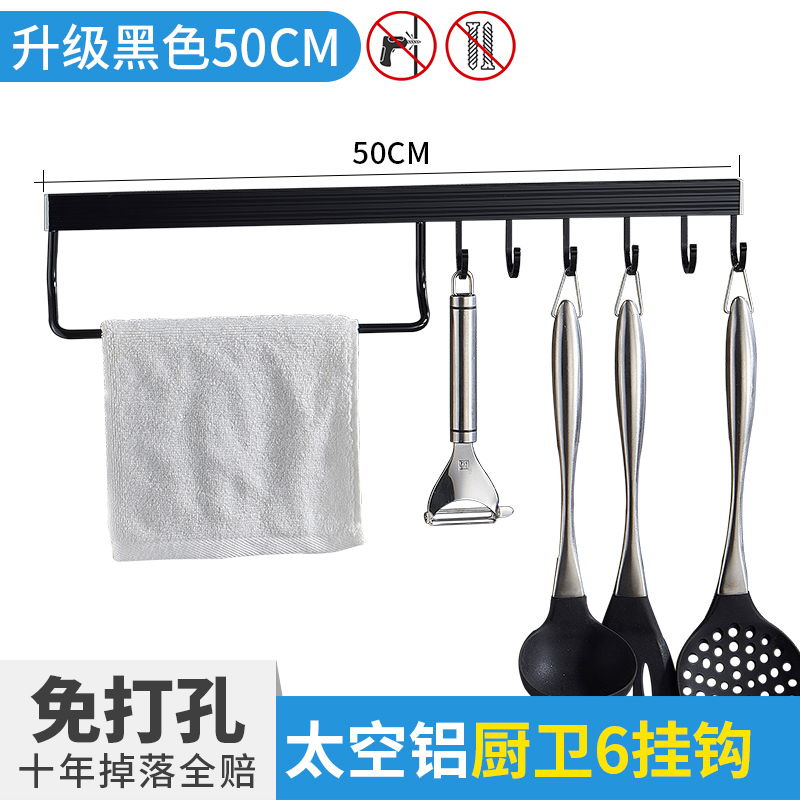 • 주방 및 욕실 업그레이드 검정색 50cm-6 후크(막대 포함)(구멍을 뚫을 필요 없음)