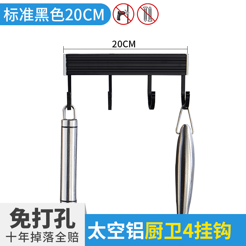 • 주방 및 욕실 표준 검정색 20cm-4 후크(구멍을 뚫을 필요 없음)