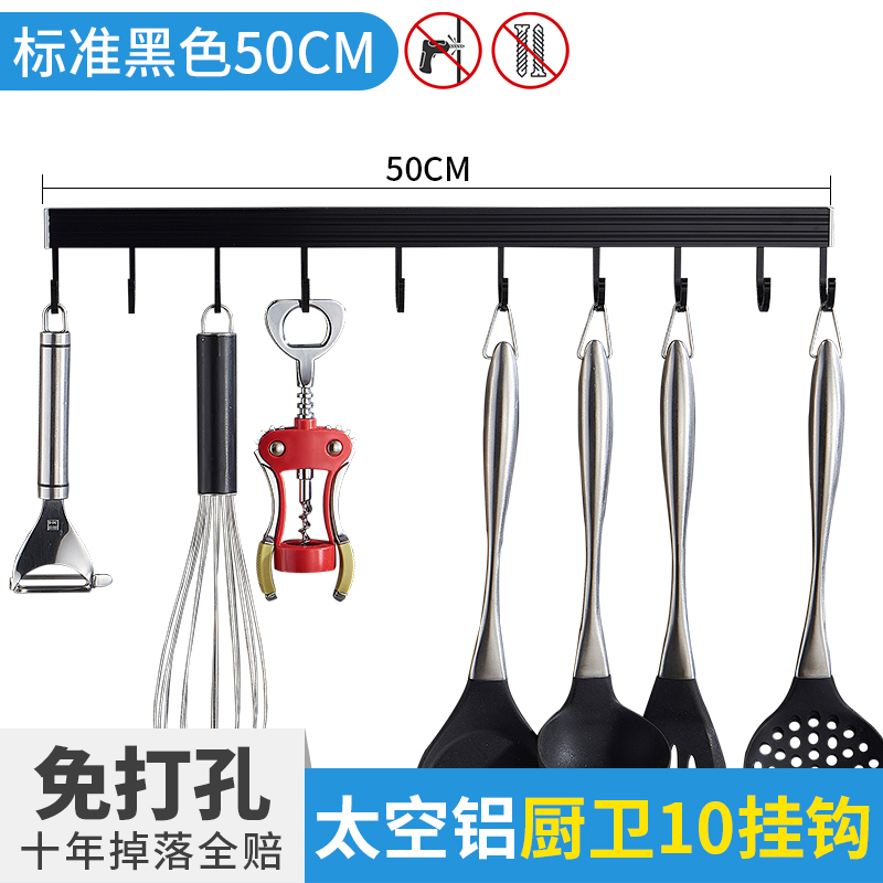 • 주방 및 욕실 표준 검정색 50cm-10 후크(구멍을 뚫을 필요 없음)