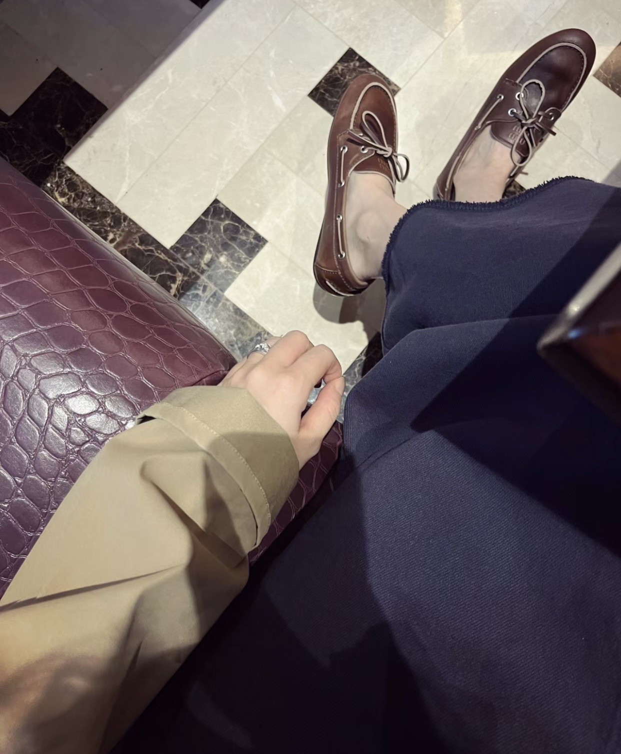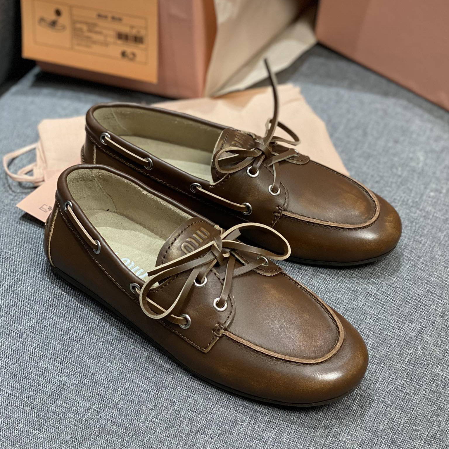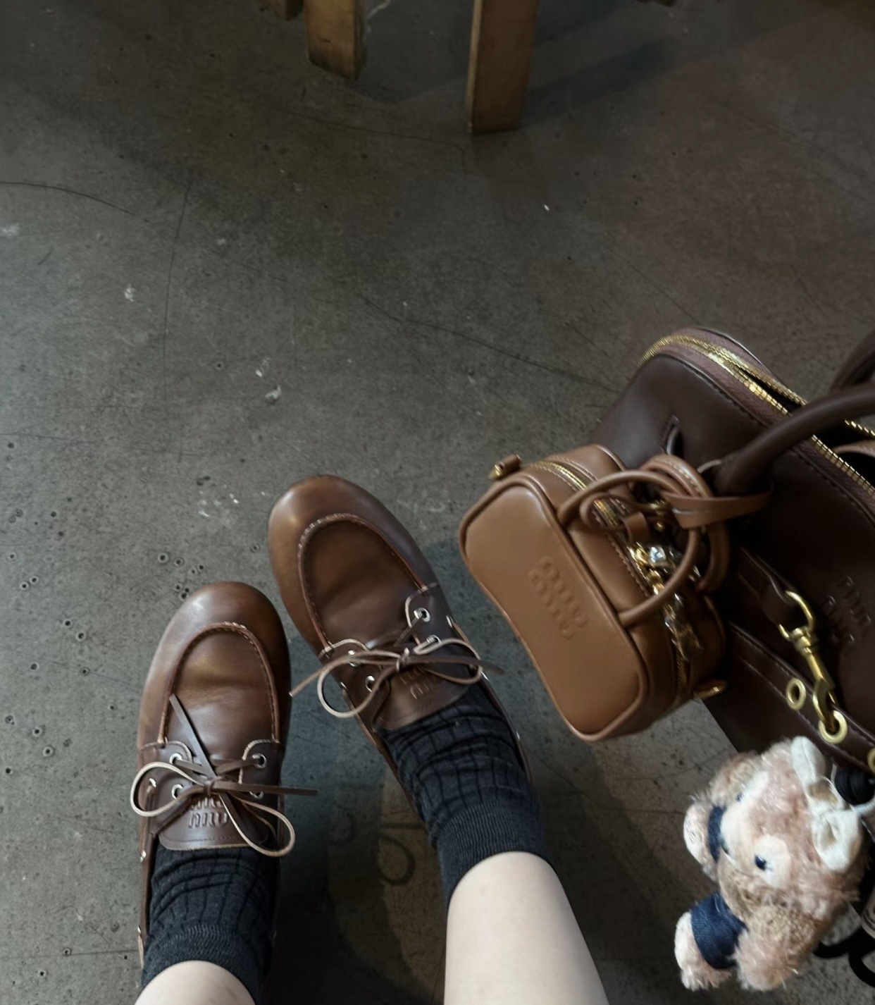 2025 봄 신작 레트로 정품 가죽 플랫 슬립온 신발 여성용 펌프스 레이스 업 컬러 러스트 로퍼스토어 가기