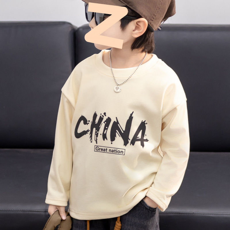 2025 새로운 어린이 양털베이스 셔츠 소년의 긴팔 티셔츠 소년의 탑 소년의 보물 티셔츠 아우터웨어