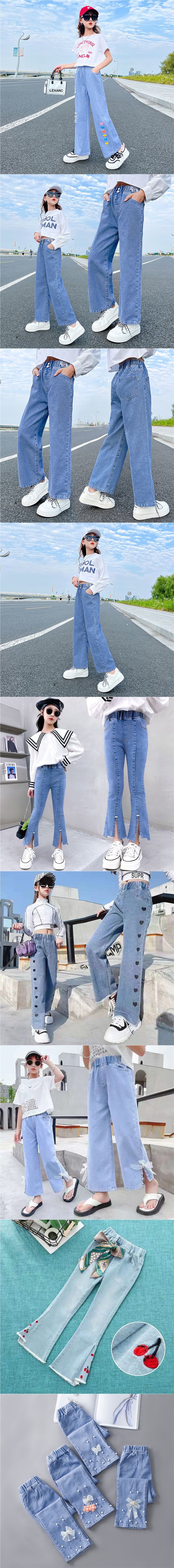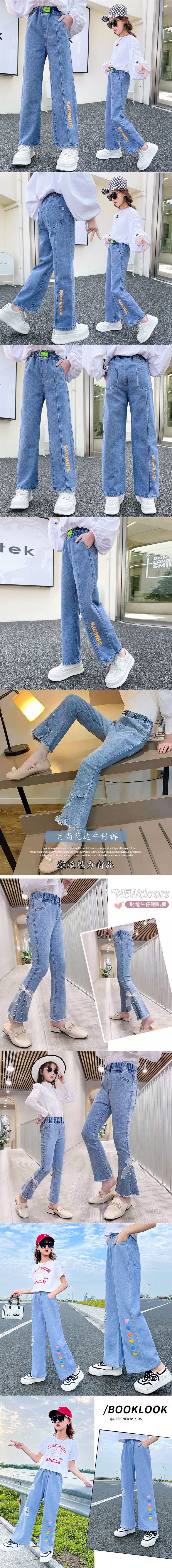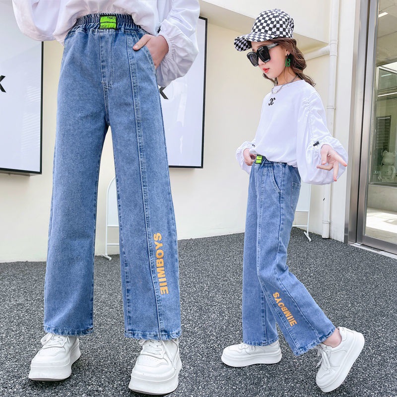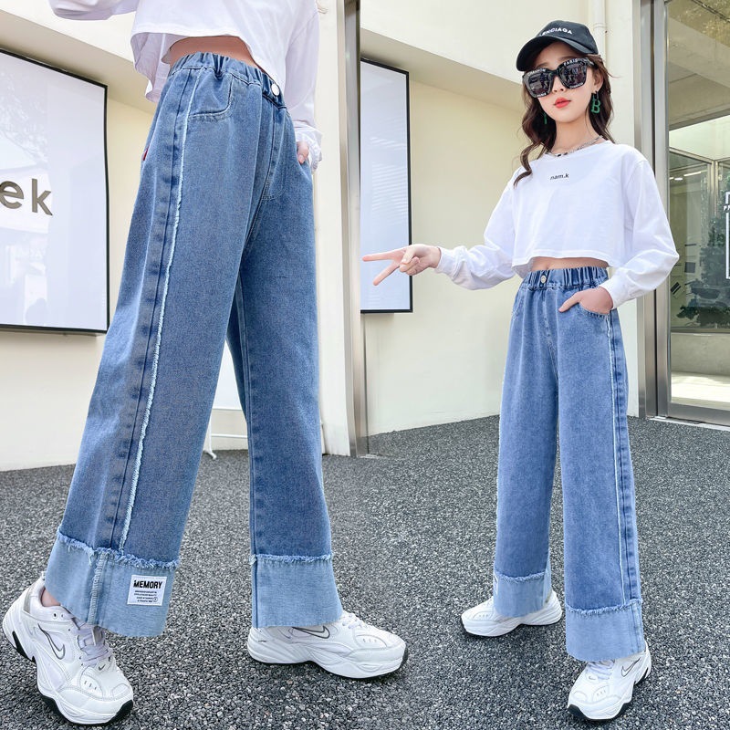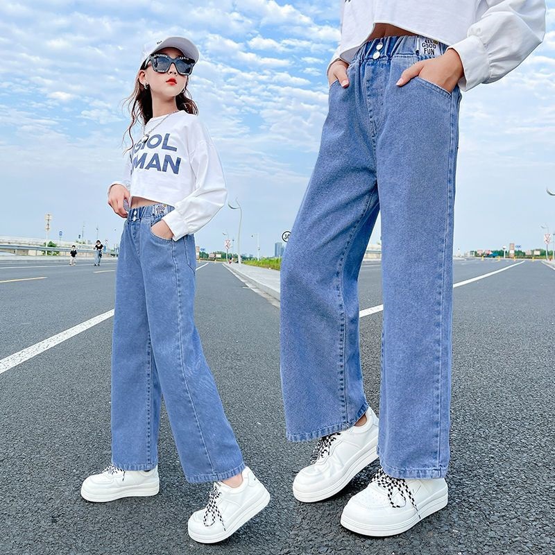 소녀 청바지 봄과 가을 2022 새로운 한국식 어린이 중 · 대형 어린이 넓은 다리 바지 소녀 느슨한 바지 외국 스타일스토어 가기