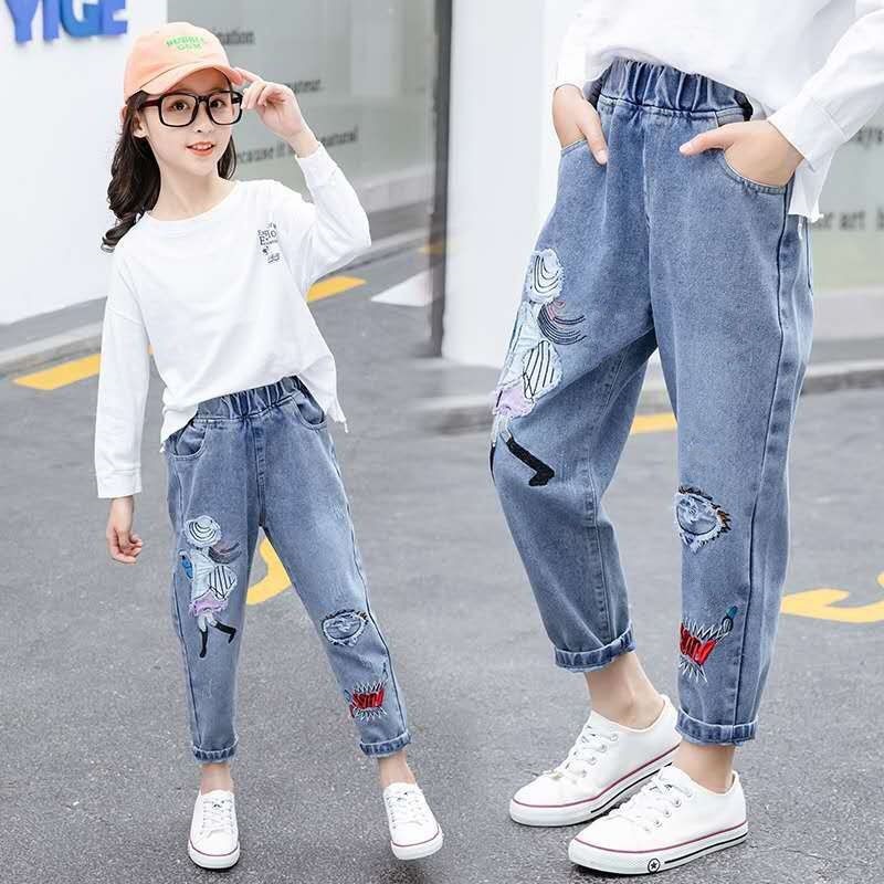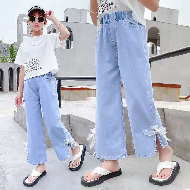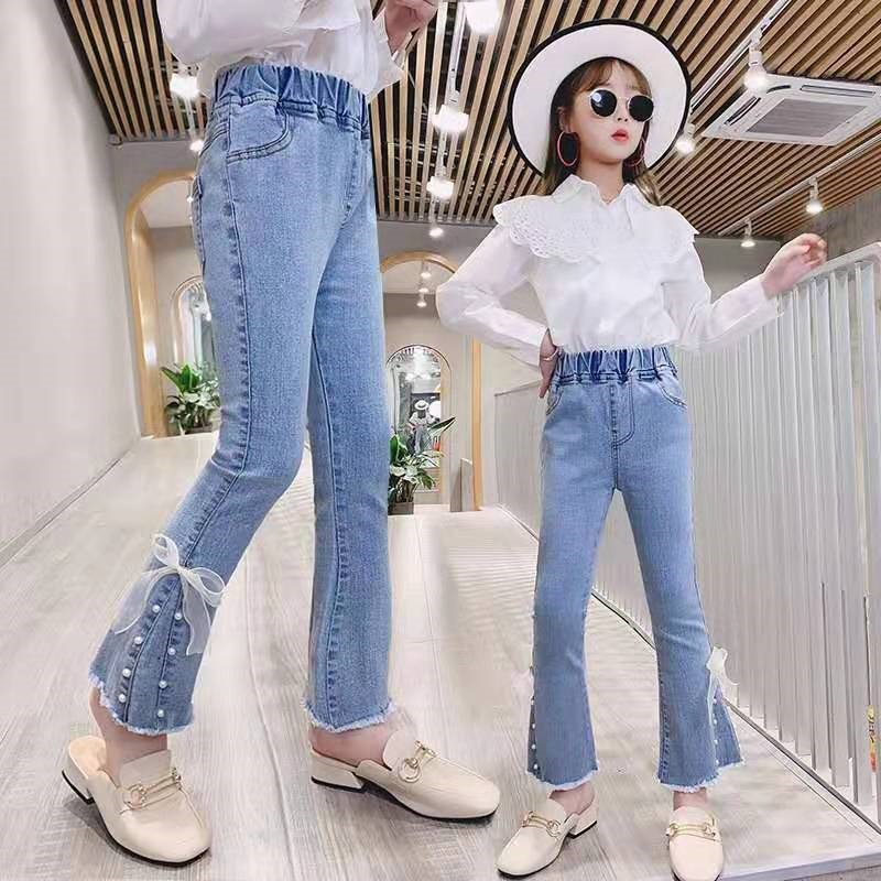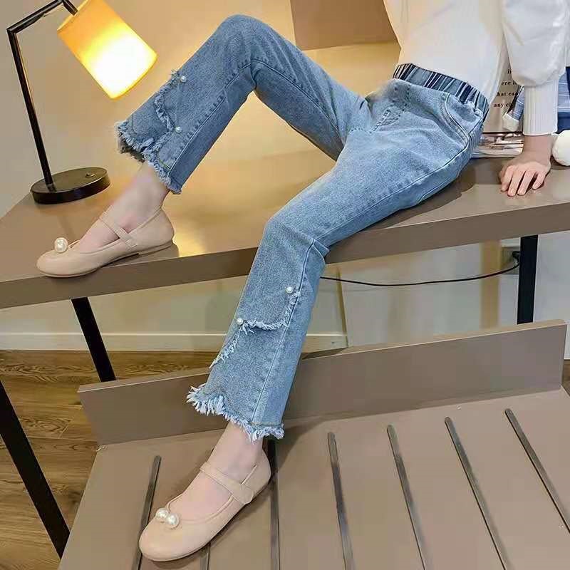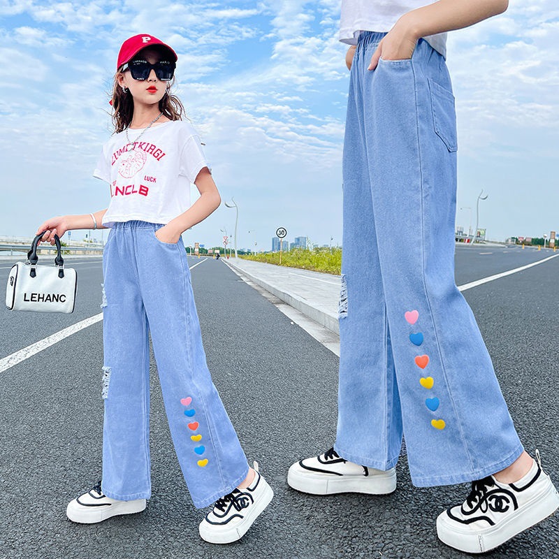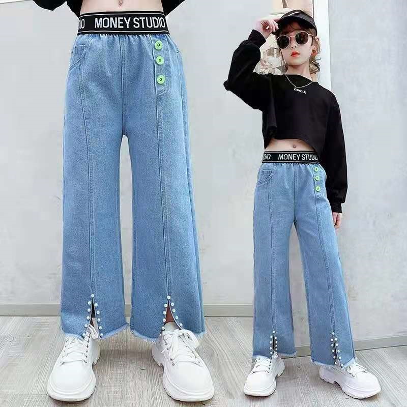 소녀 청바지 봄과 가을 2022 새로운 한국식 어린이 중 · 대형 어린이 넓은 다리 바지 소녀 느슨한 바지 외국 스타일스토어 가기