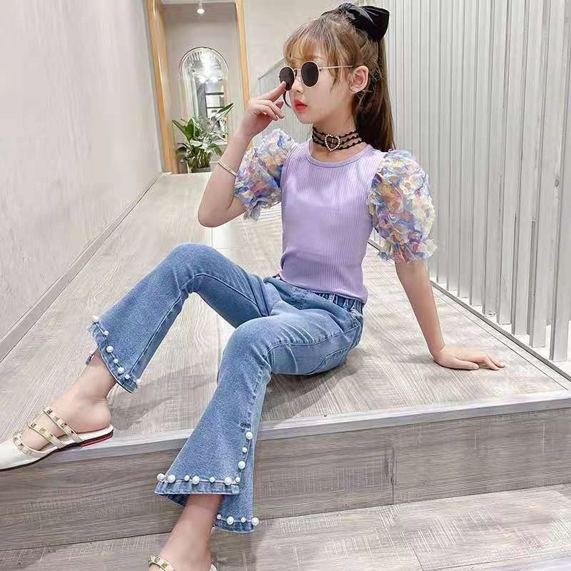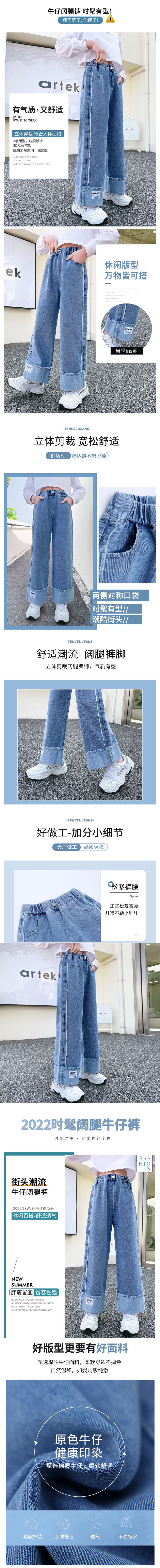 소녀 청바지 봄과 가을 2022 새로운 한국식 어린이 중 · 대형 어린이 넓은 다리 바지 소녀 느슨한 바지 외국 스타일