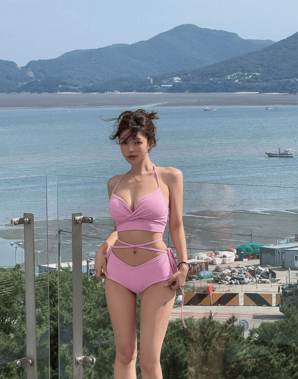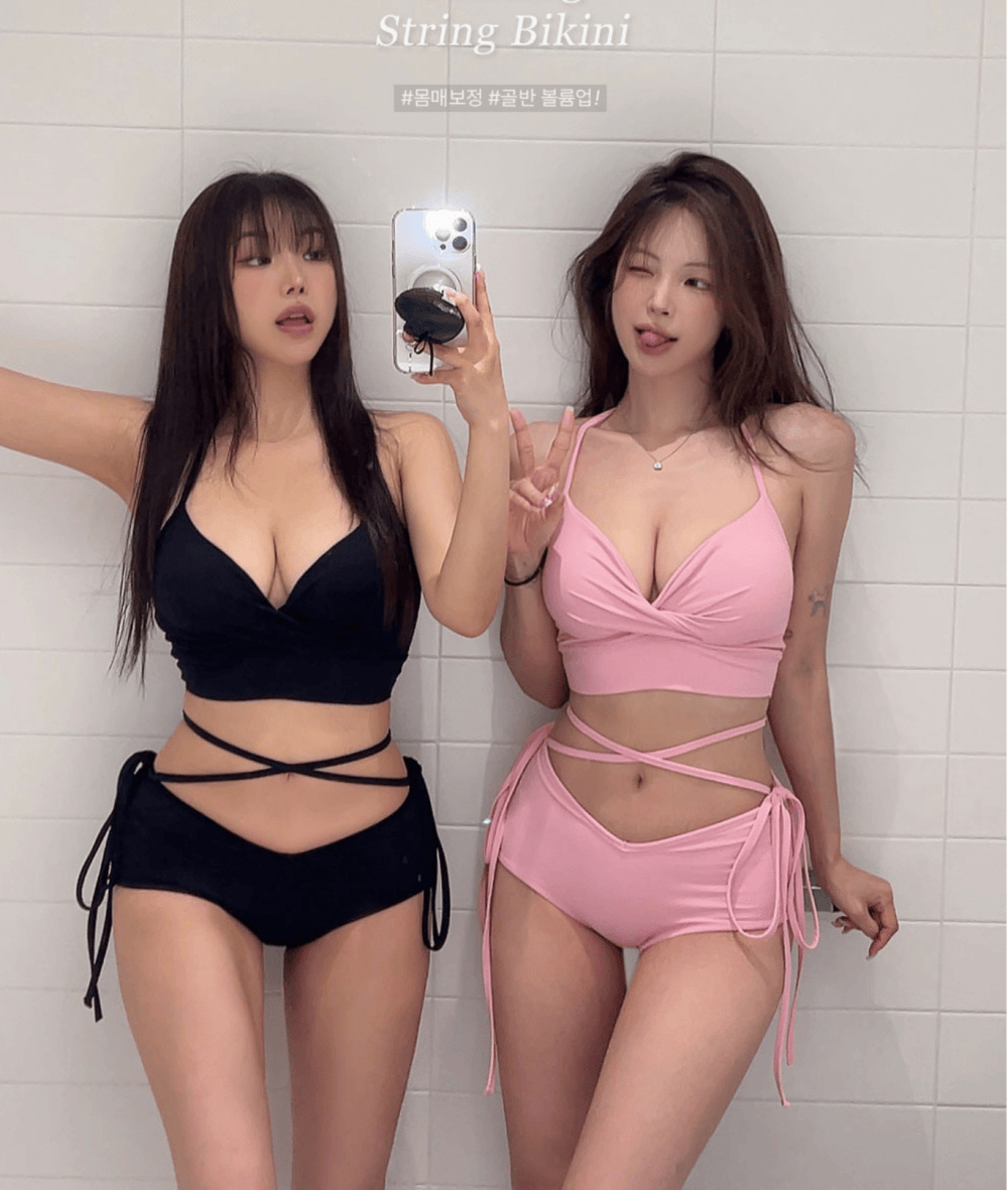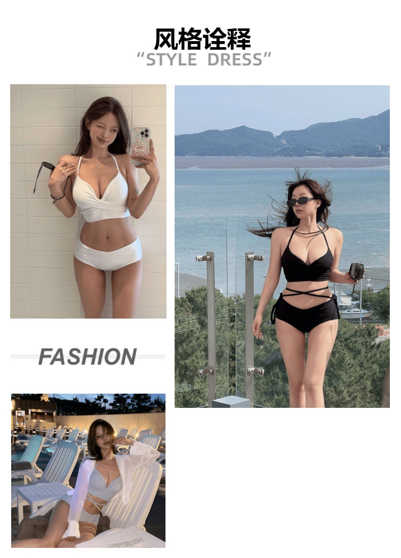한국 2025ins 스타일 새로운 솔리드 컬러 스플릿 수영복 여성 순수한 욕망 스타일 bestie 스타일 크로스 스트랩 수영복스토어 가기
