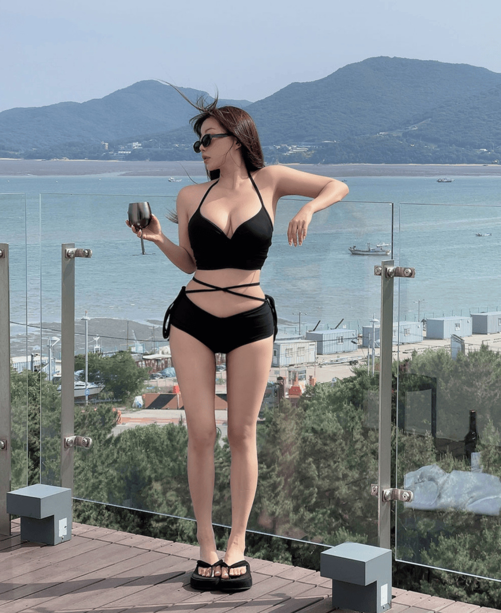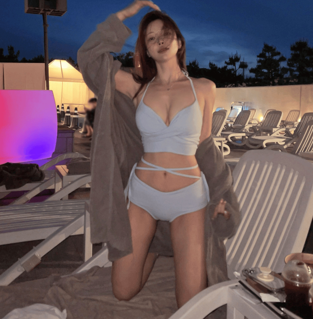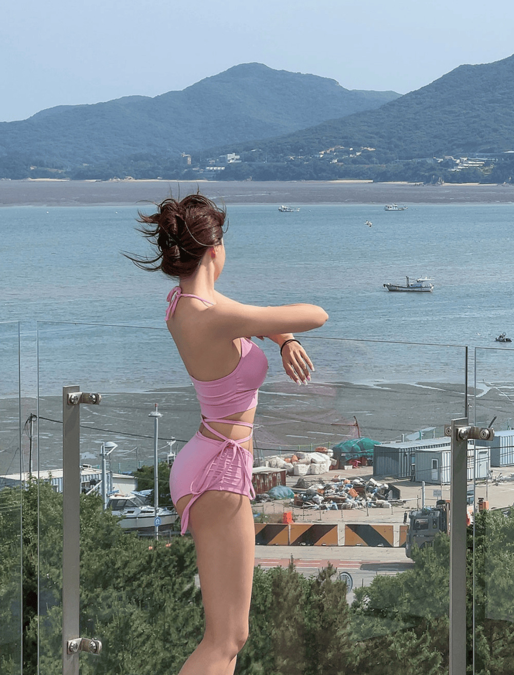 한국 2025ins 스타일 새로운 솔리드 컬러 스플릿 수영복 여성 순수한 욕망 스타일 bestie 스타일 크로스 스트랩 수영복스토어 가기