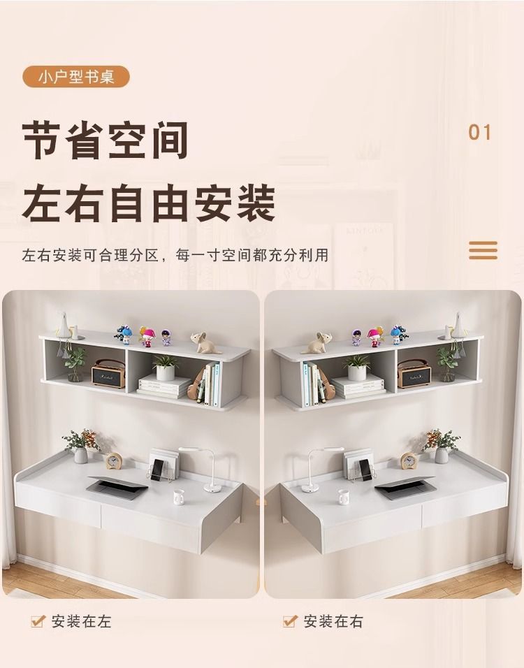 공중에 뜨는 책상과 책장 일체형 침실 책상 노트북 책상 침대 옆 화장대 화장대 공중에 뜨는 테이블