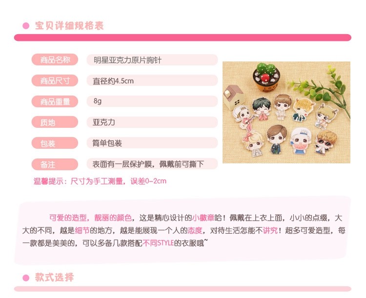 尺寸:3-5CM之间 每个徽章形状不一,大小也会不一样,