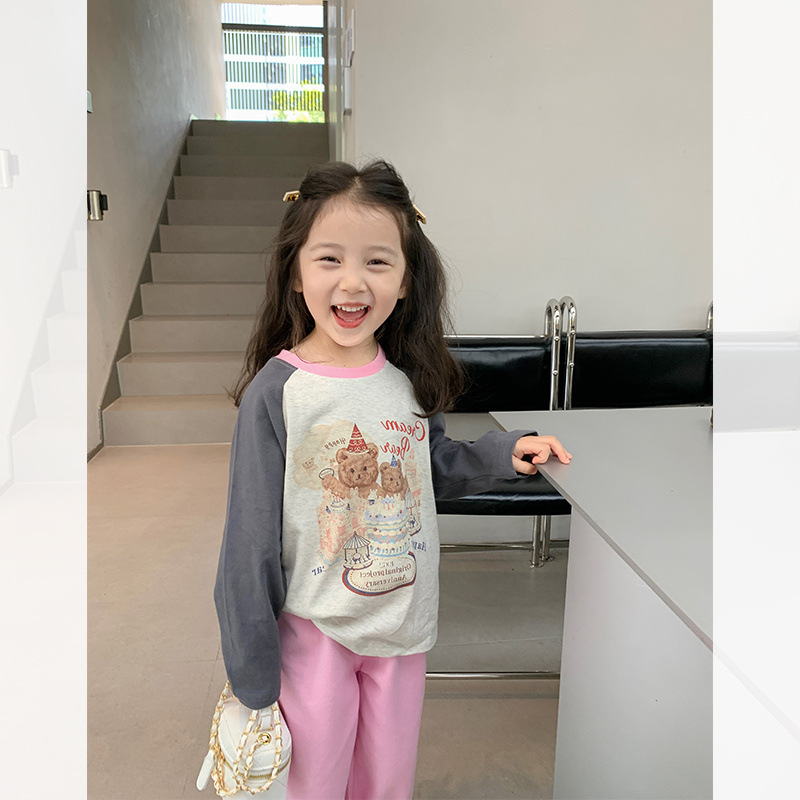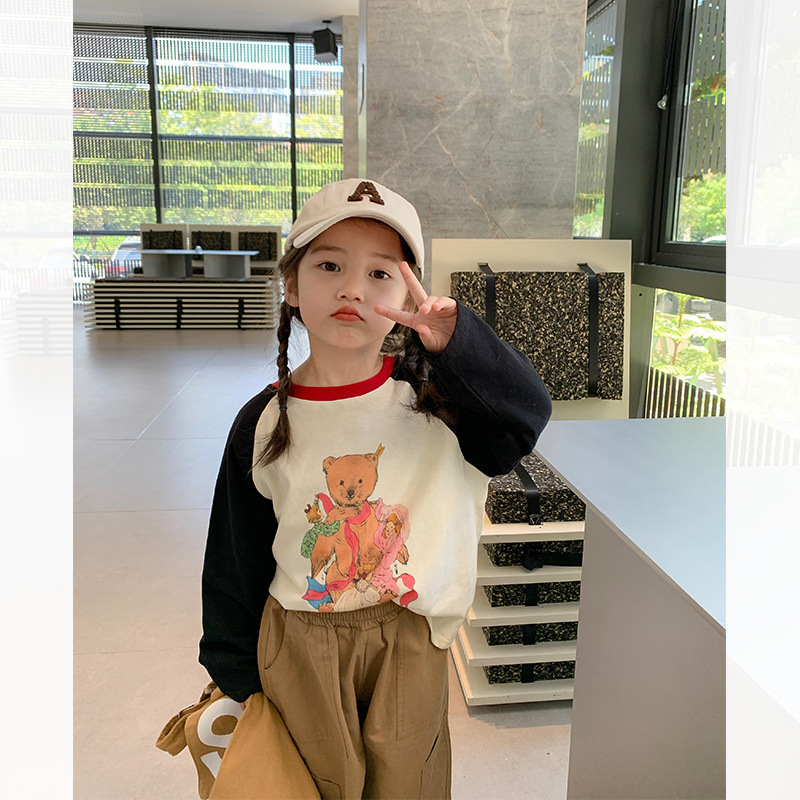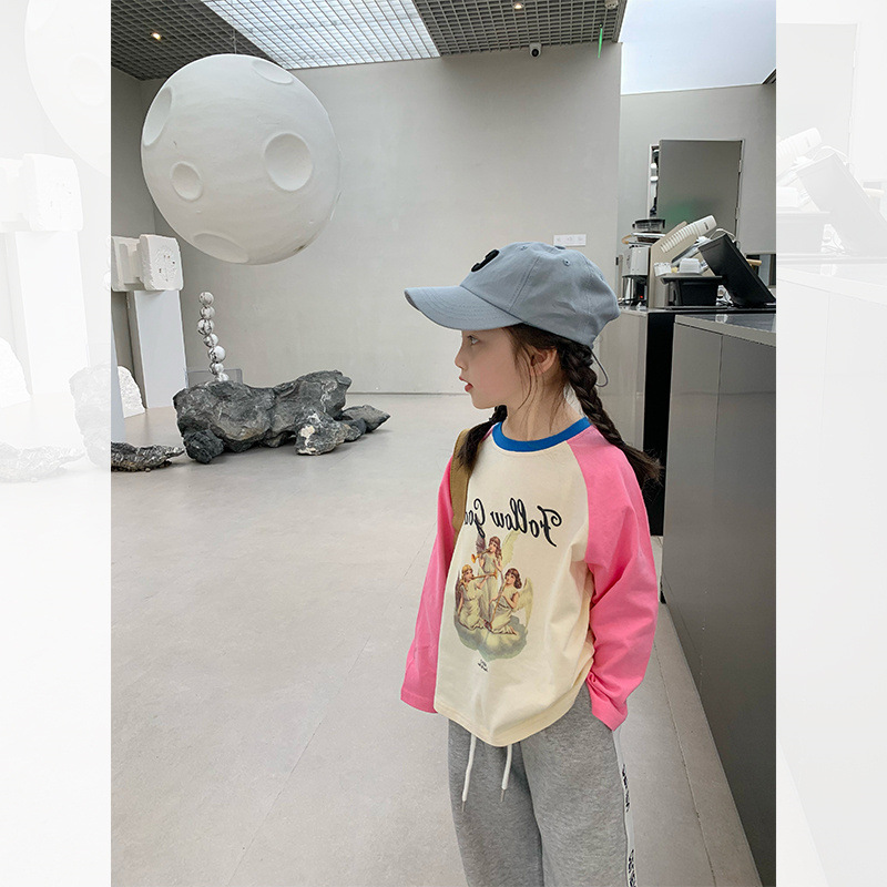소녀 한국식 귀여운 올매치 긴팔 티셔츠 2024 봄과 가을 어린이 새로운 느슨한 만화베이스 셔츠 탑스토어 가기