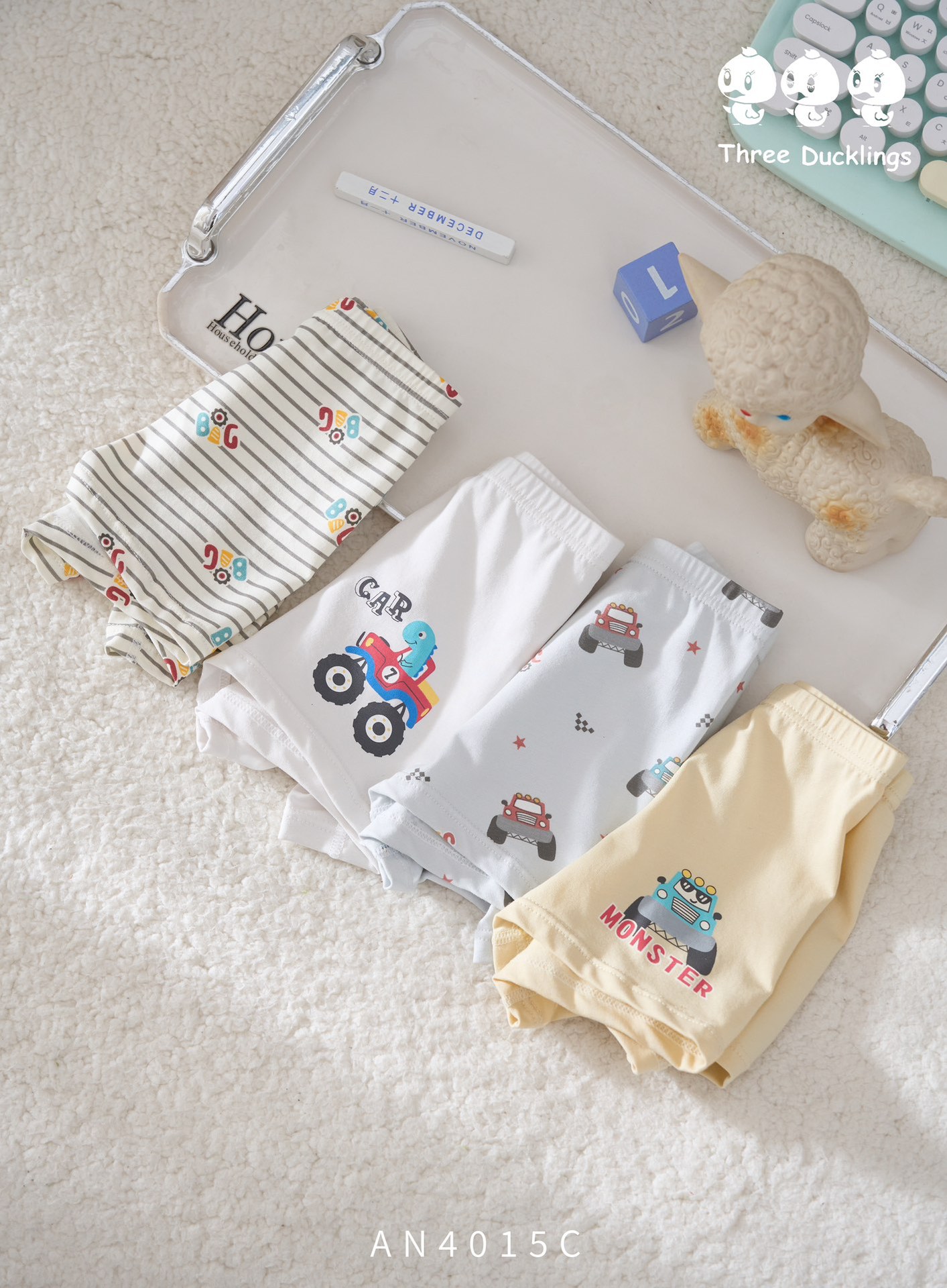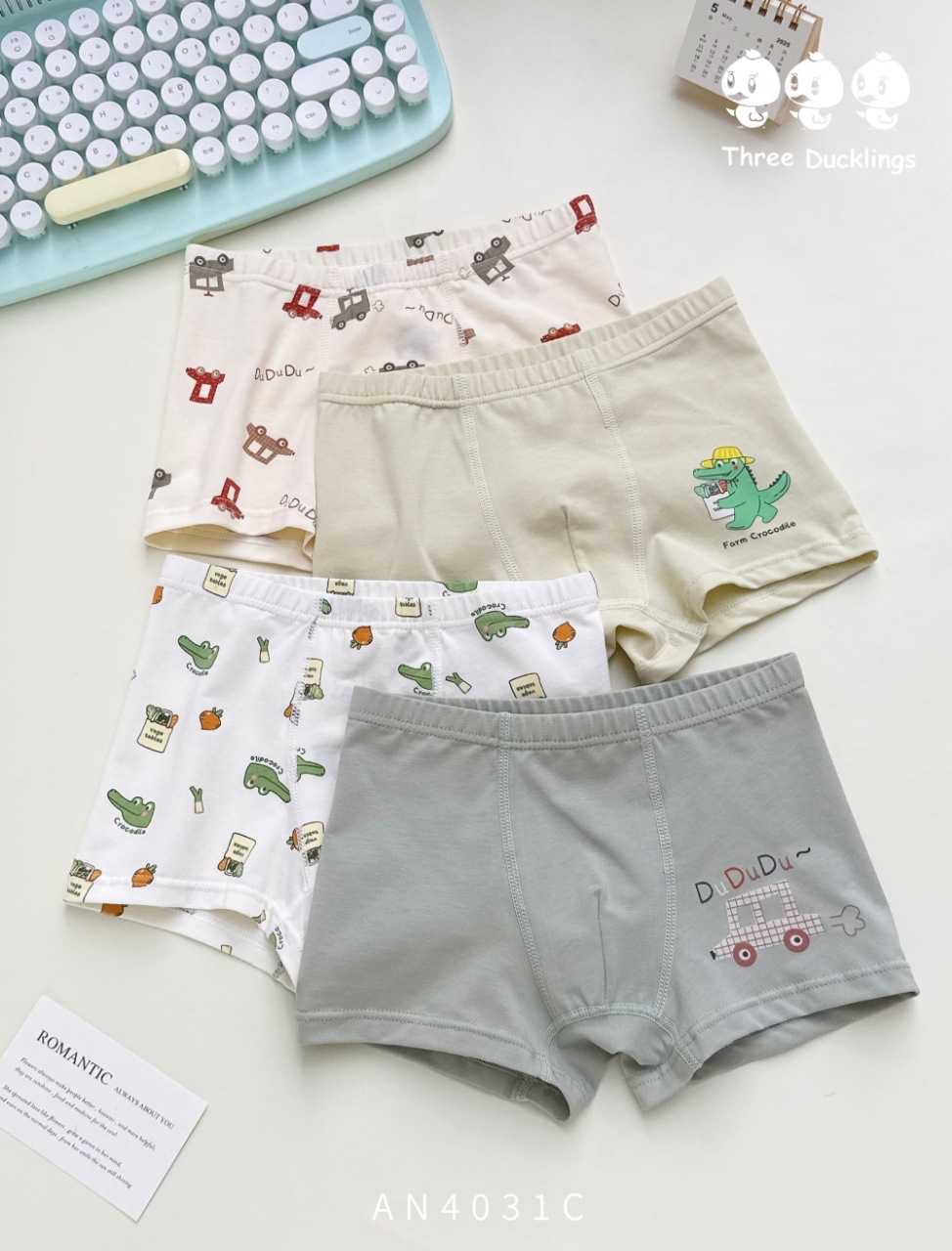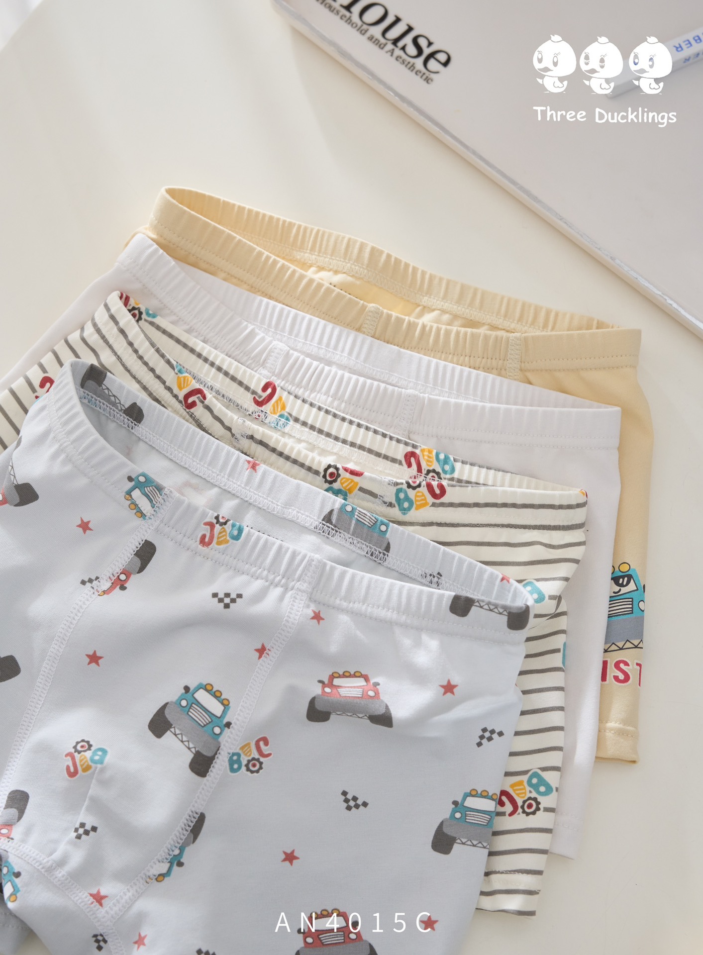 세 마리의 작은 오리 소년 속옷 어린이 순면 복서 팬티 어린 소년 복서 반바지 순면 중대형 어린이 항균