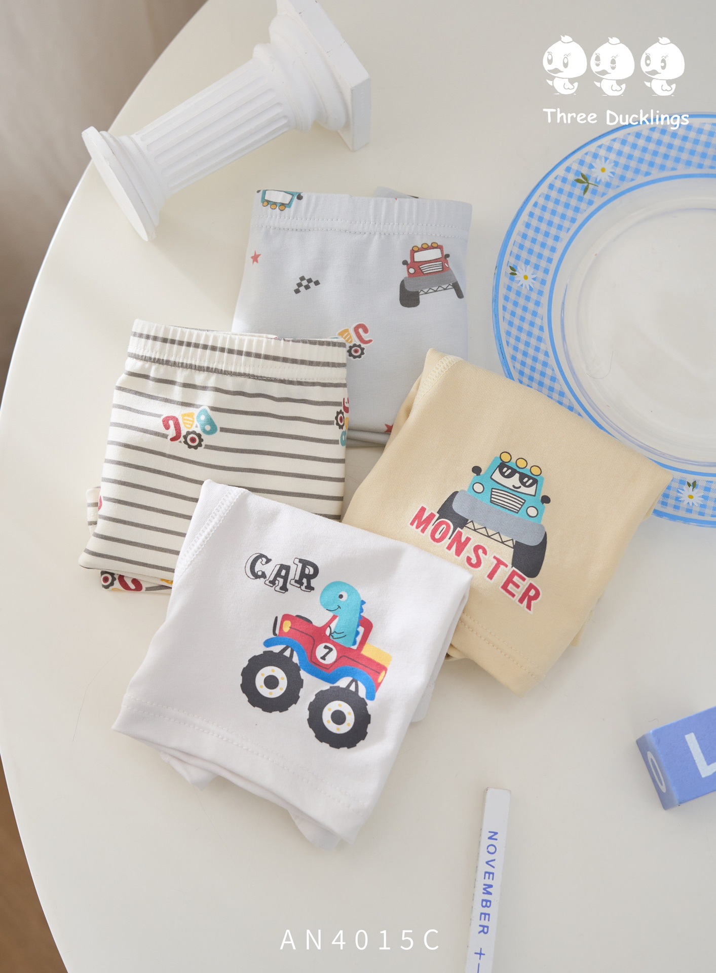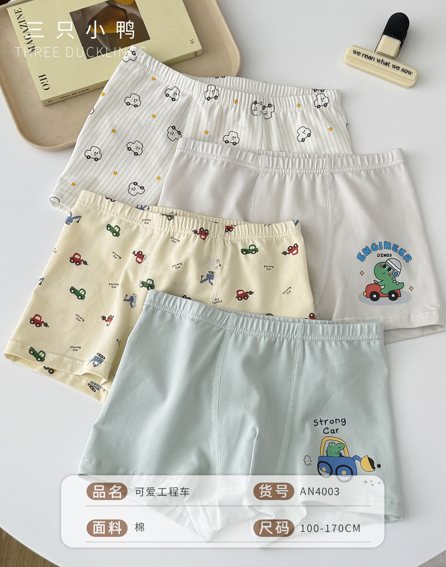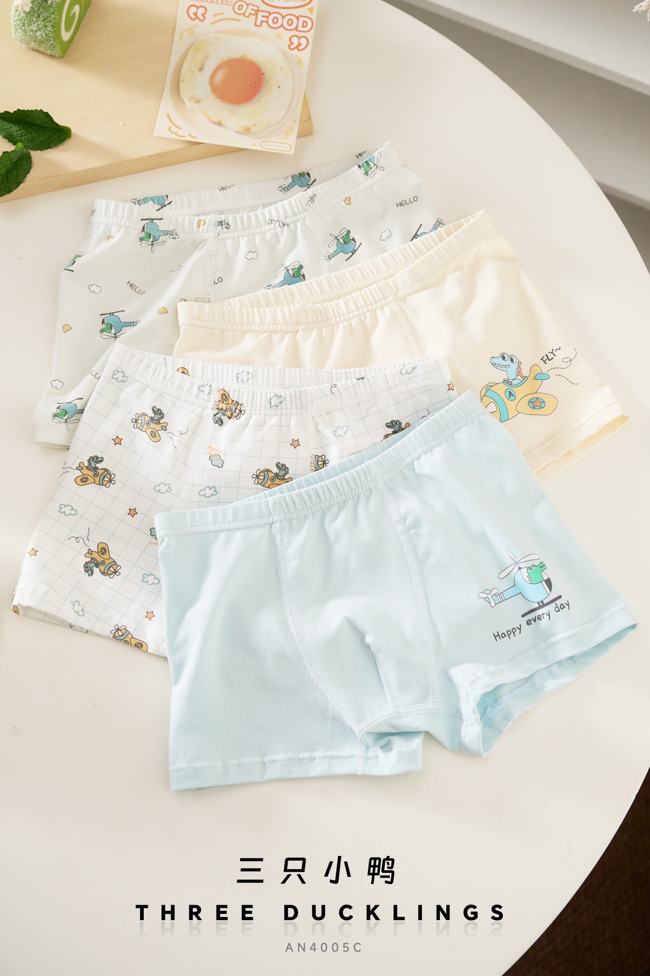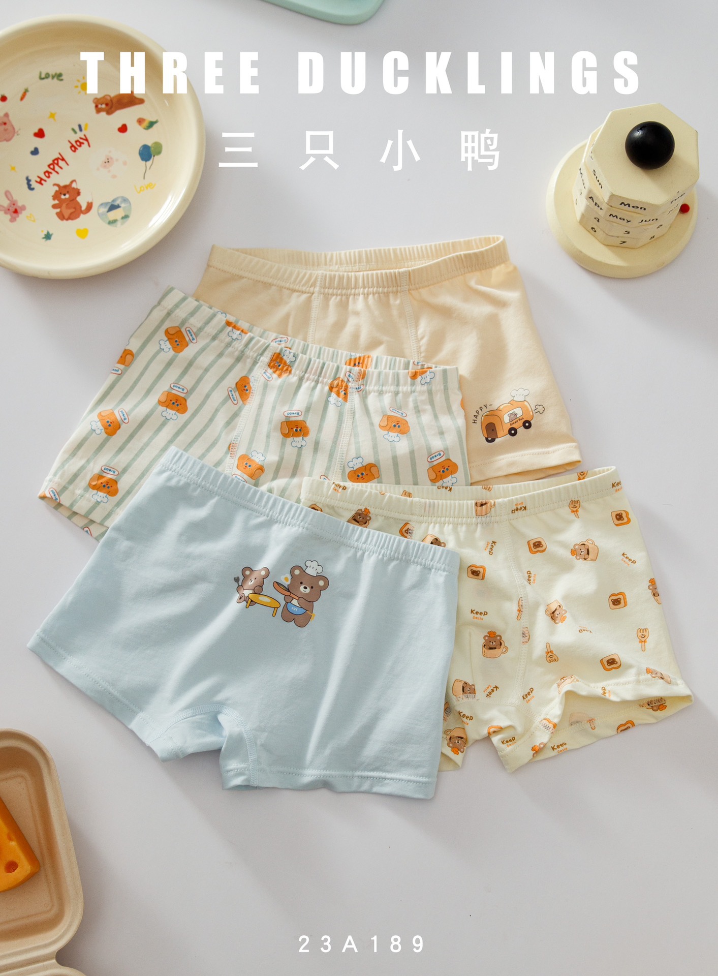 세 마리의 작은 오리 소년 속옷 어린이 순면 복서 팬티 어린 소년 복서 반바지 순면 중대형 어린이 항균