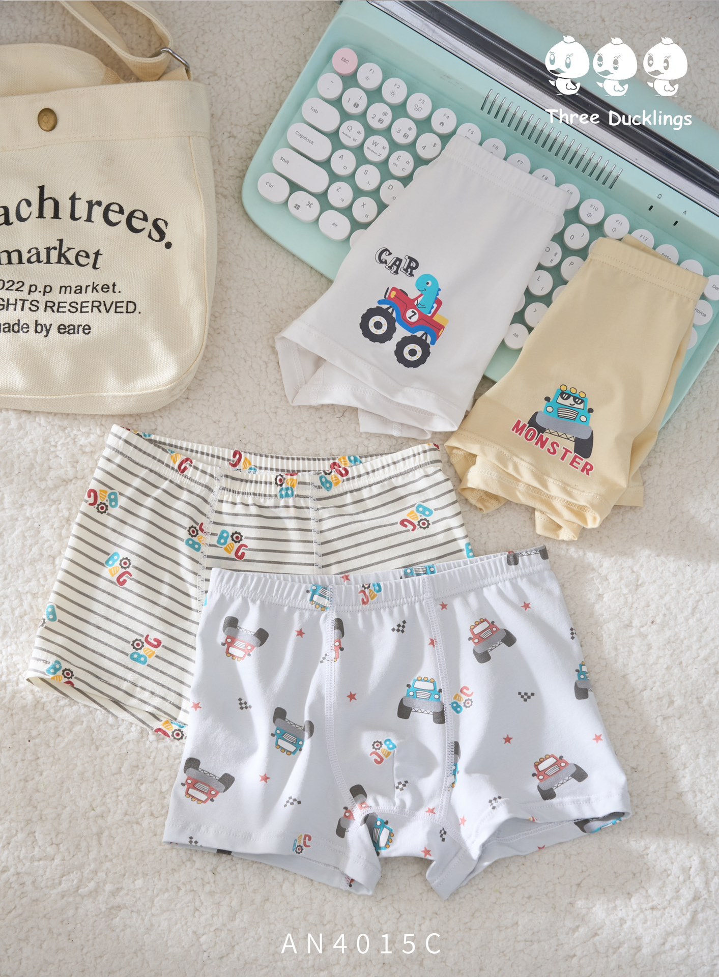 세 마리의 작은 오리 소년 속옷 어린이 순면 복서 팬티 어린 소년 복서 반바지 순면 중대형 어린이 항균스토어 가기