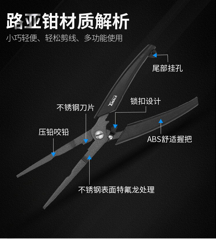 잠금 버클이 있는 테프론 녹 방지 스테인레스 스틸 피쉬 컨트롤 펜치, 실 절단 및 오픈 링 낚시 펜치, 바다 낚시 다기능 루어 펜치