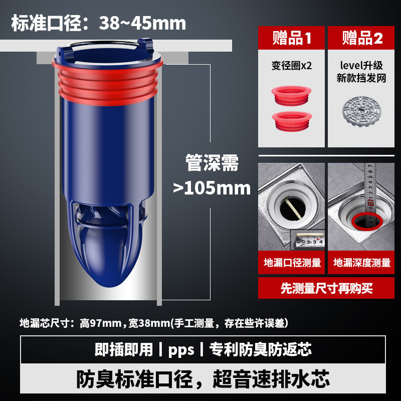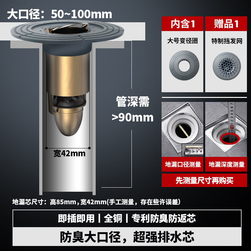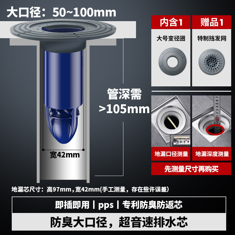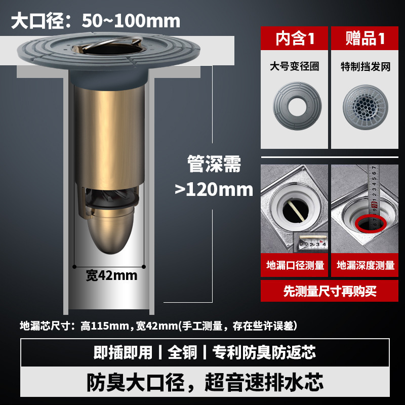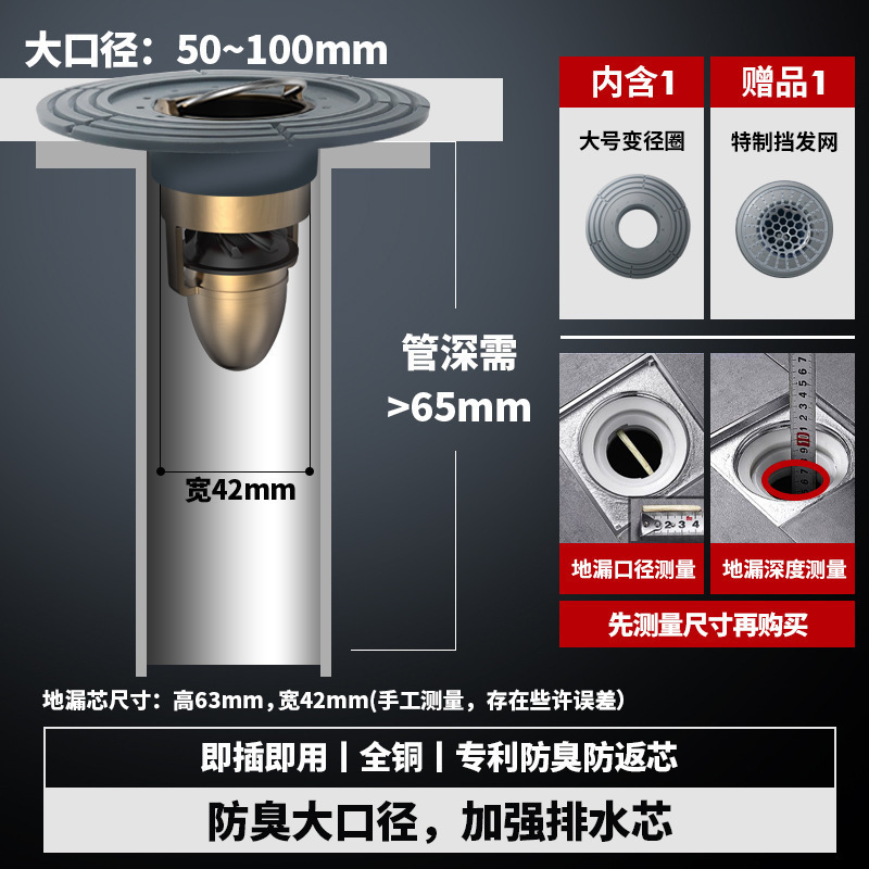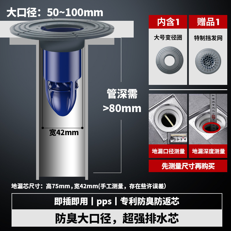 화장실 씰링 링 바닥 배수구 Wankang 바닥 배수구 코어 내심 직경 감소 큰 직경 냄새 방지 커버 하수구 탈취스토어 가기