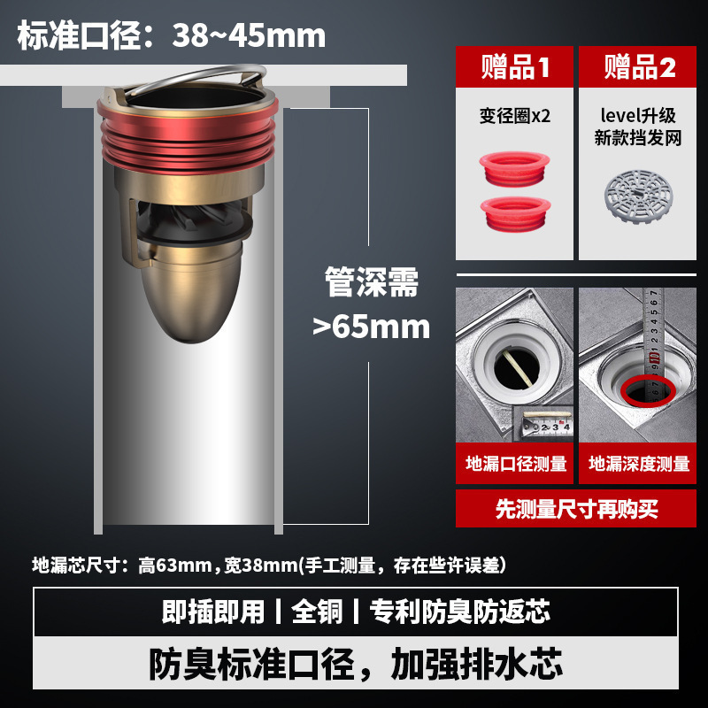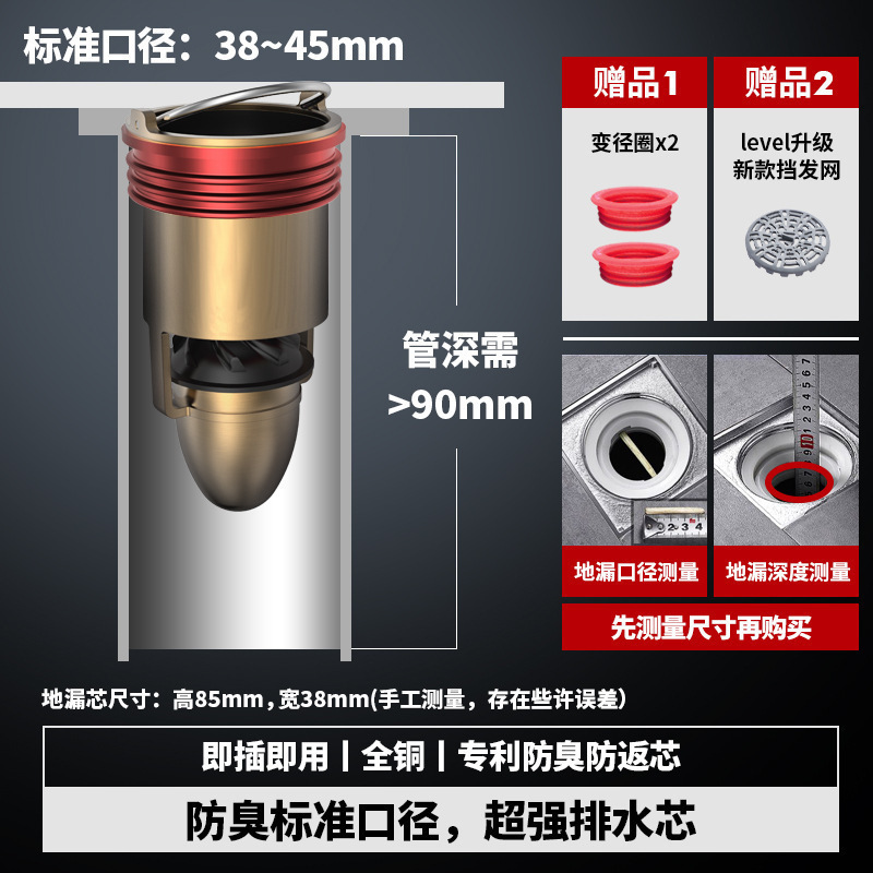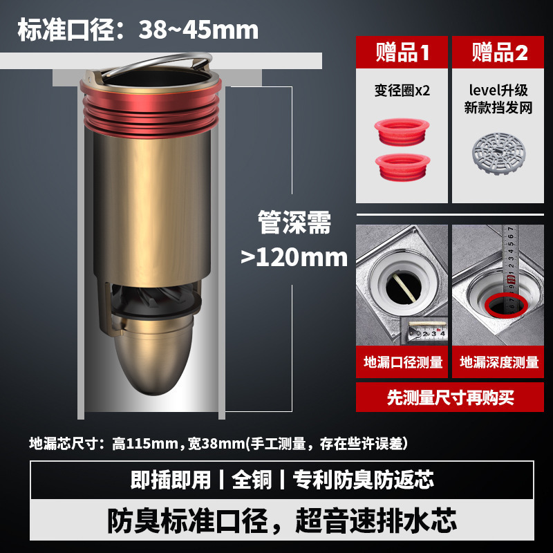 • 12] 전체 구리 자기 부상, 냄새 방지, 향상된 배수, 38-45mm 실리콘 링 직경 감소