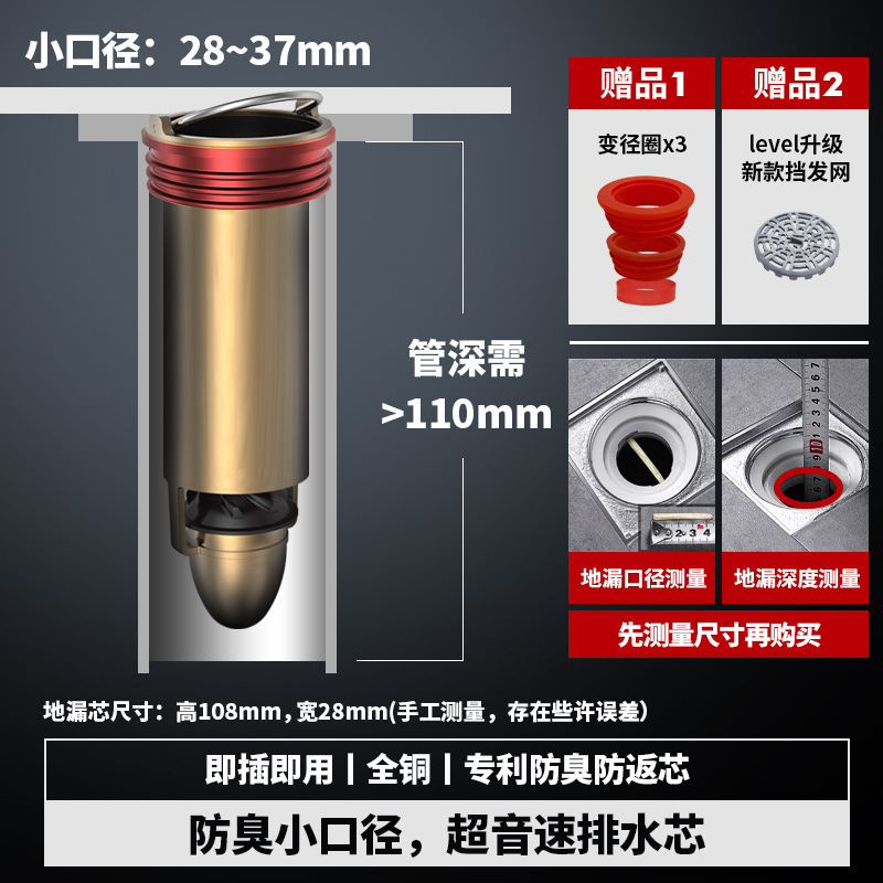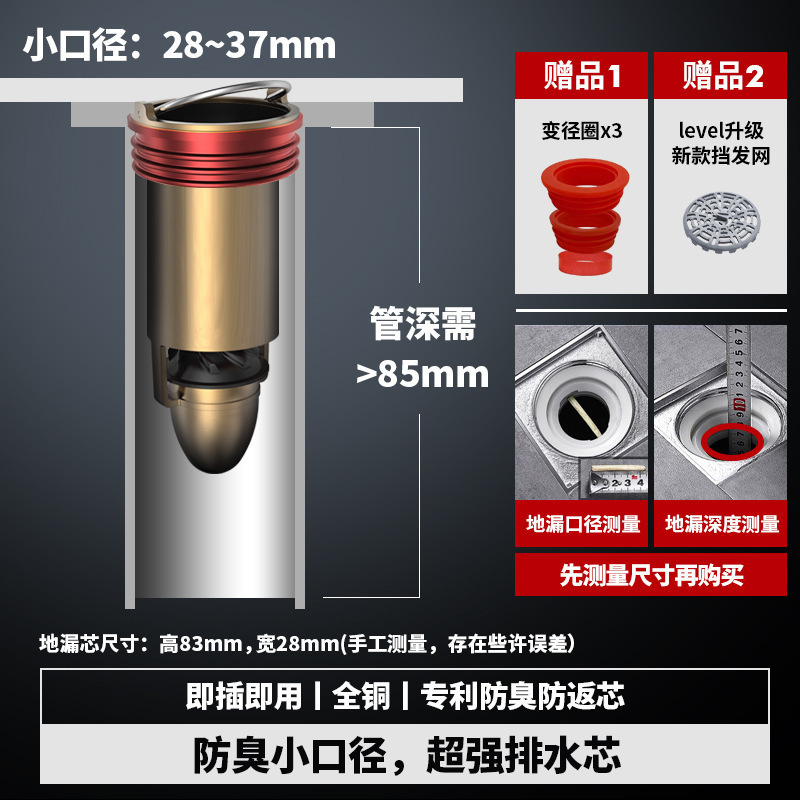 • 15] 전체 구리 자기 부상, 냄새 방지, 슈퍼 배수, 28-37mm 실리콘 링 감소 직경