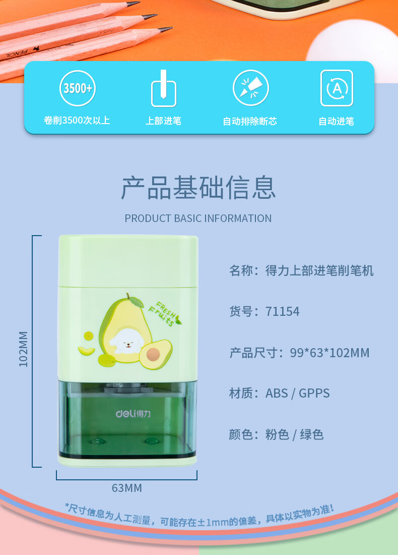 델리 연필 깎기 71154 초등학교 어린이 만화 연필 깎기 핑크/녹색 정품 연필 깎기 도매
