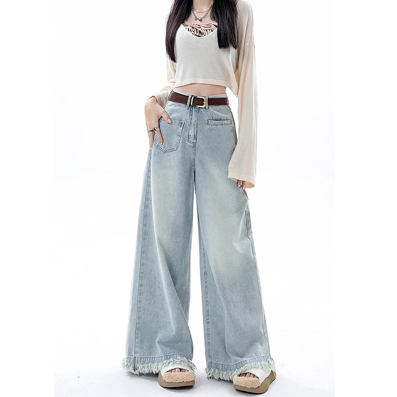 봄, 가을 여성을 위한 스트리트 레이지 스타일 로우 엣지 와이드 레그 청바지 새로운 스타일 하이 웨이스트 슬리밍 루즈한 바닥 길이 청바지 트렌디스토어 가기