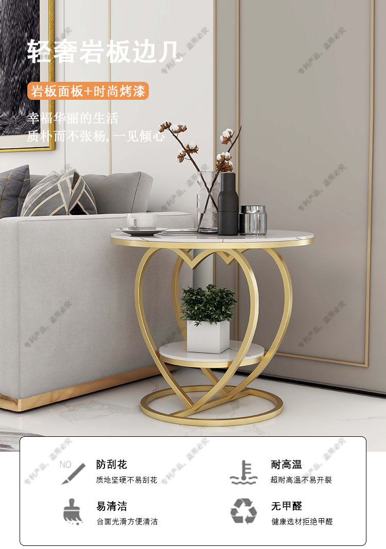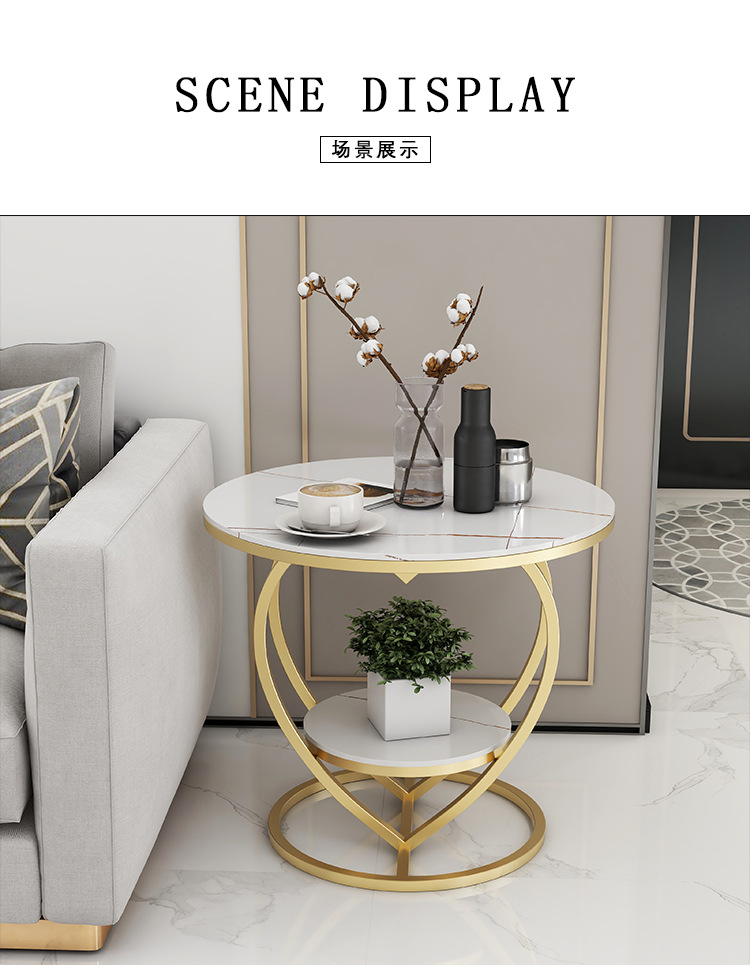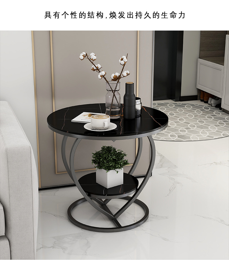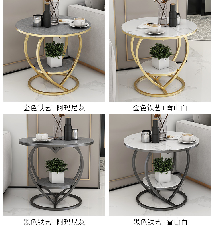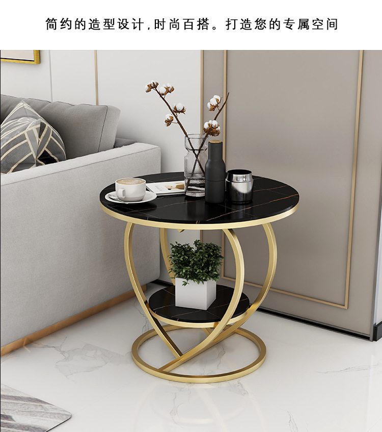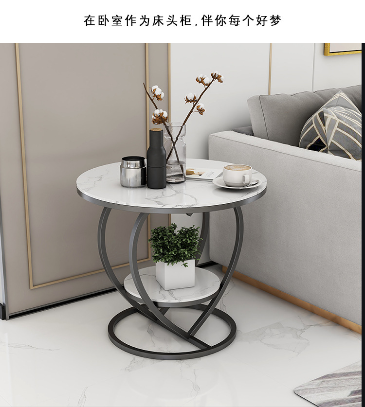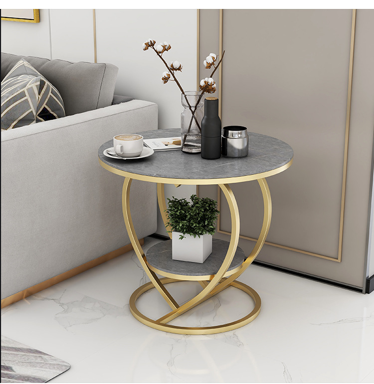 소파 사이드 테이블 더블 레이어 북유럽 작은 원형 테이블 라이트 럭셔리 간단한 슬레이트 거실 홈 러브 커피 테이블 침대 옆 작은 테이블