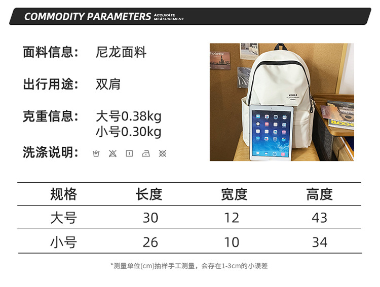 여대생을위한 Ins 스타일 스쿨백 간단한 올 매치 사이즈 배낭 여성의 새로운 유행 한국 스타일 중학교 배낭스토어 가기