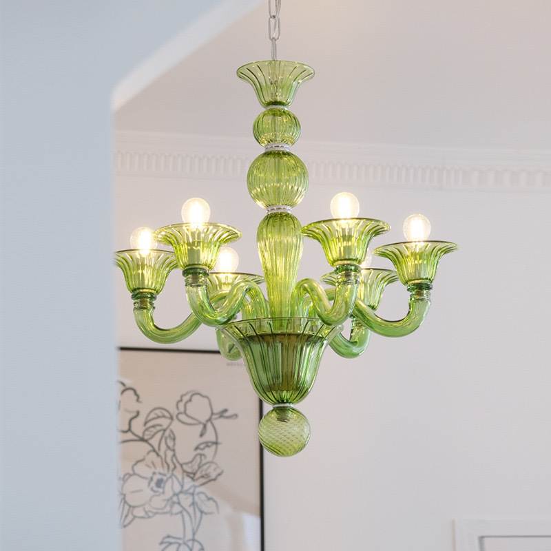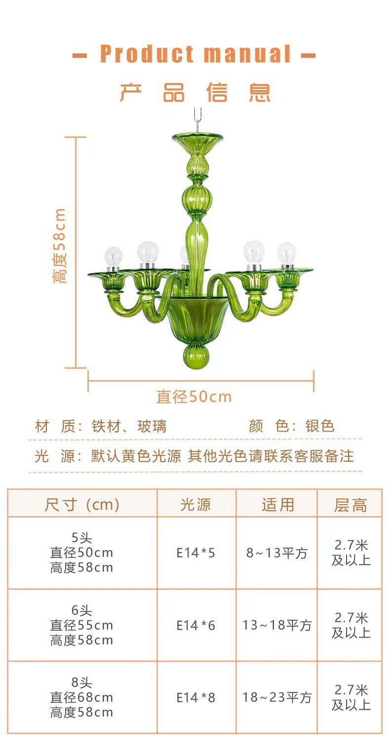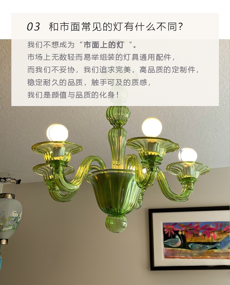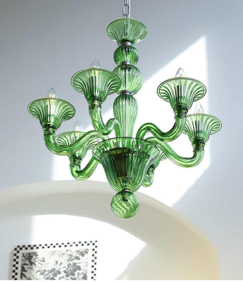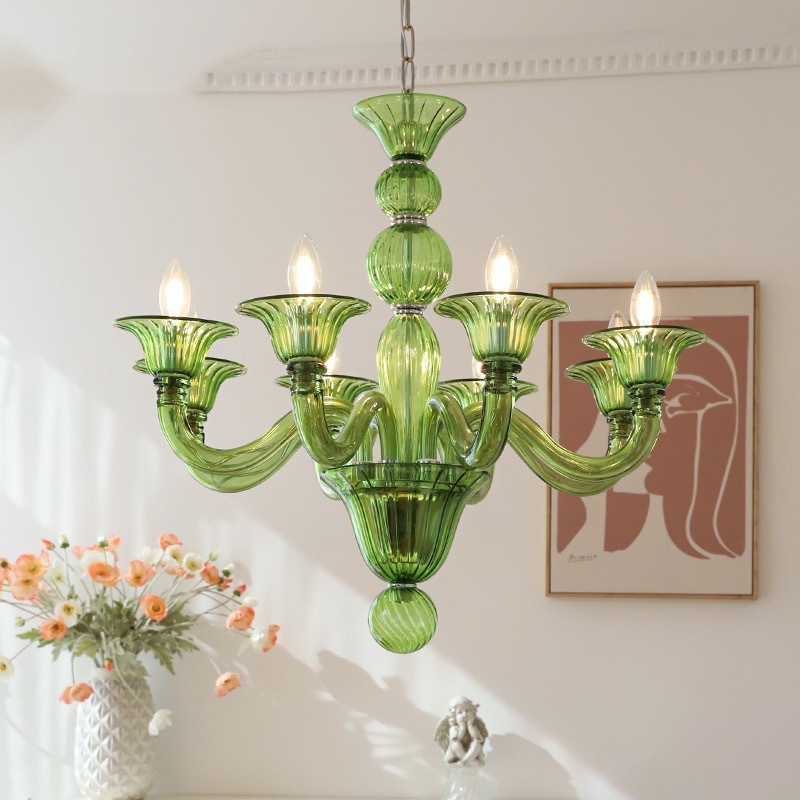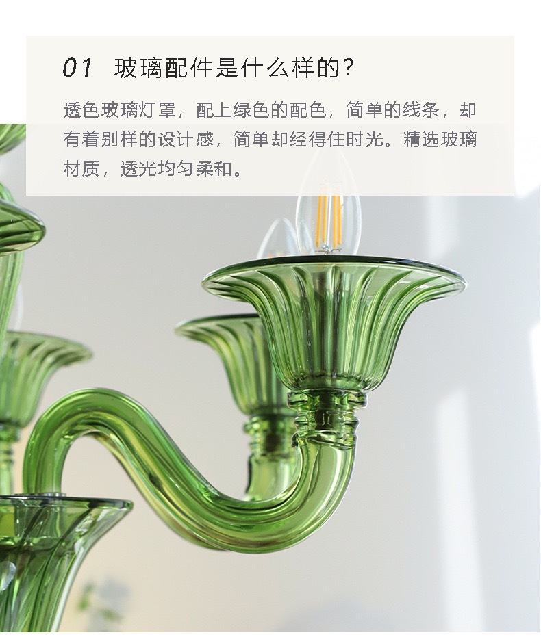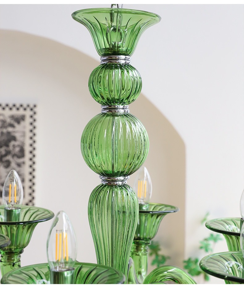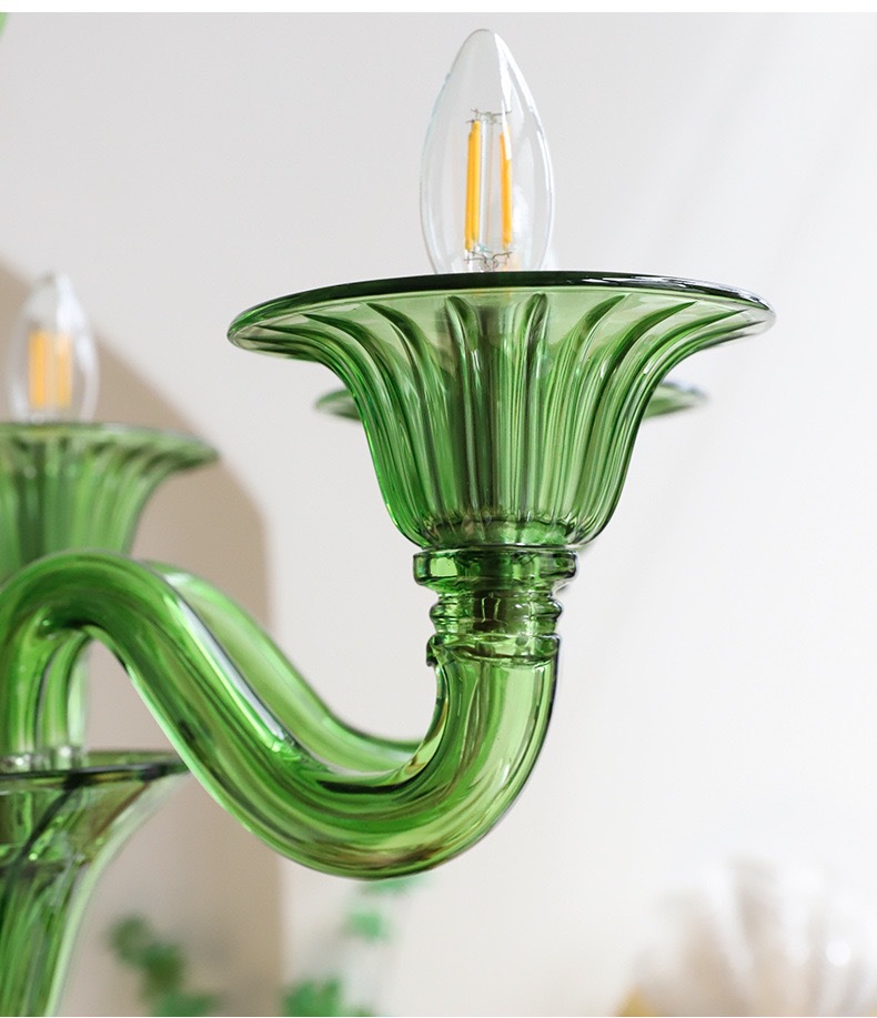 法式优雅绿色玻璃蜡烛吊灯软装复古美式设计师复古客厅卧室餐厅灯