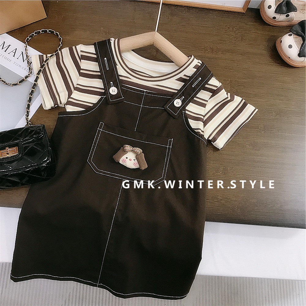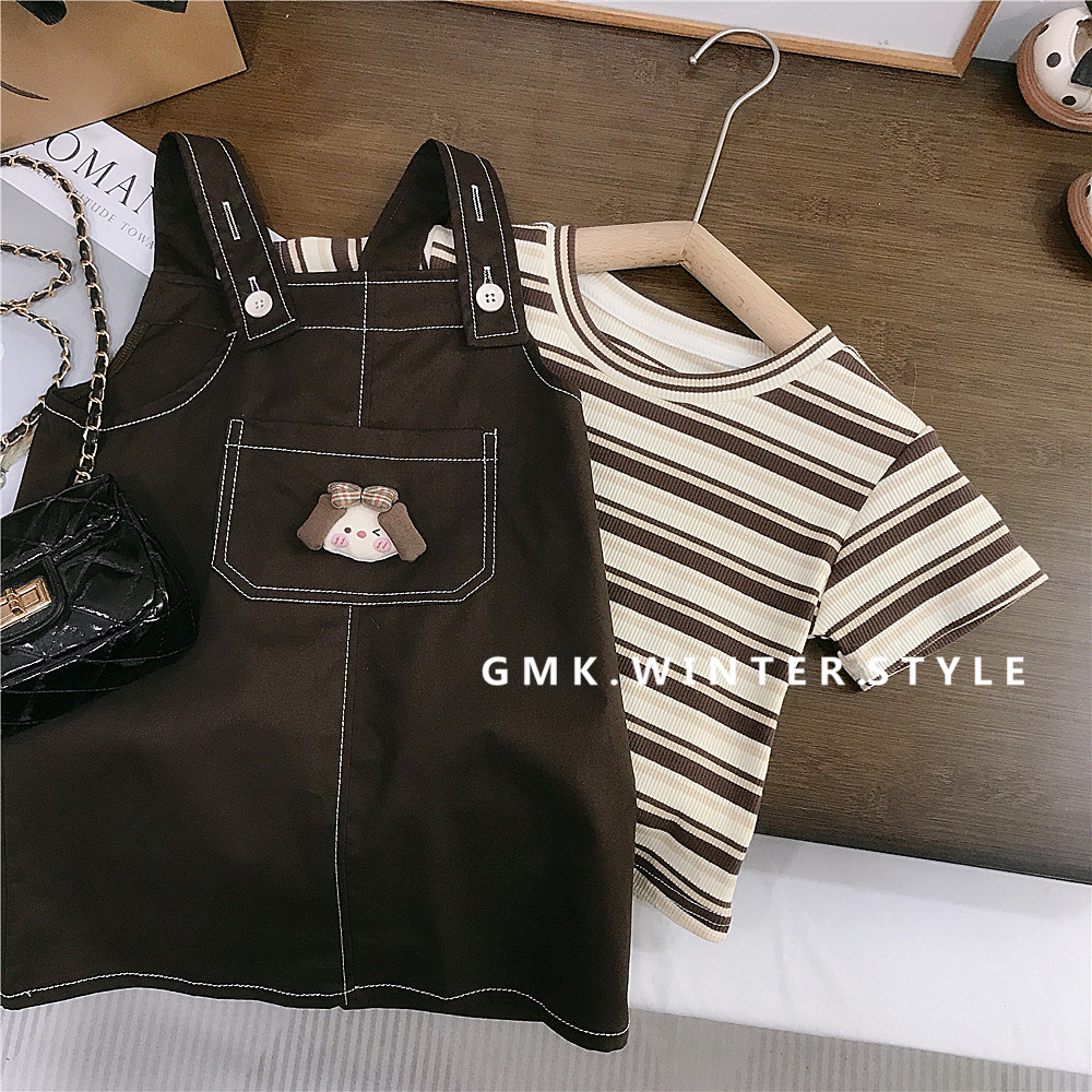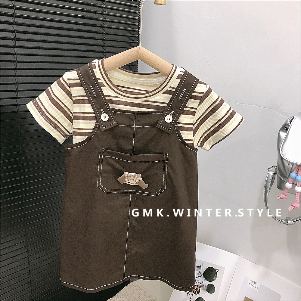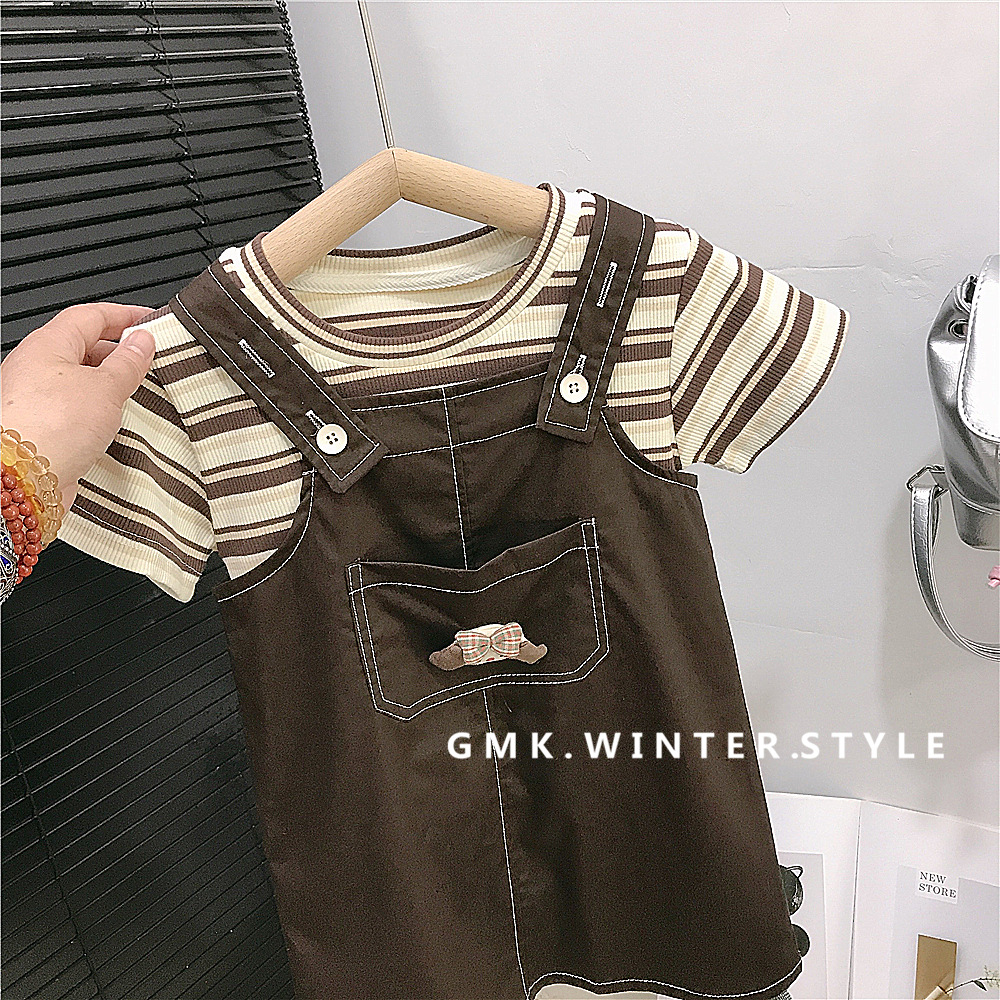 소녀 서스펜더 스커트 세트 여름 서양식 어린이 소녀 슬링 스커트 여름 3 아기 반팔 티셔츠 투피스 세트스토어 가기