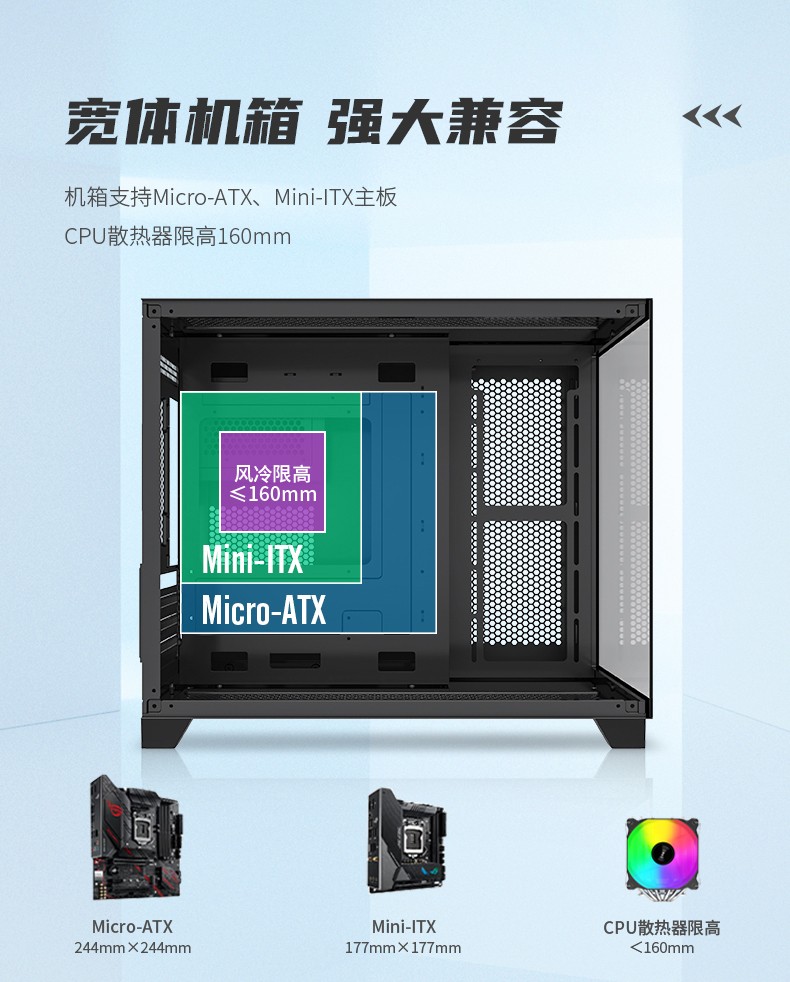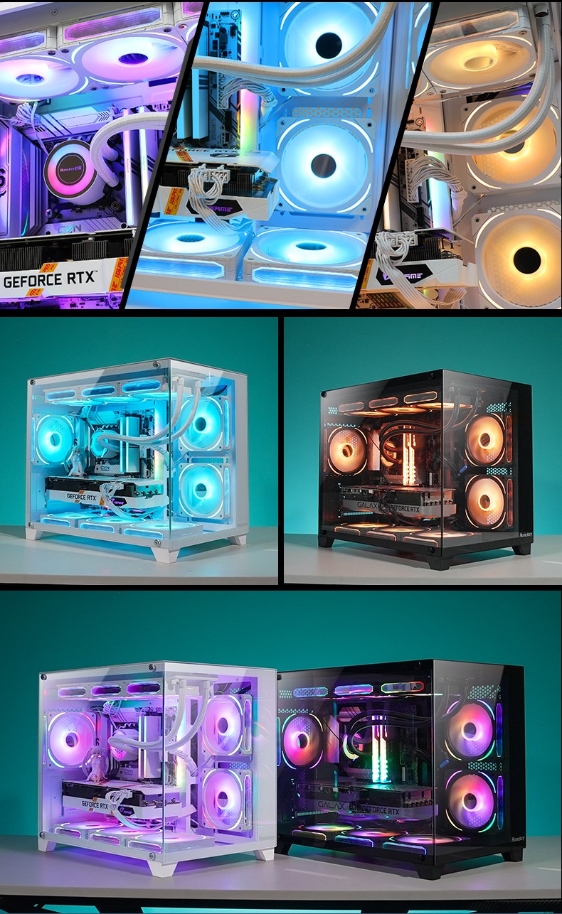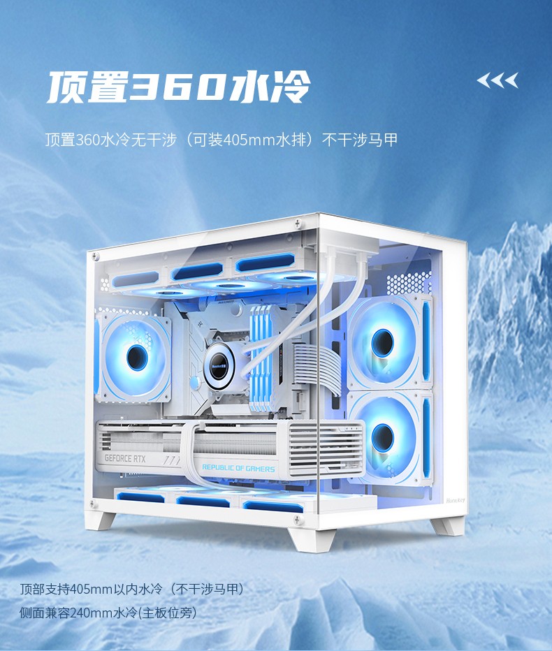 Hangjia S960 눈보라 X 파노라마 판 바다 전망 방 데스크탑 컴퓨터 섀시 블랙/화이트 섀시 수직
