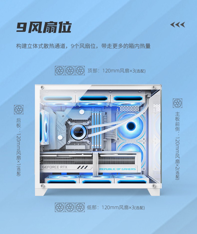 Hangjia S960 눈보라 X 파노라마 판 바다 전망 방 데스크탑 컴퓨터 섀시 블랙/화이트 섀시 수직스토어 가기