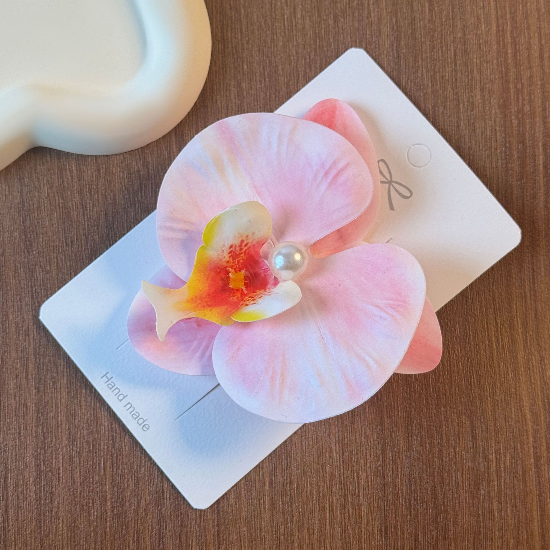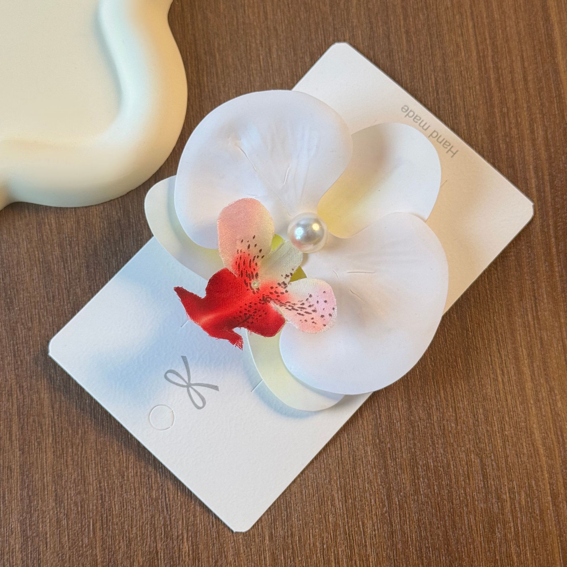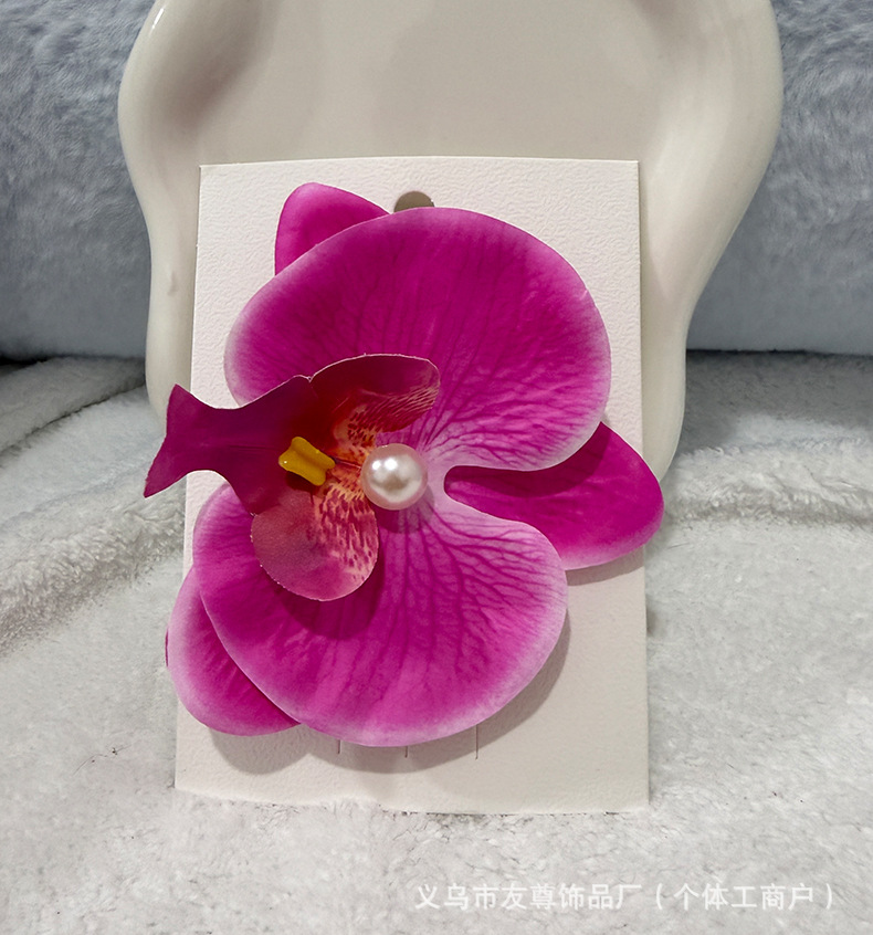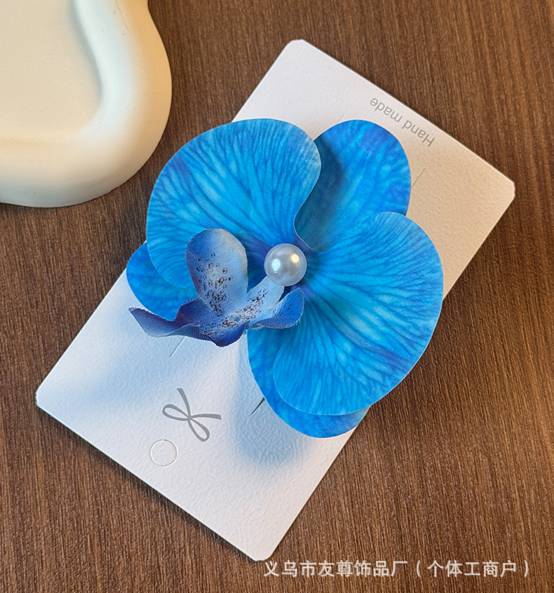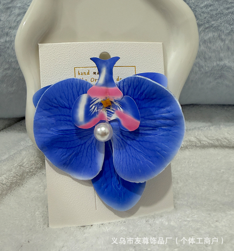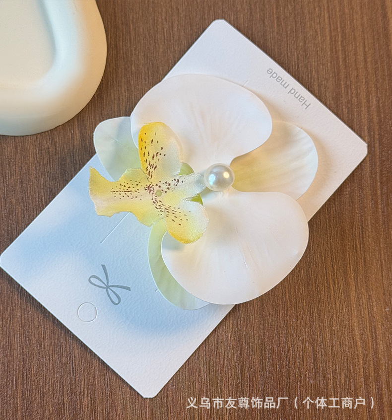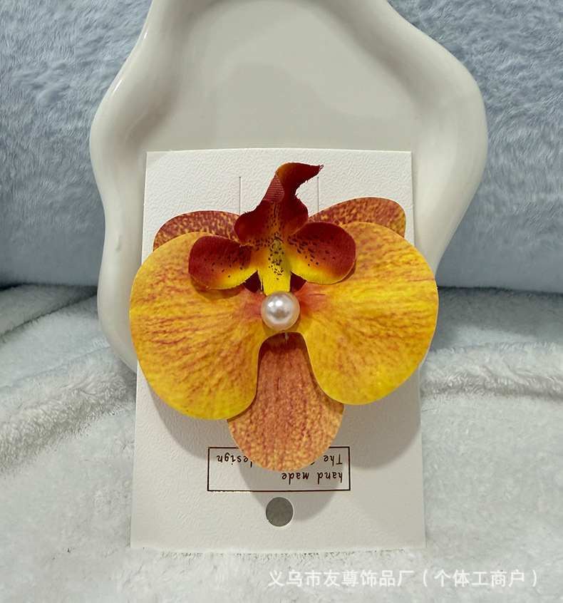 새로운 스타일의 난초꽃 머리핀, 고급스러운 디자인의 집게핀, 분위기 있는 휴가 사진 촬영용 덕빌핀, 헤어 액세서리, 해외 직구 헤어 장식스토어 가기
