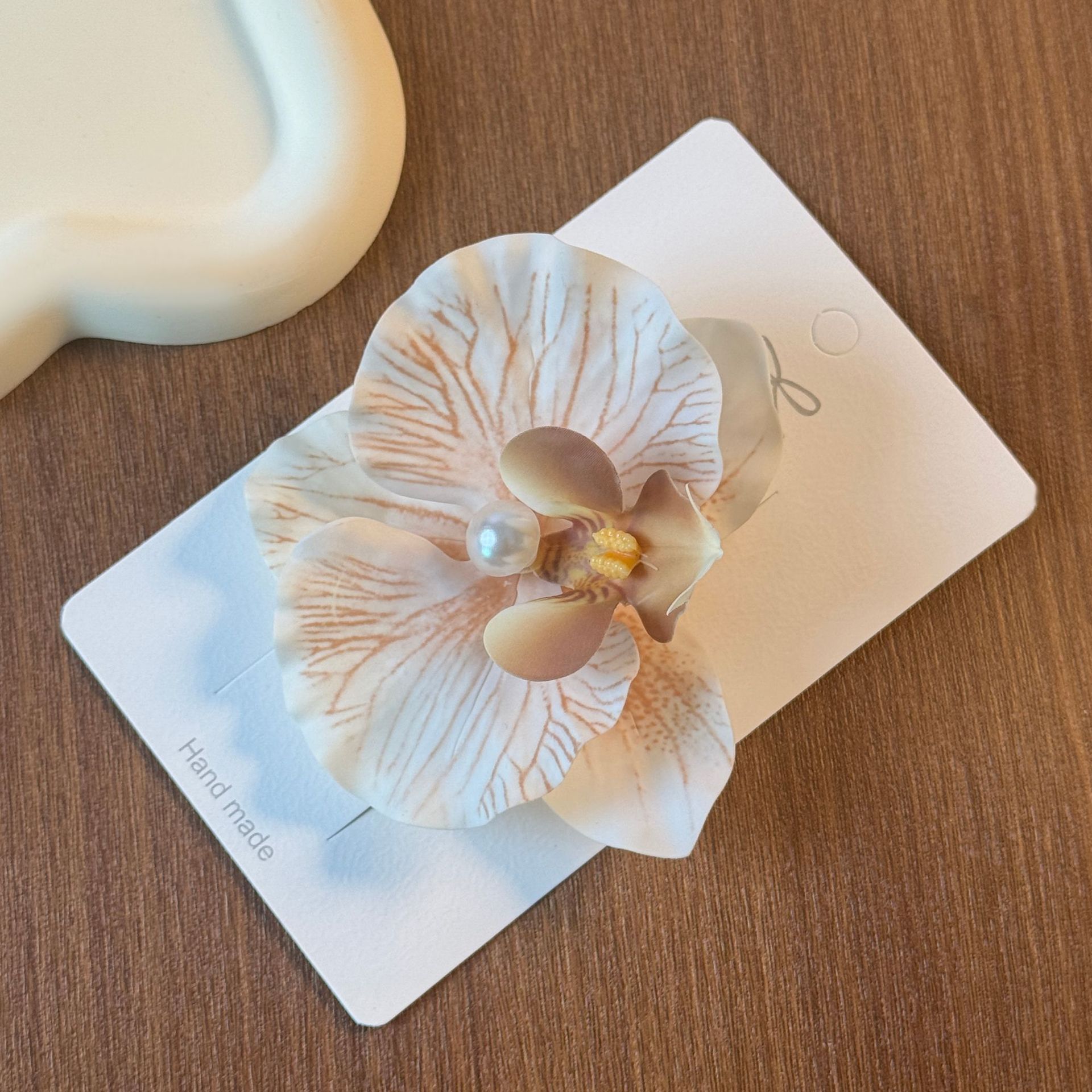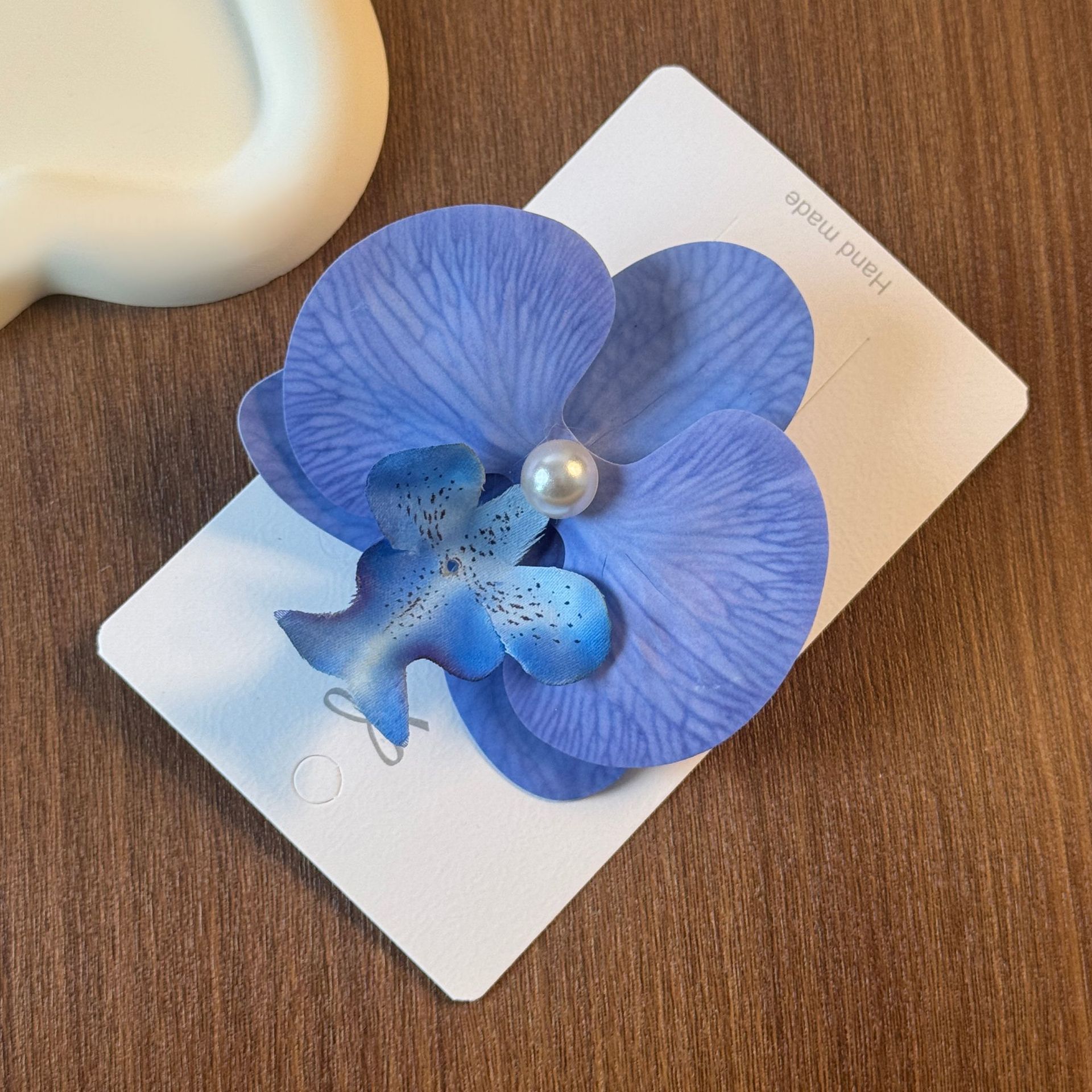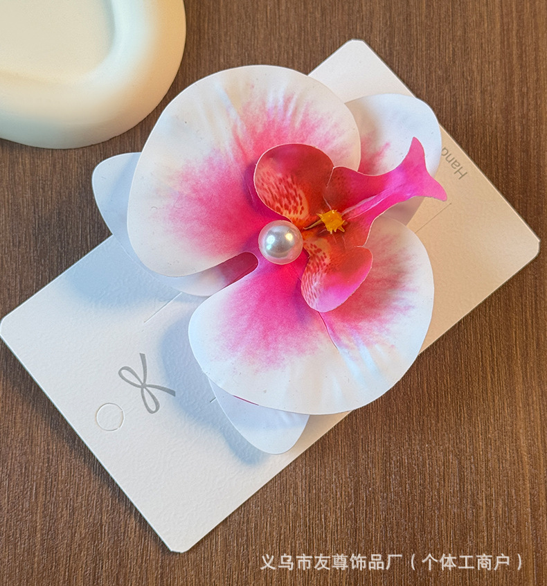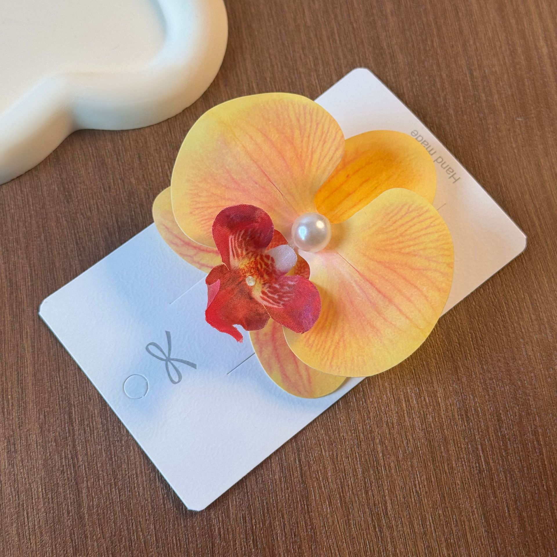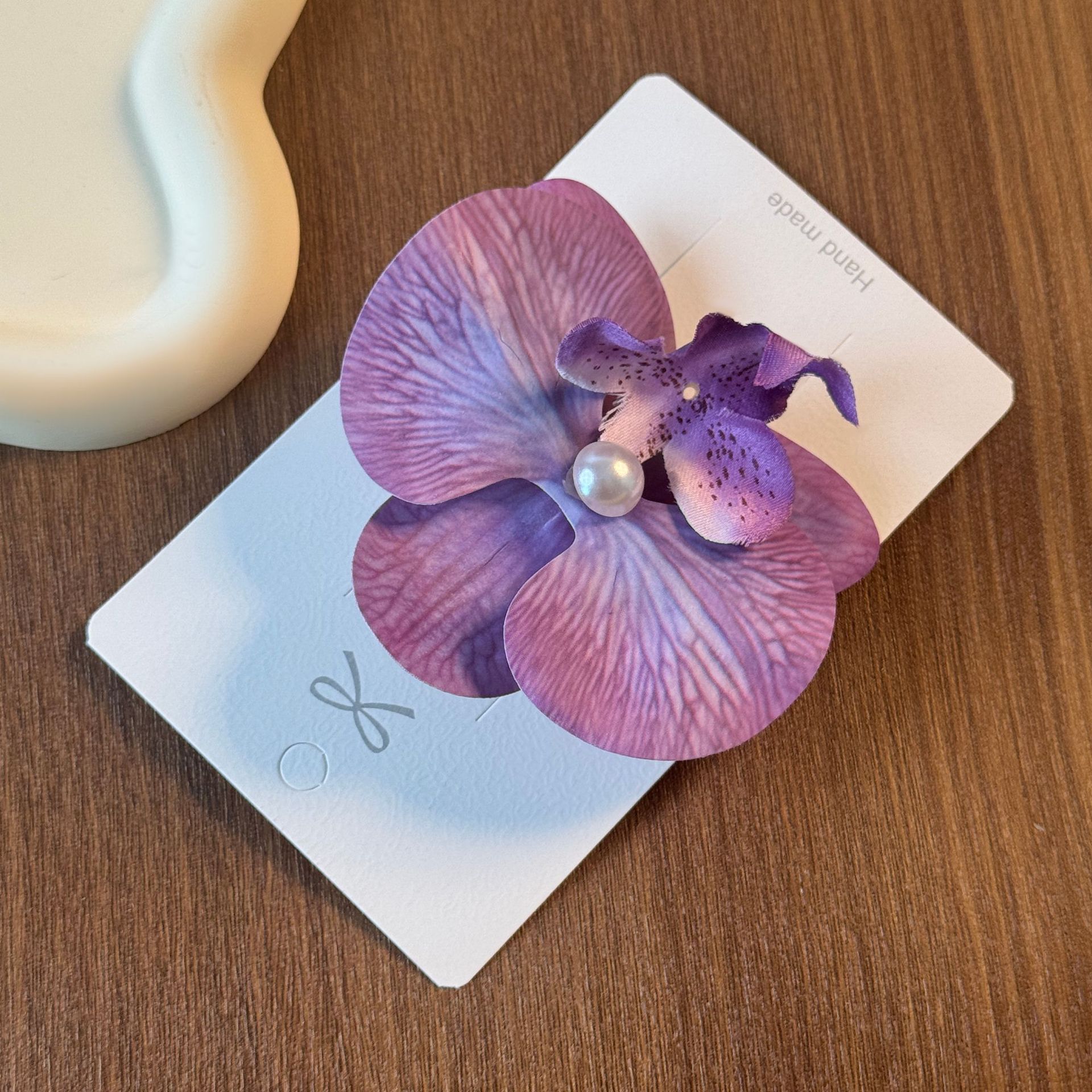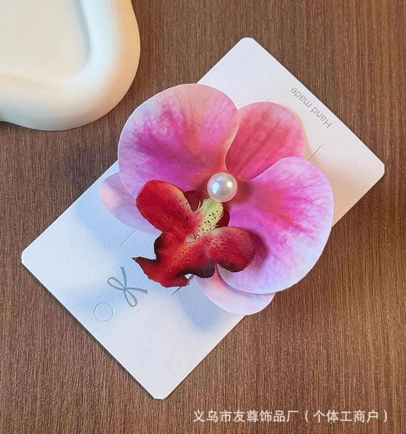 새로운 스타일의 난초꽃 머리핀, 고급스러운 디자인의 집게핀, 분위기 있는 휴가 사진 촬영용 덕빌핀, 헤어 액세서리, 해외 직구 헤어 장식스토어 가기
