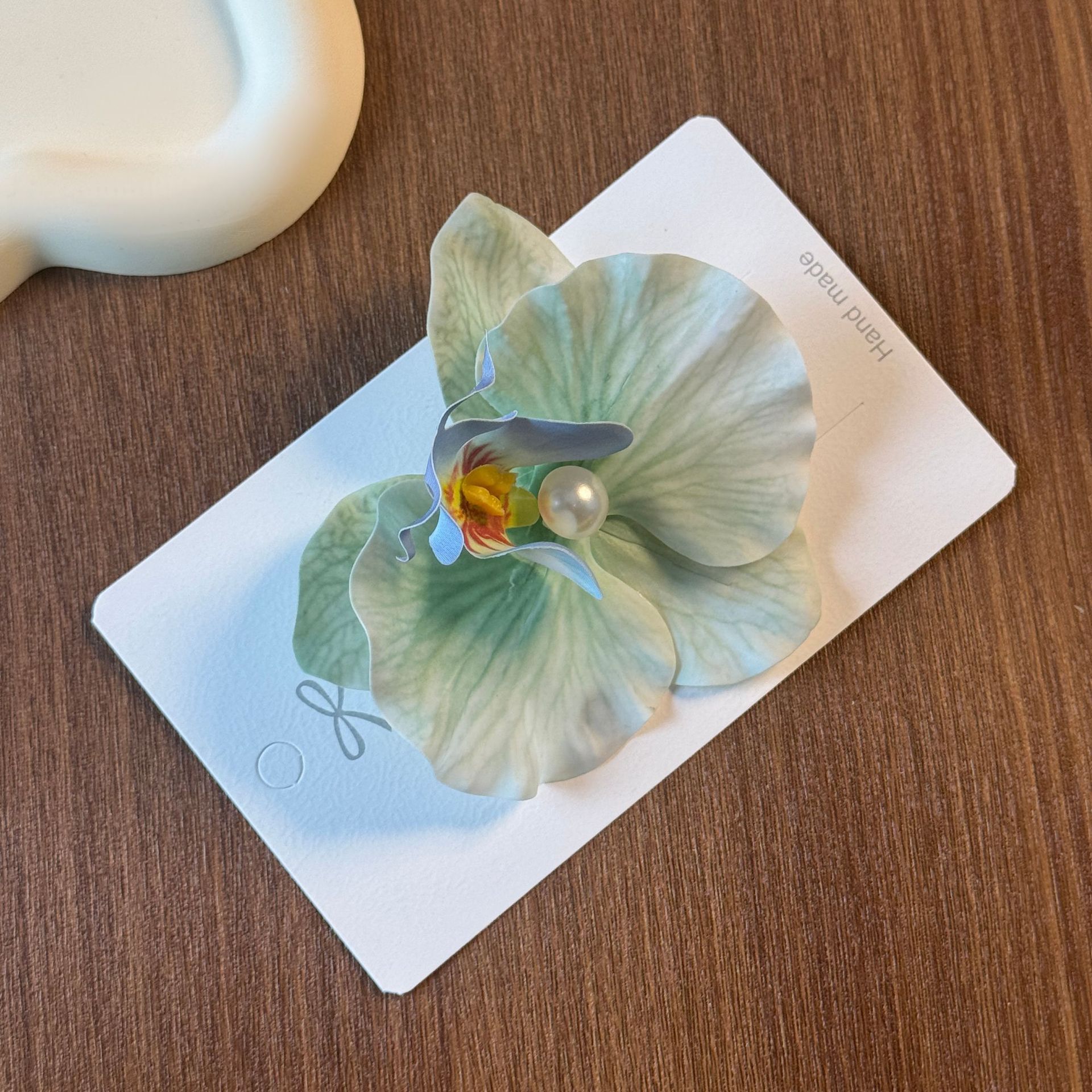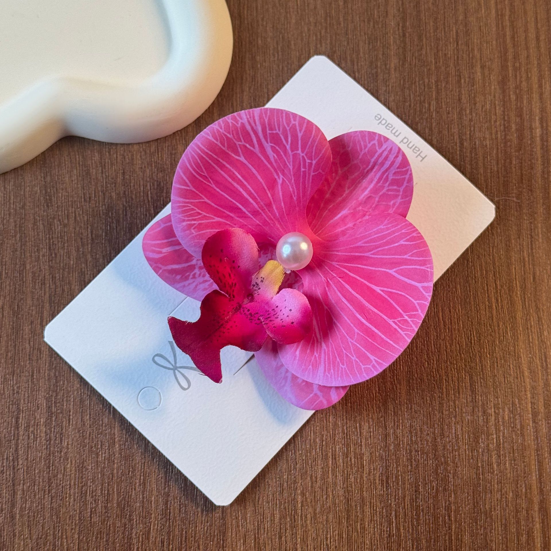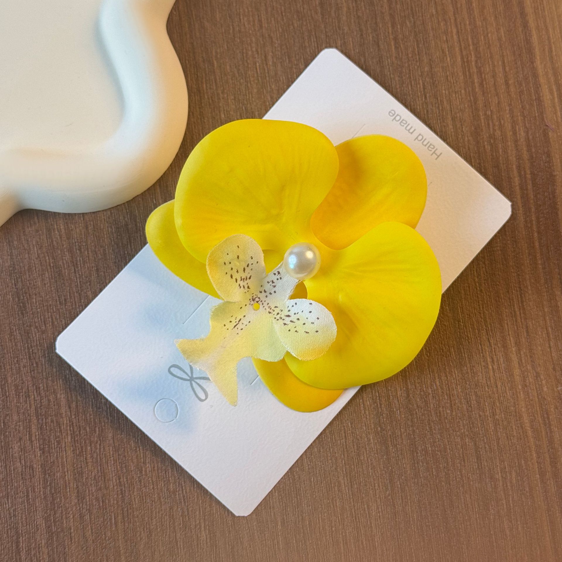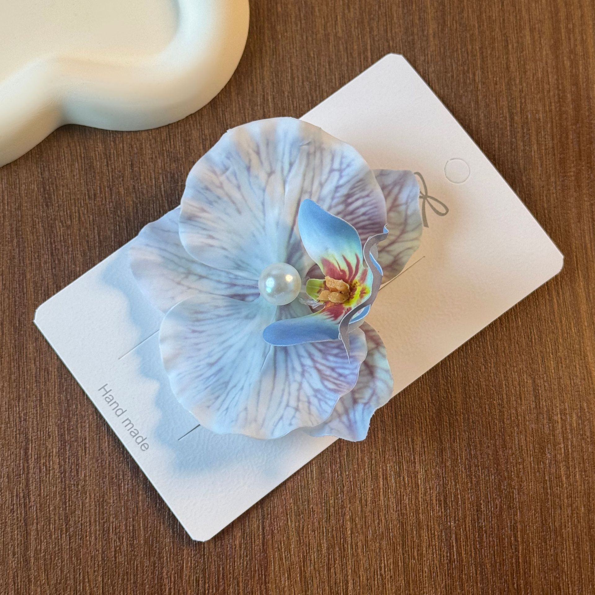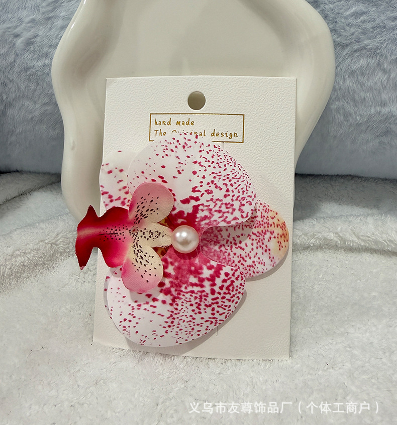 새로운 스타일의 난초꽃 머리핀, 고급스러운 디자인의 집게핀, 분위기 있는 휴가 사진 촬영용 덕빌핀, 헤어 액세서리, 해외 직구 헤어 장식스토어 가기
