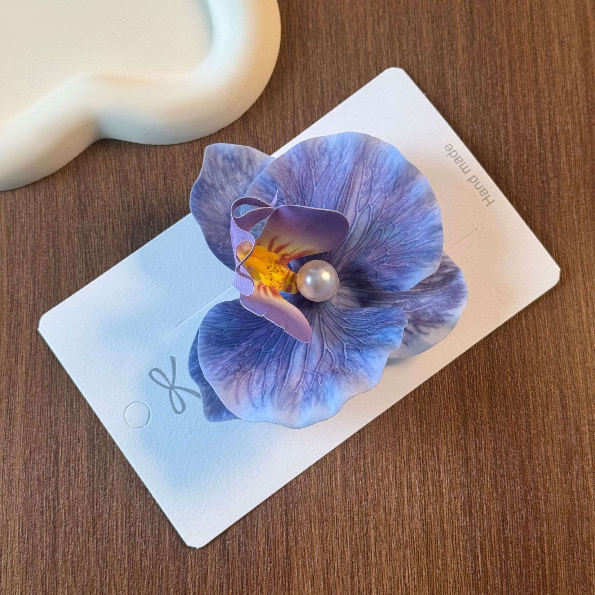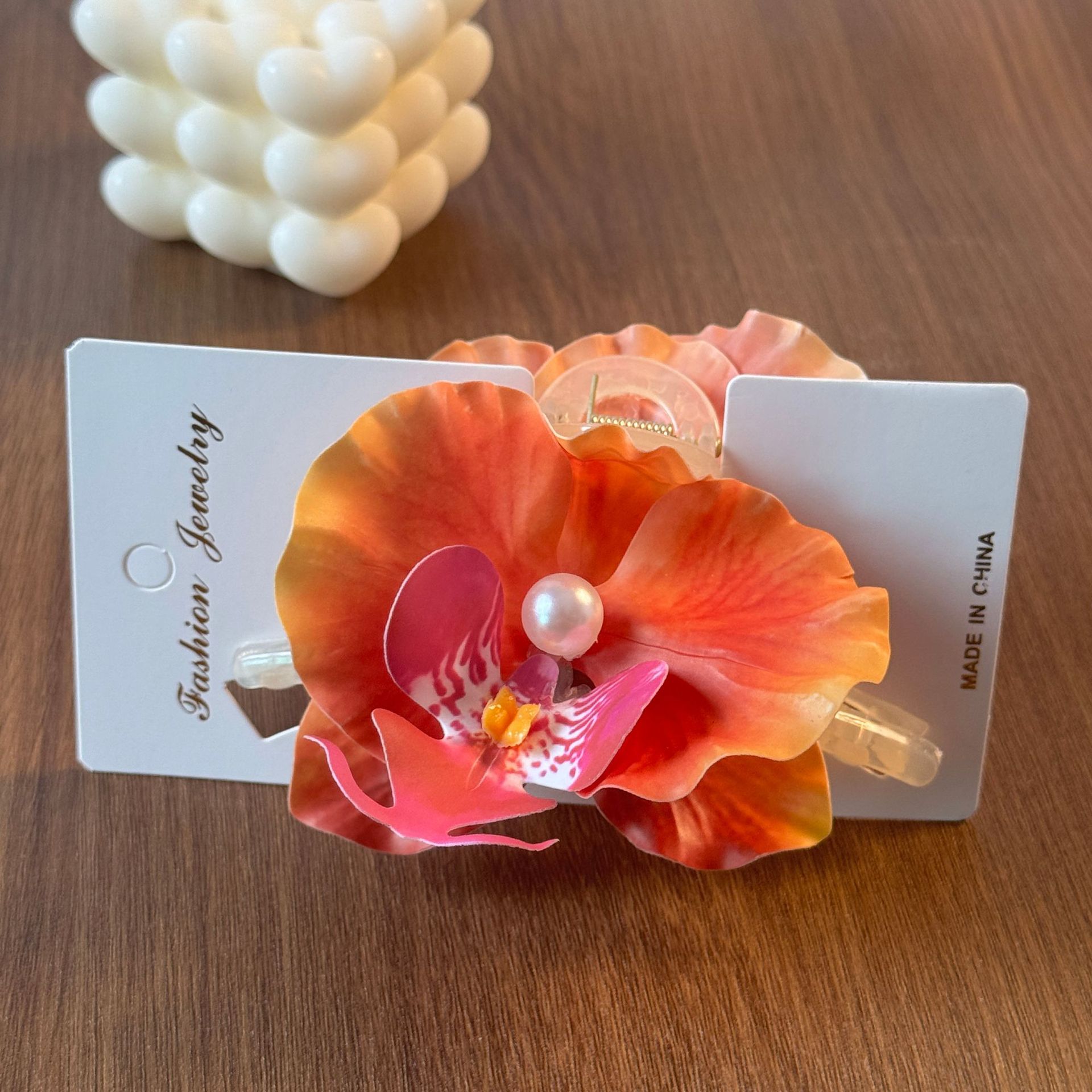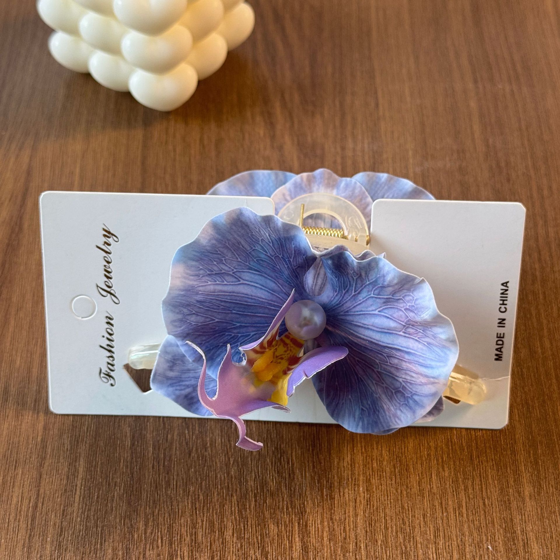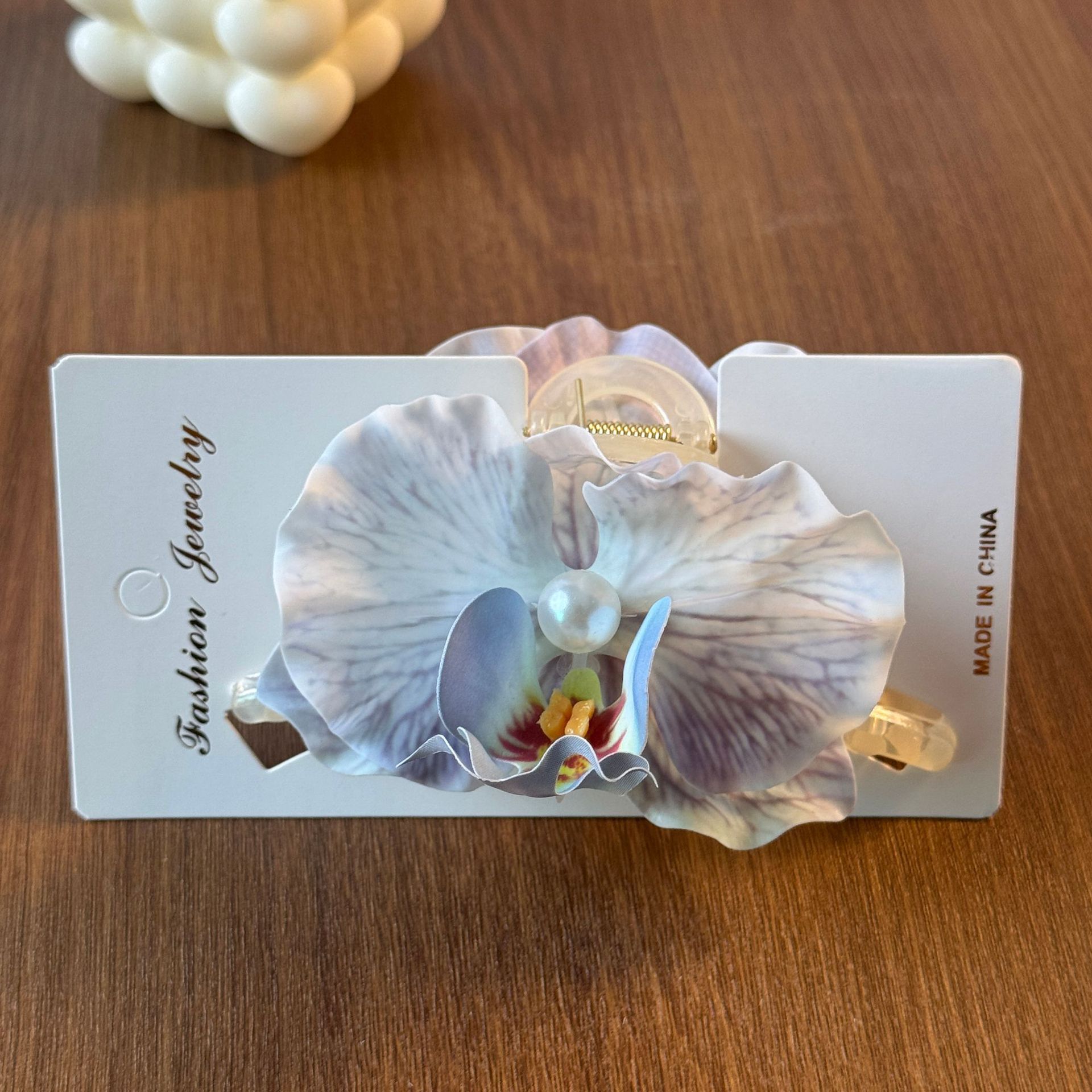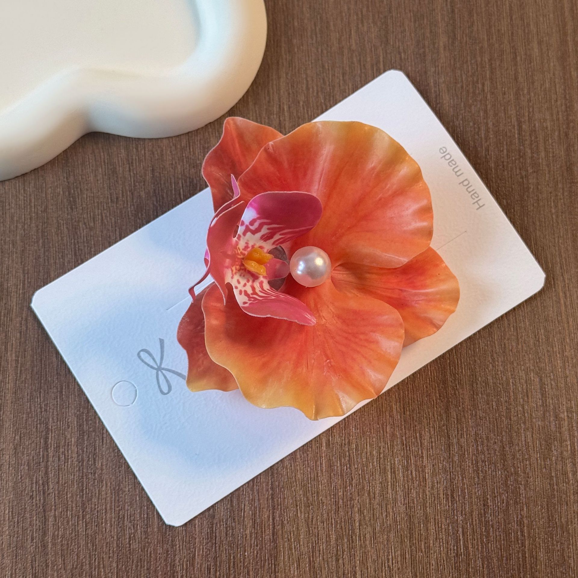새로운 스타일의 난초꽃 머리핀, 고급스러운 디자인의 집게핀, 분위기 있는 휴가 사진 촬영용 덕빌핀, 헤어 액세서리, 해외 직구 헤어 장식스토어 가기
